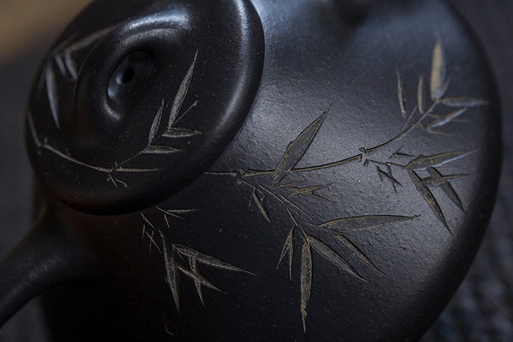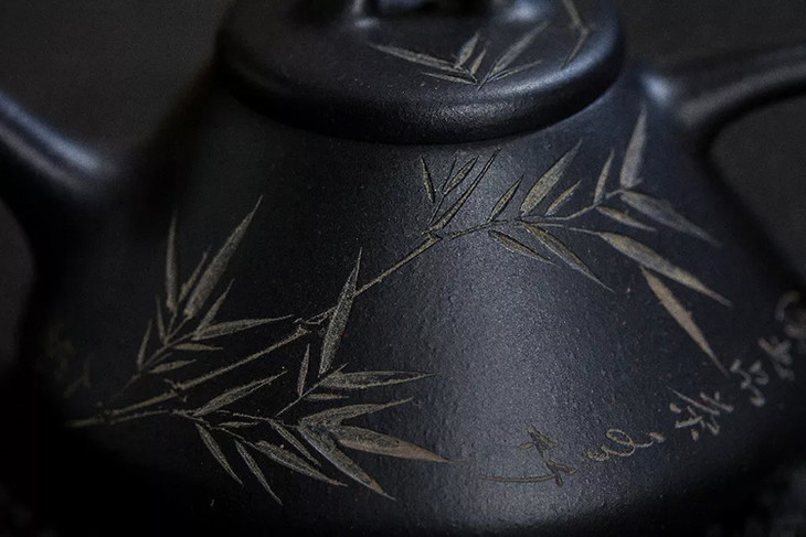 竹子满布过墙及壶盖,刀法凌而不乱,