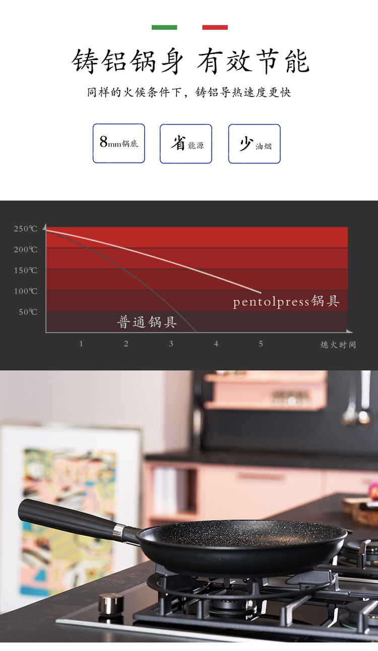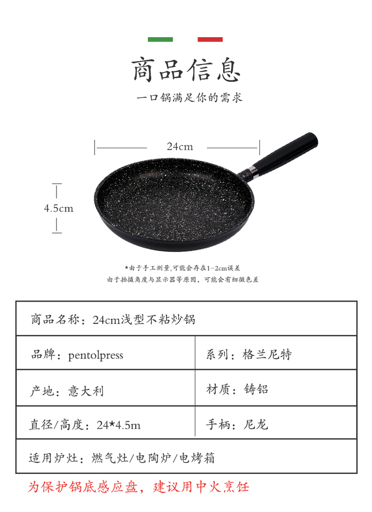 意大利原产PENTOLPRESS格兰尼特系列平底煎锅24cm(燃气款)