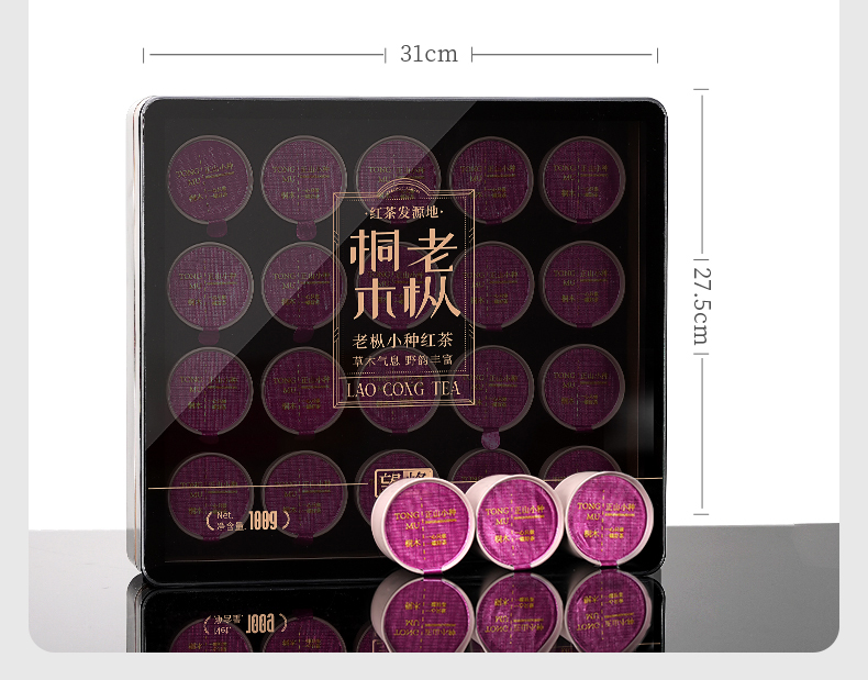 1盒包含25小罐,每罐4g老枞红茶,共100g。