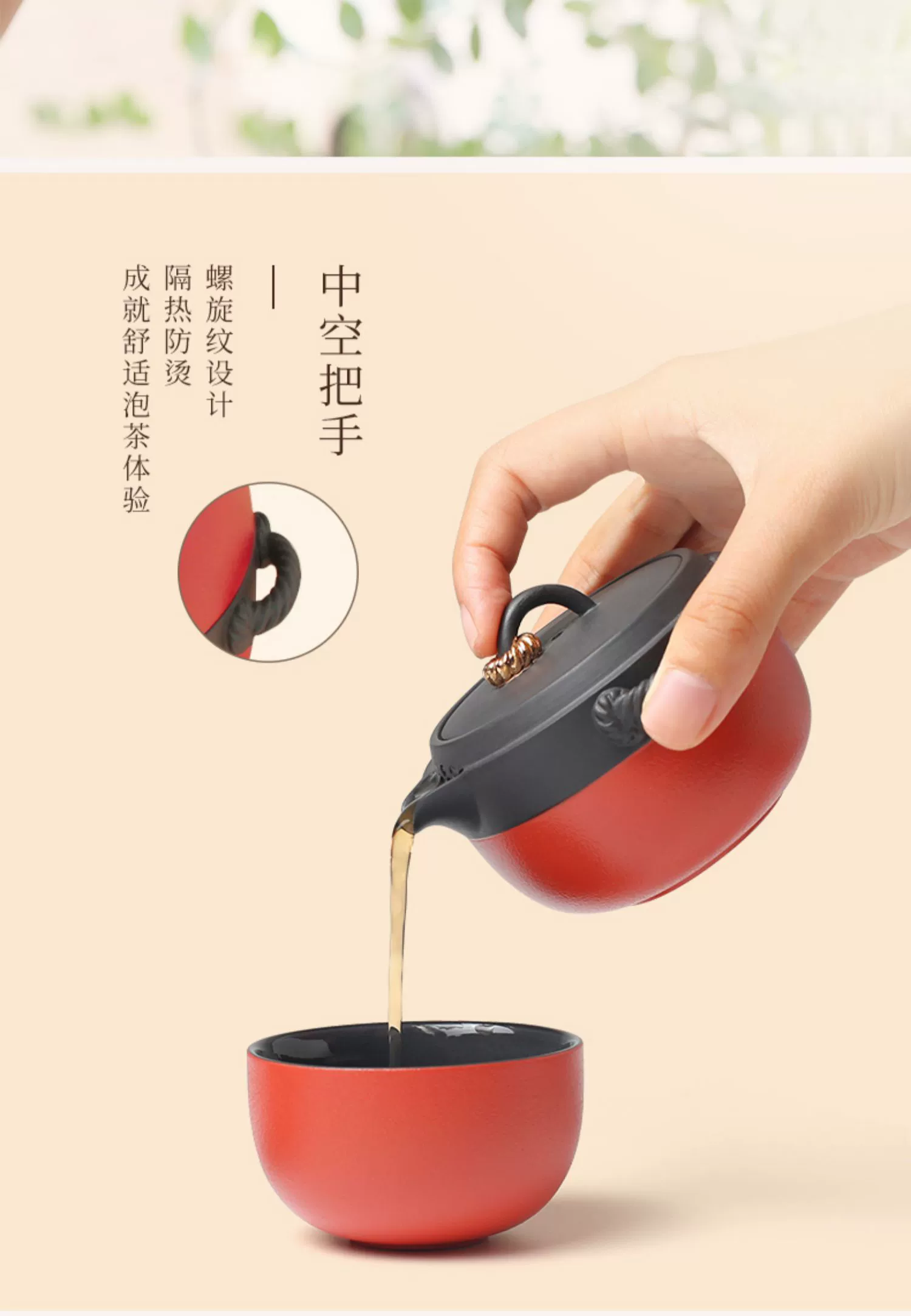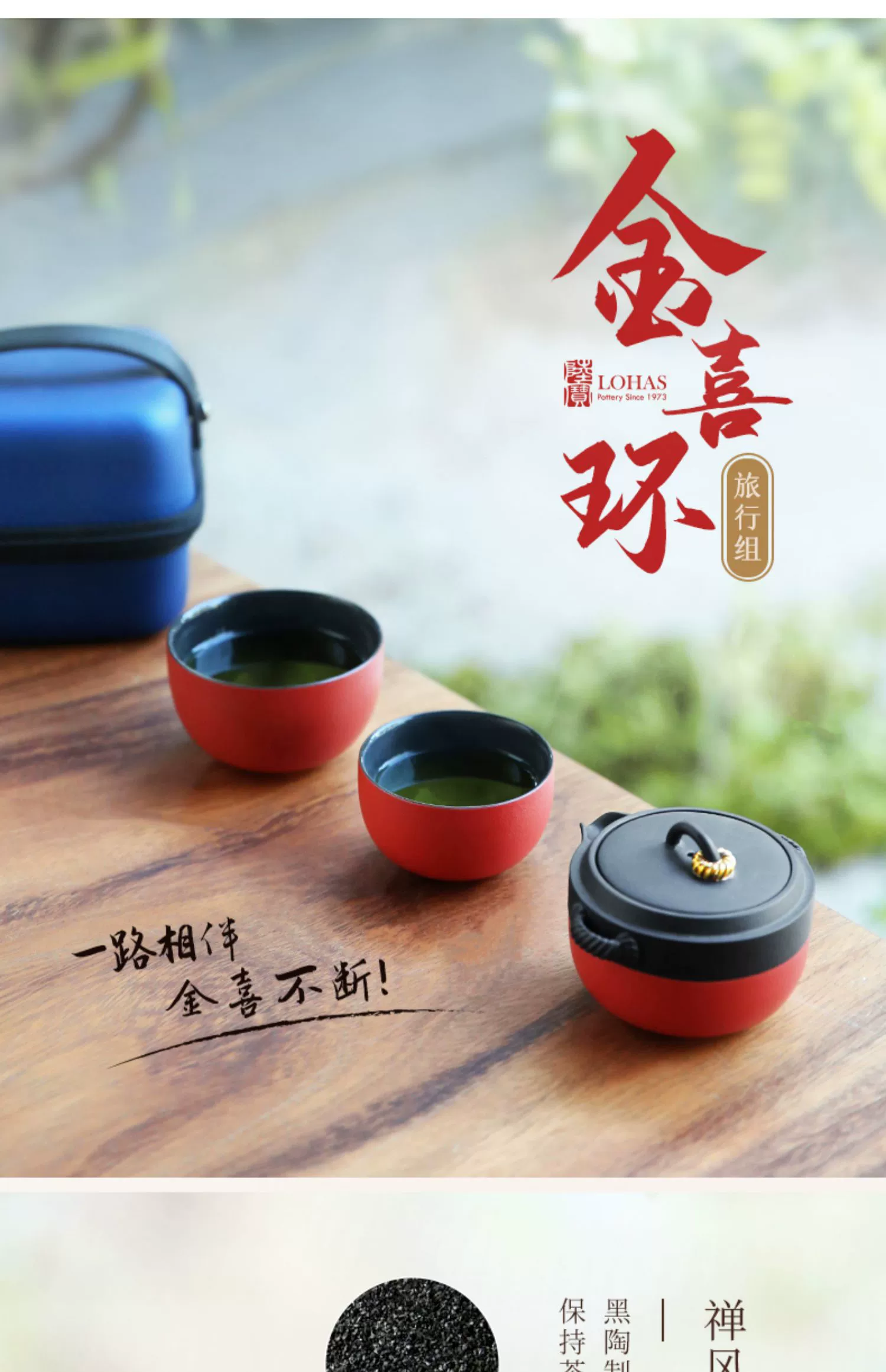 【彼达思】 陆宝陶瓷户外泡茶器具金喜环旅行套组一壶两杯