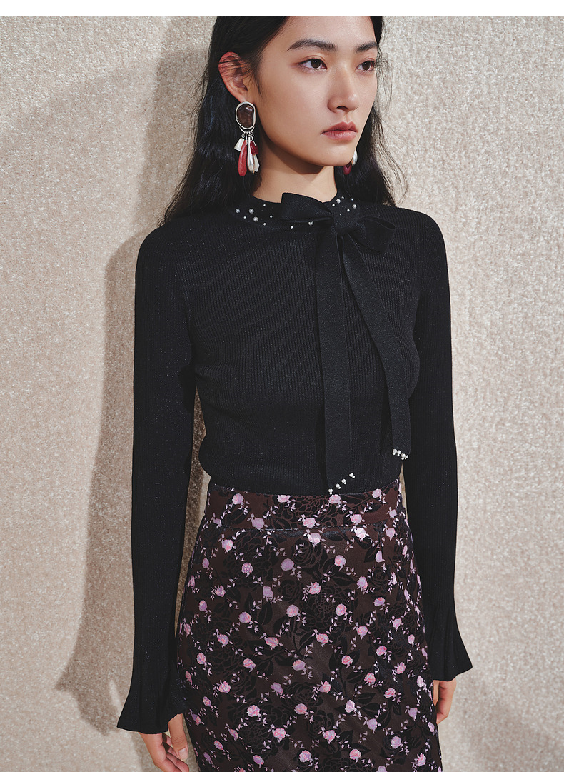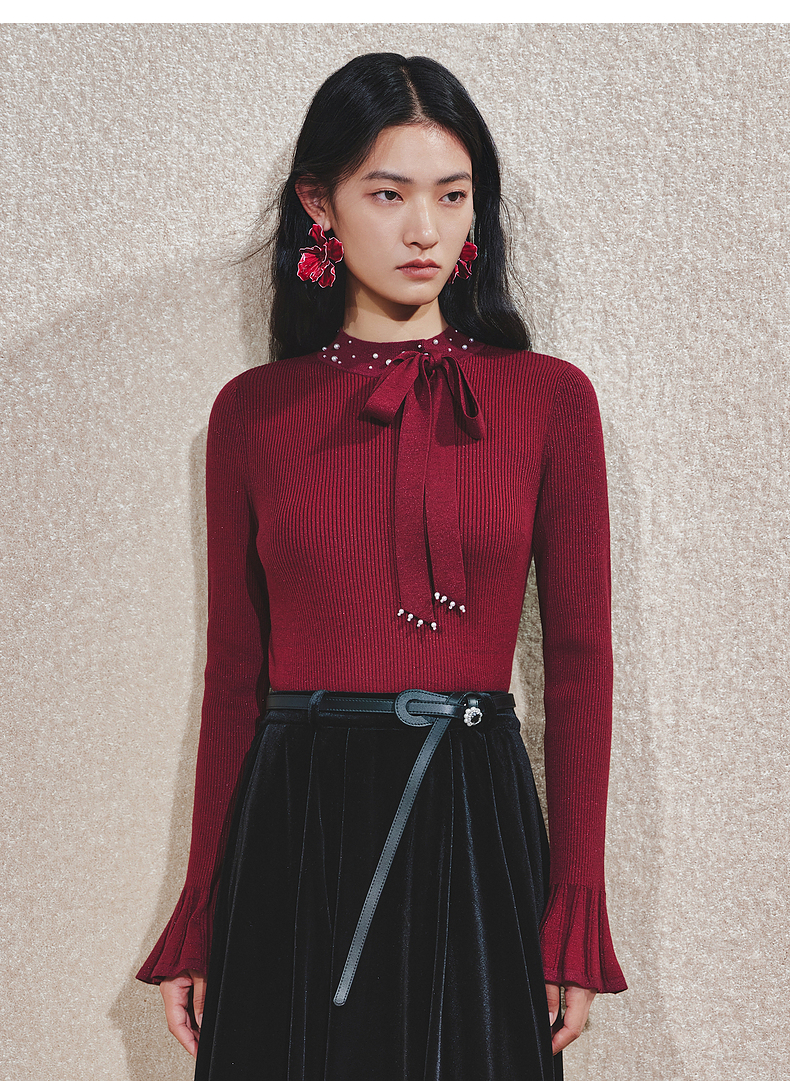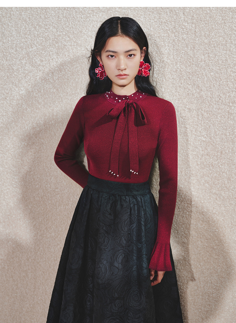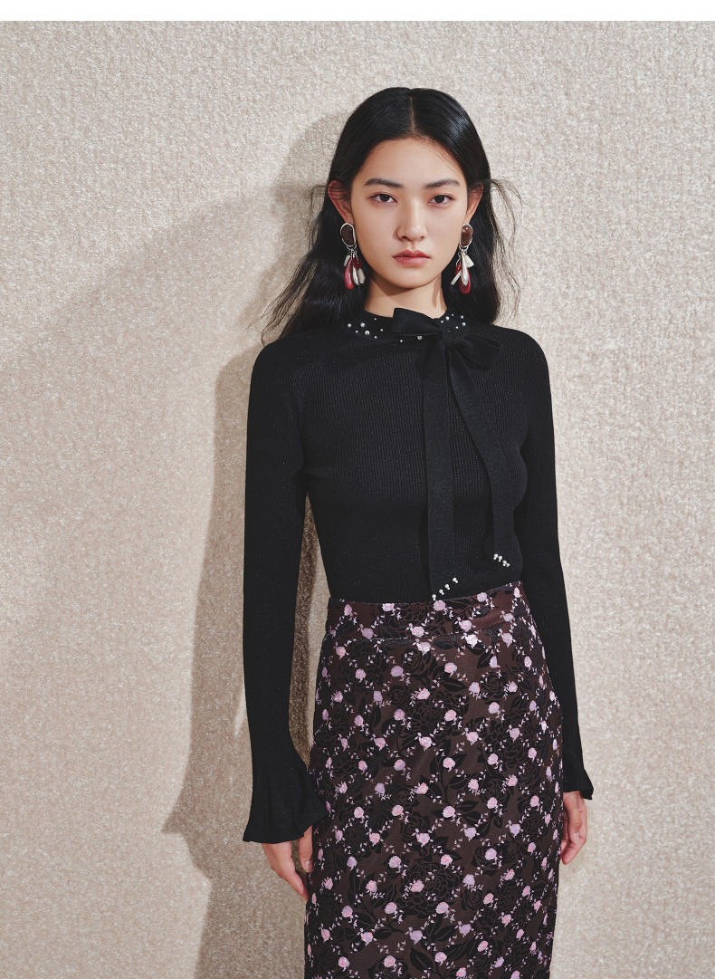 【商场同款】MAXRIENY蝴蝶结套头针织毛衫25秋修身显瘦上衣女(货号:MS85SW770)