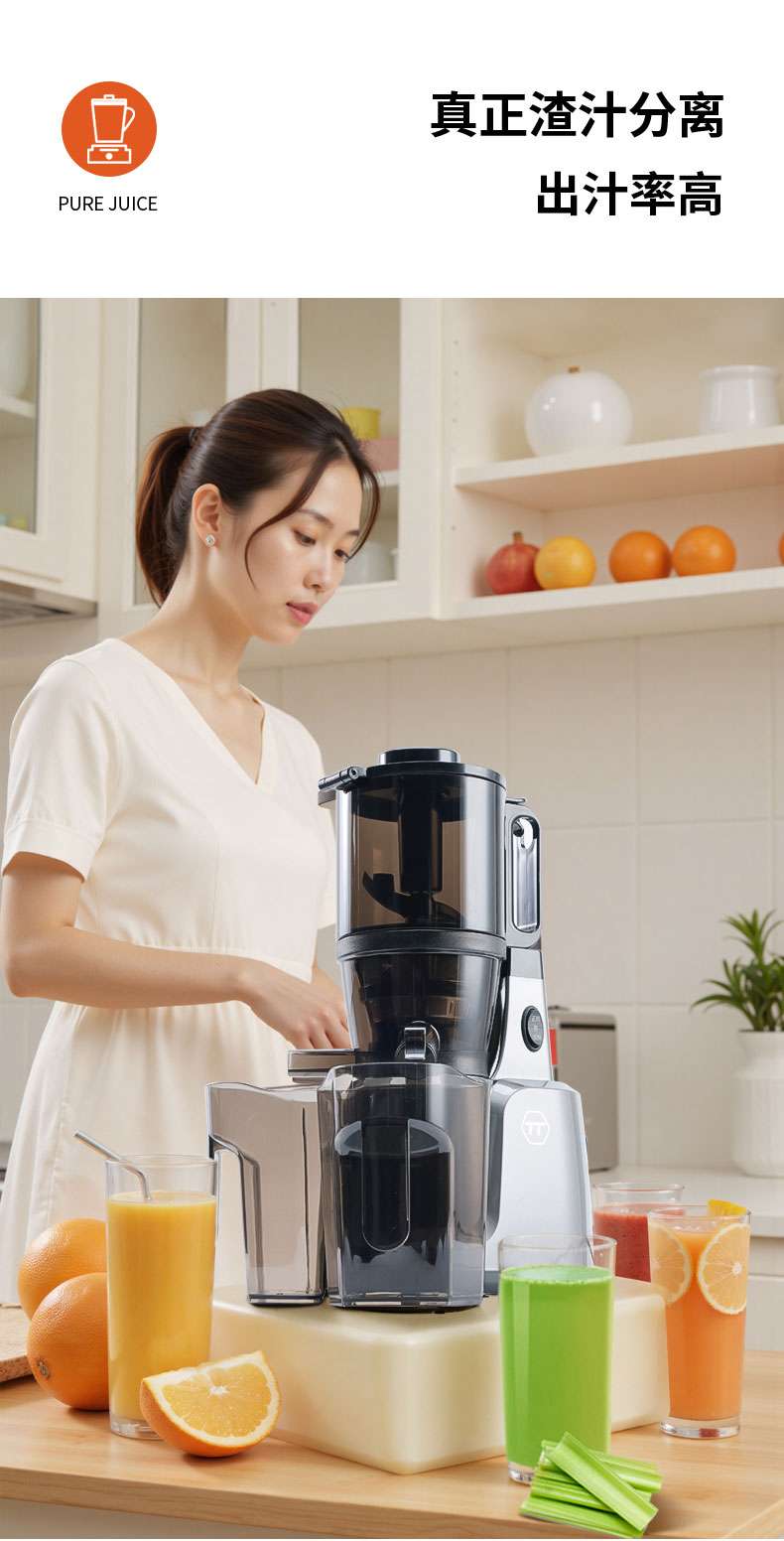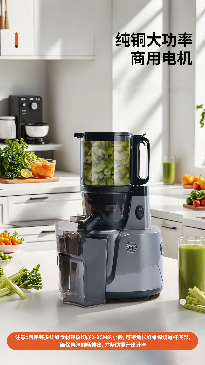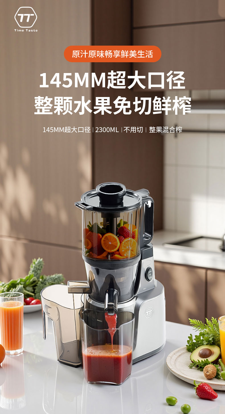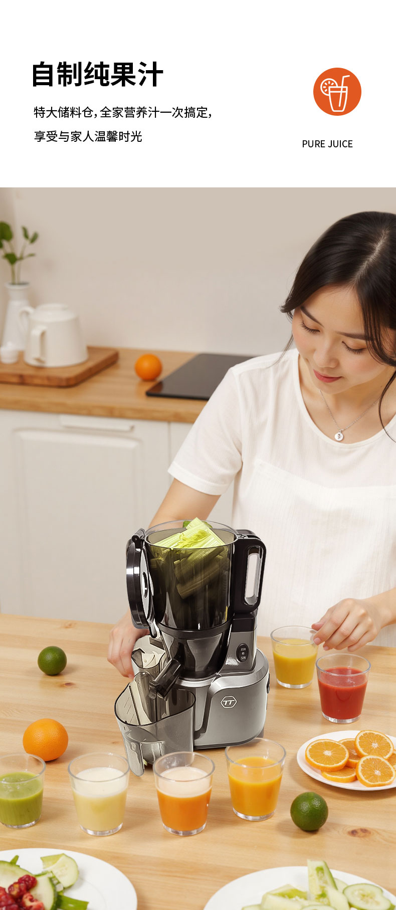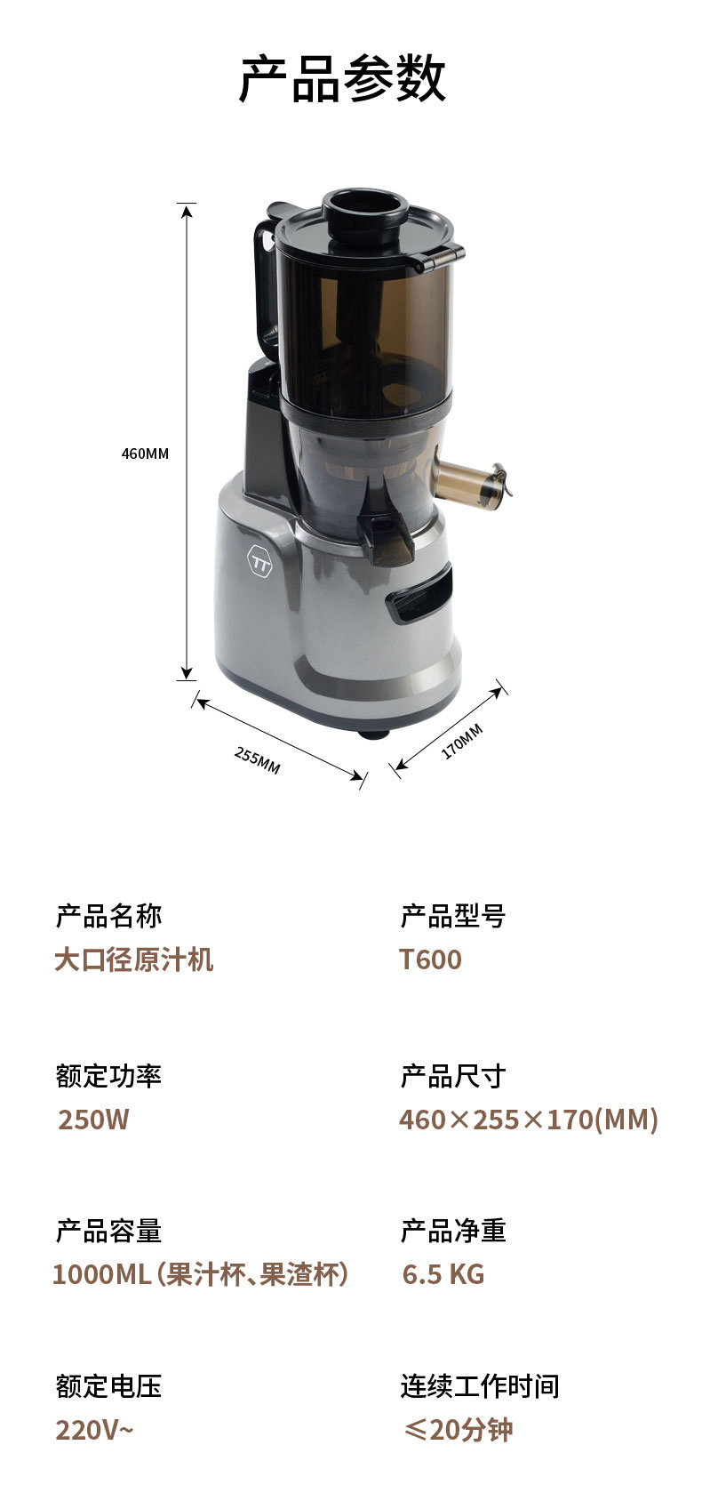 TT大口径原汁机 T600 | 整颗水果免切鲜榨 2300ml大储料仓 附柠檬专用榨汁杯 渣汁分离 低分贝静音榨汁机 家用&商用 头条电器