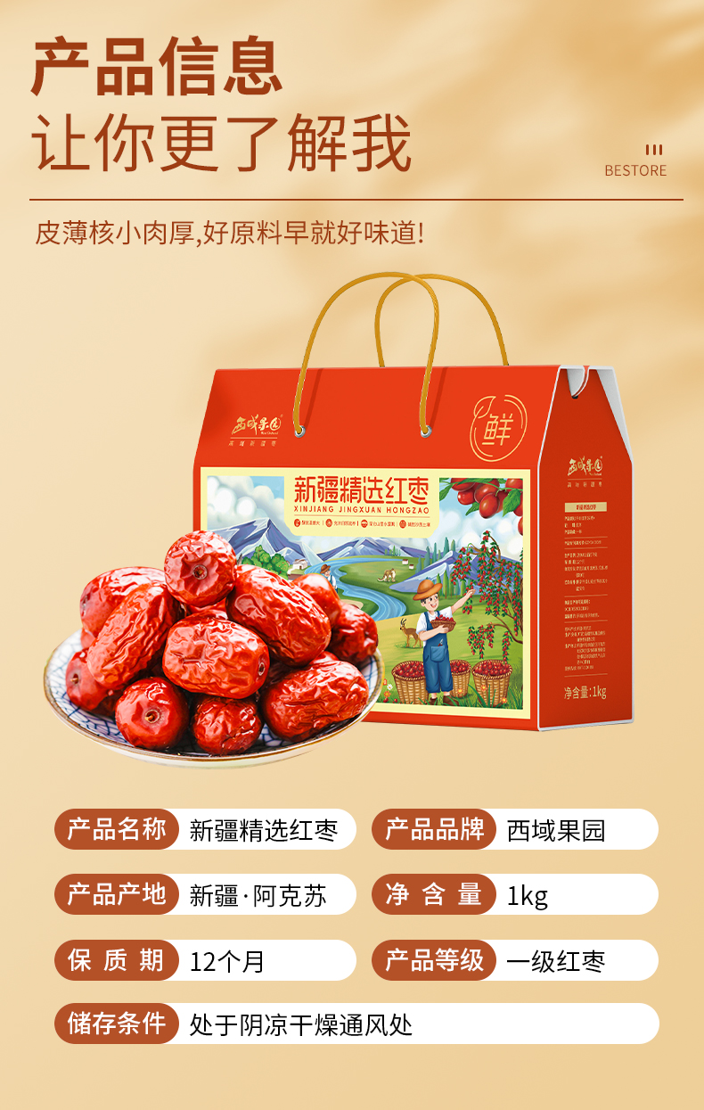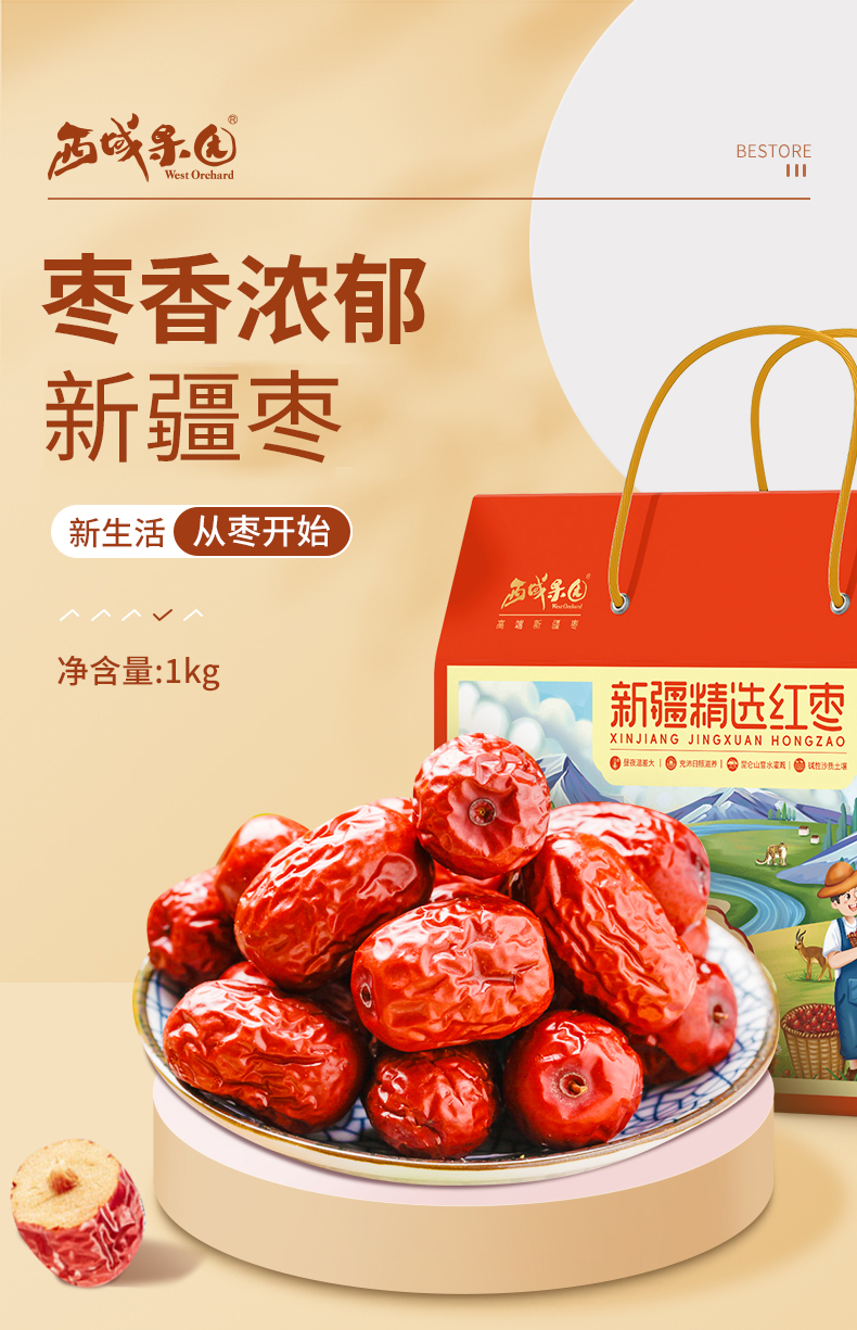 西域果园·精选红枣礼盒1kg 皮薄核小肉厚 独立小包装 每天一袋刚刚好