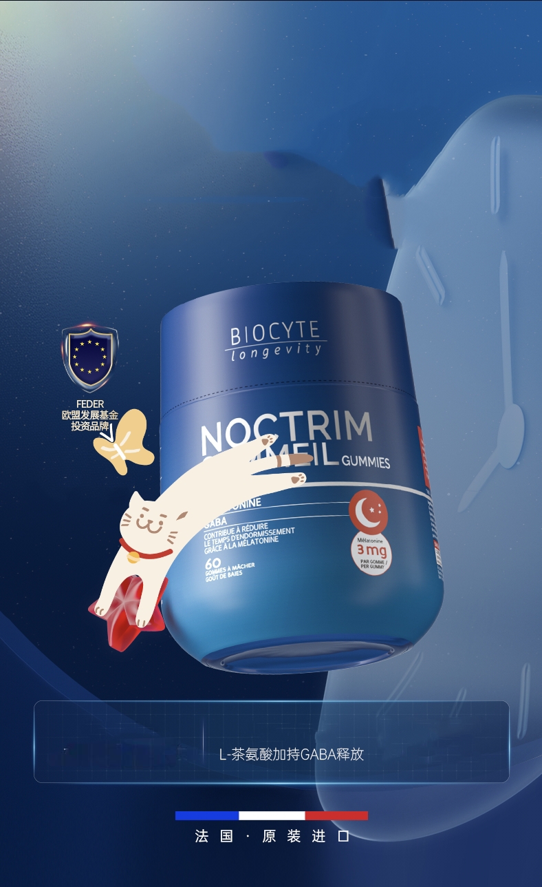 【跨境】法国 Biocyte碧维斯 3mg 蓝罐植萃软糖 60粒/盒 营养膳食补充剂(跨境零售产品,仅作个人自用,不适用于中国大陆食品安全标准)