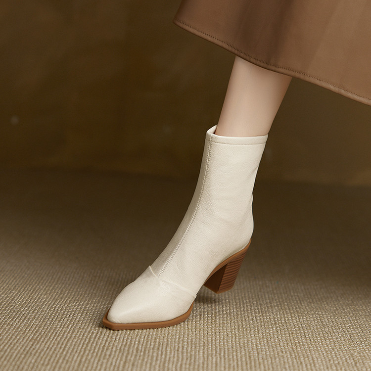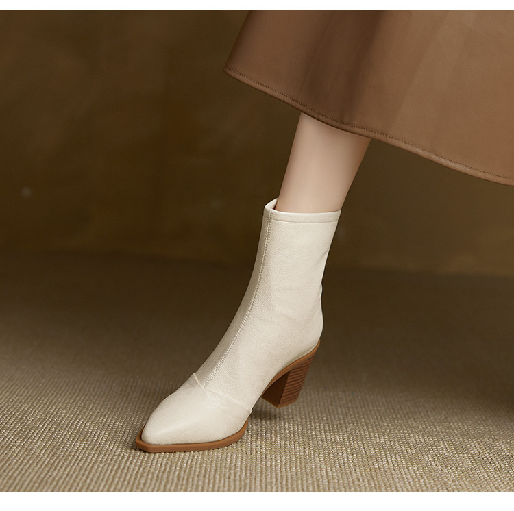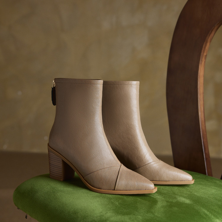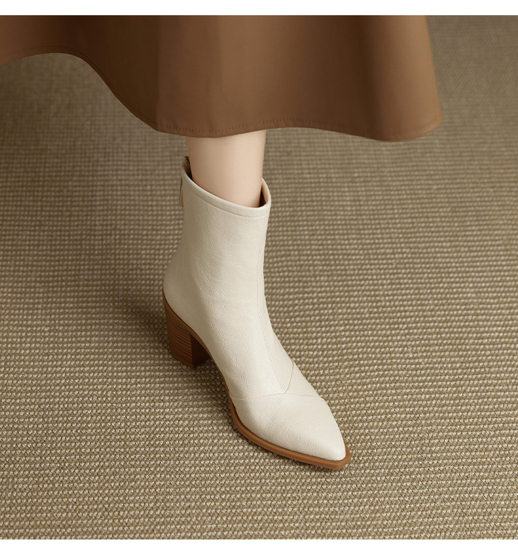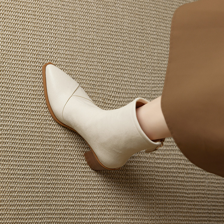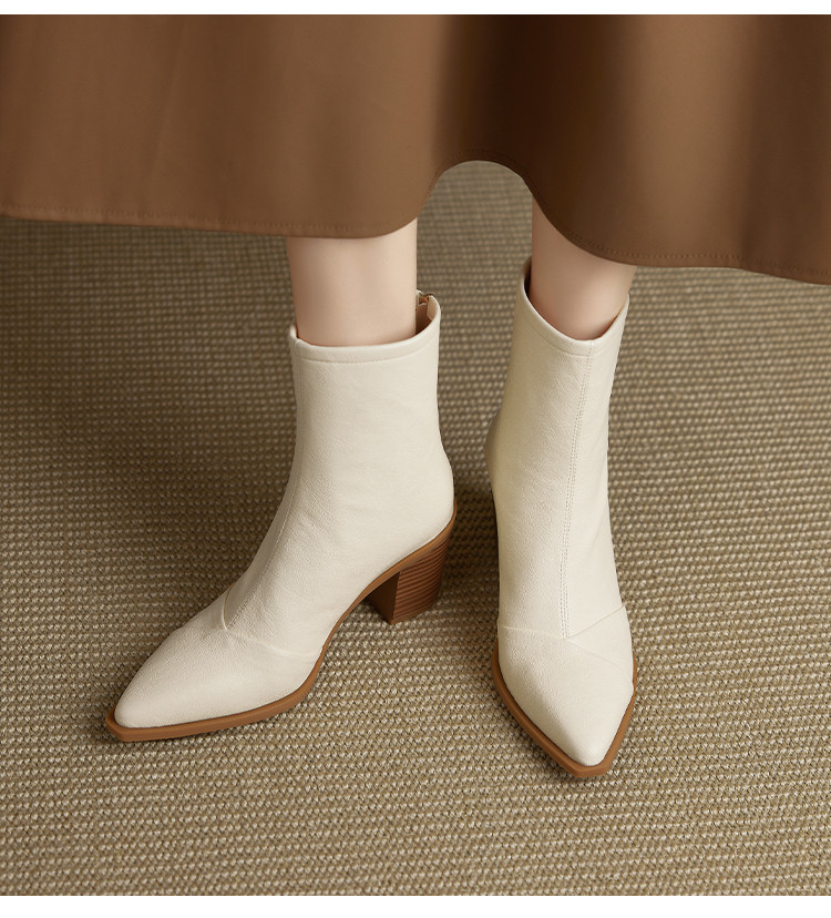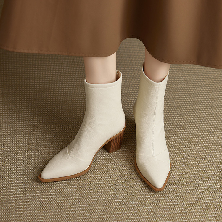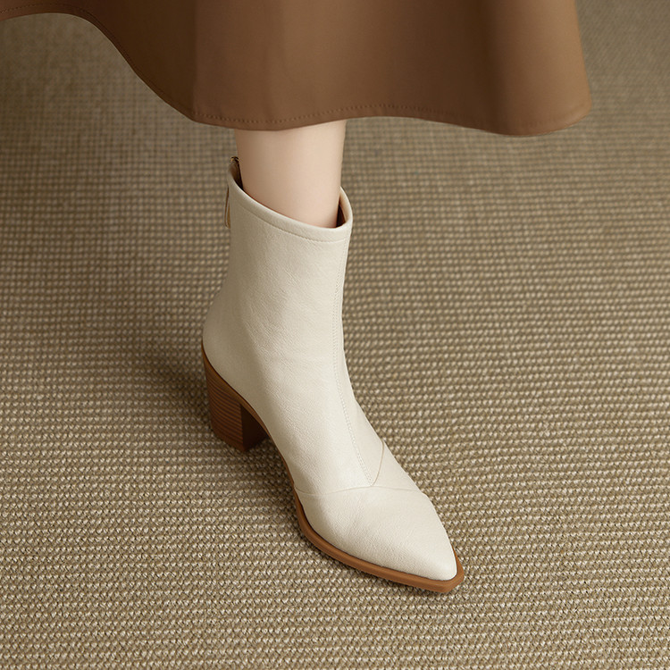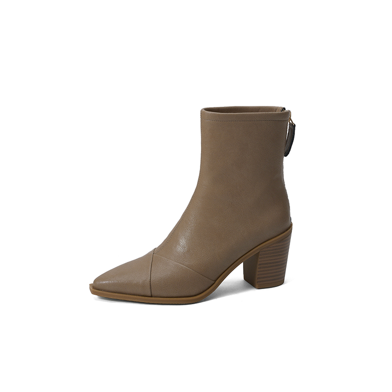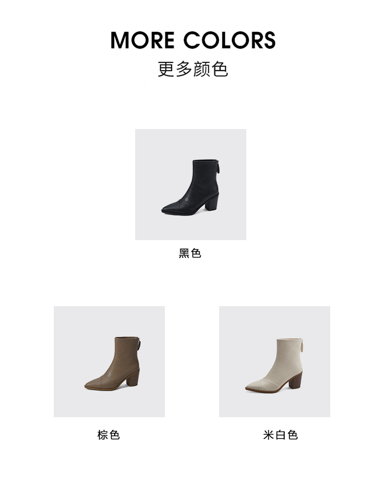 【预售5天】复古气质尖头粗跟短靴女后拉链高跟切尔西靴显瘦真皮裸靴YS&A1906