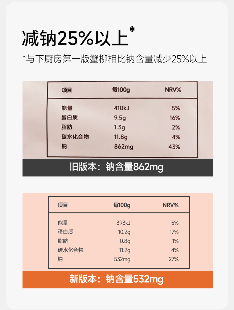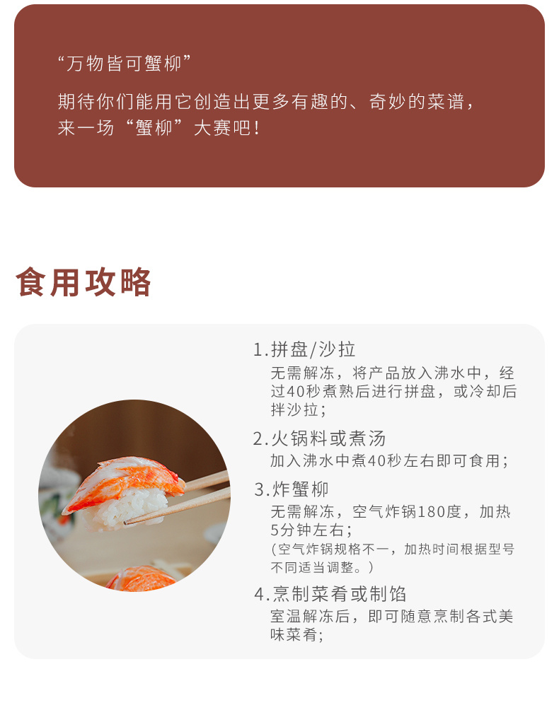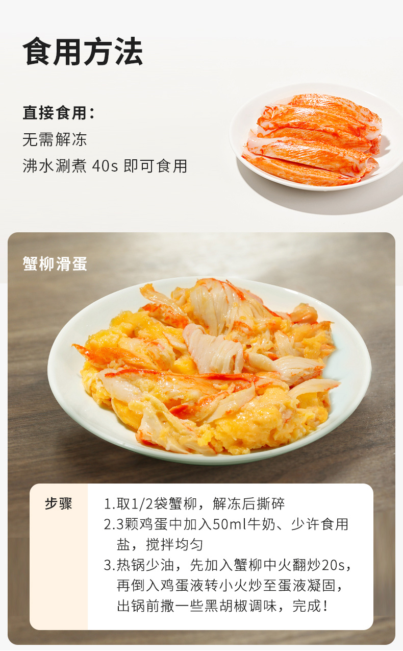 【斌哥优选】松叶蟹柳。鳕鱼含量75%,开袋就是大海的鲜香,入口Q弹。冷冻保存哦