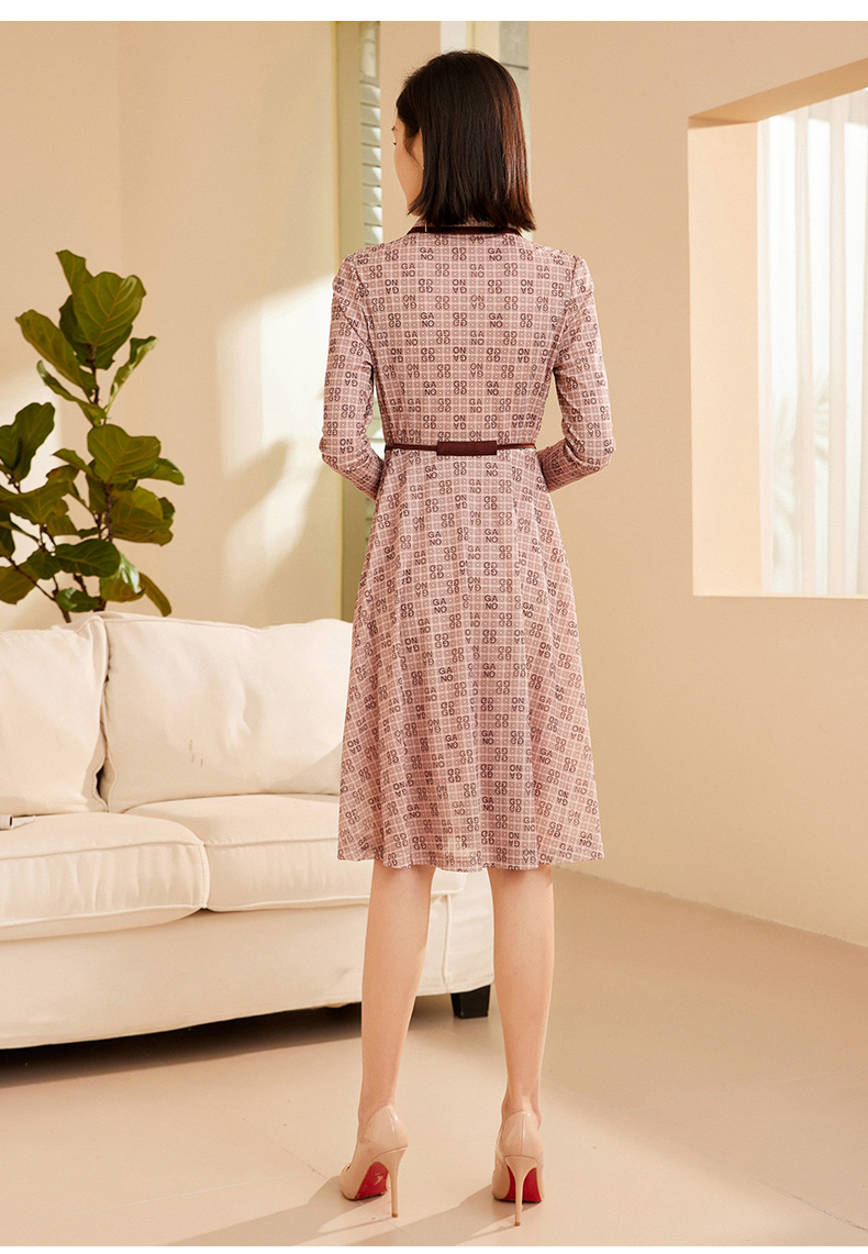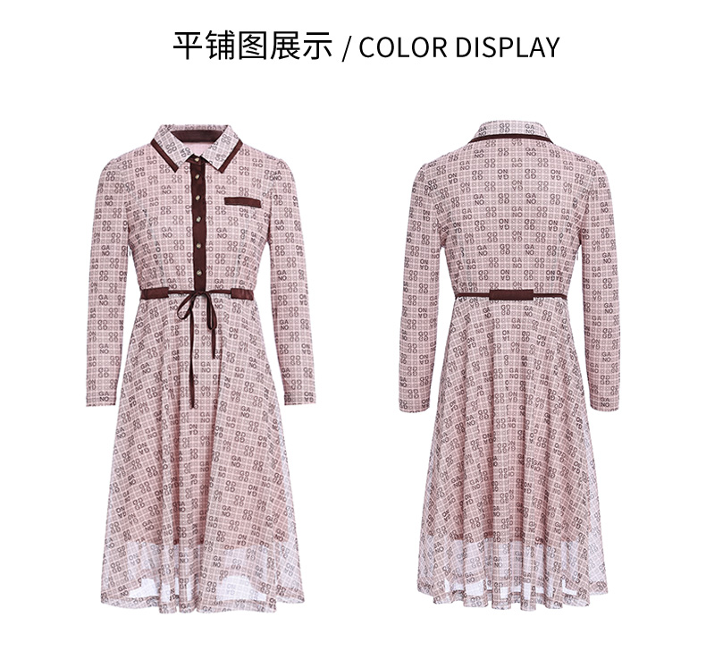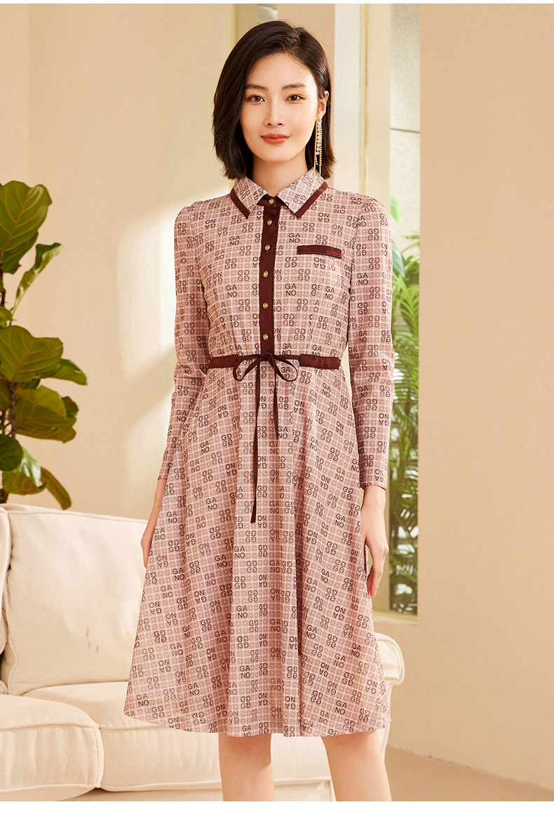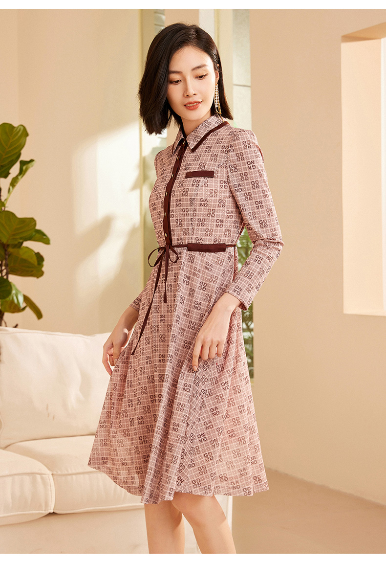 乔万尼秋季新品连衣裙长袖印花收腰显瘦ET3E732