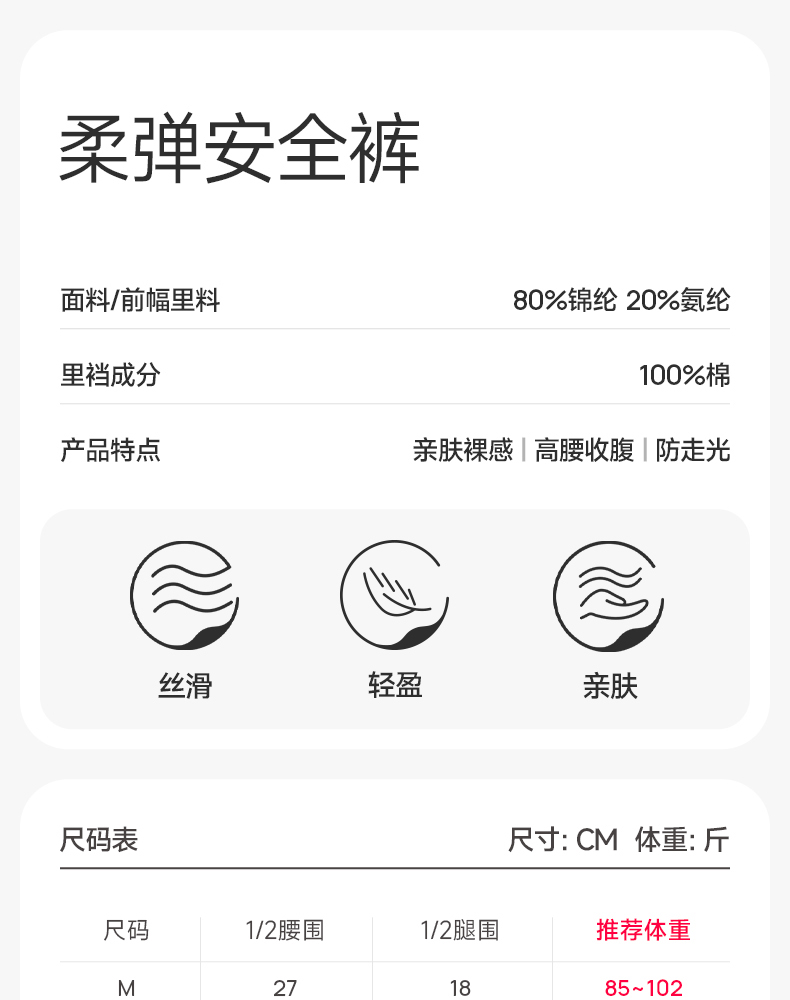 芬腾女士安全裤防走光抗菌棉质裆保险内裤高腰提臀透气舒适打底裤