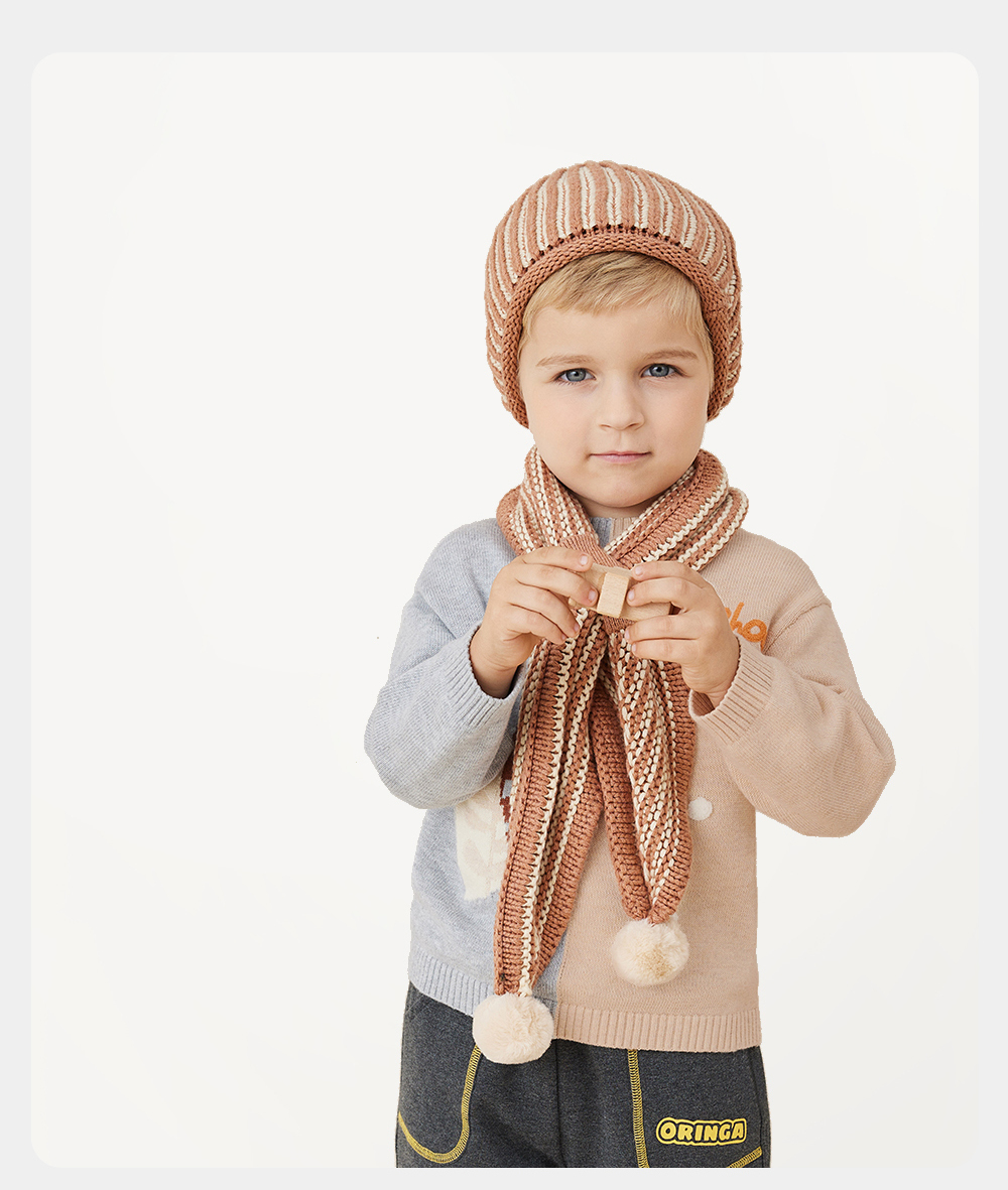 英氏儿童帽子可爱宝宝板栗帽子围巾秋冬保暖防寒羊毛圆帽新款