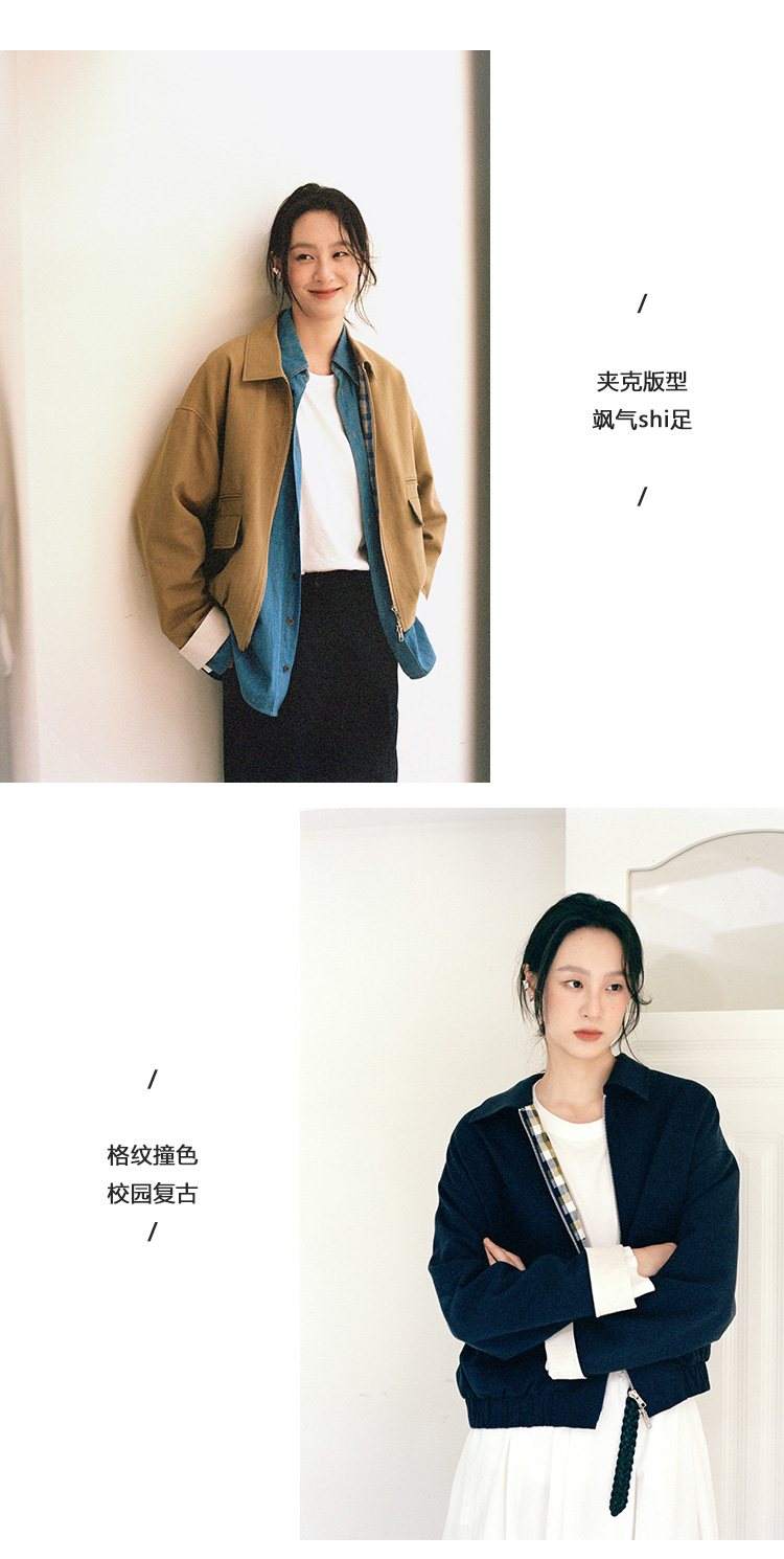 Even Vintage | 校园复古风 原创设计经典百搭撞色格纹夹克外套女