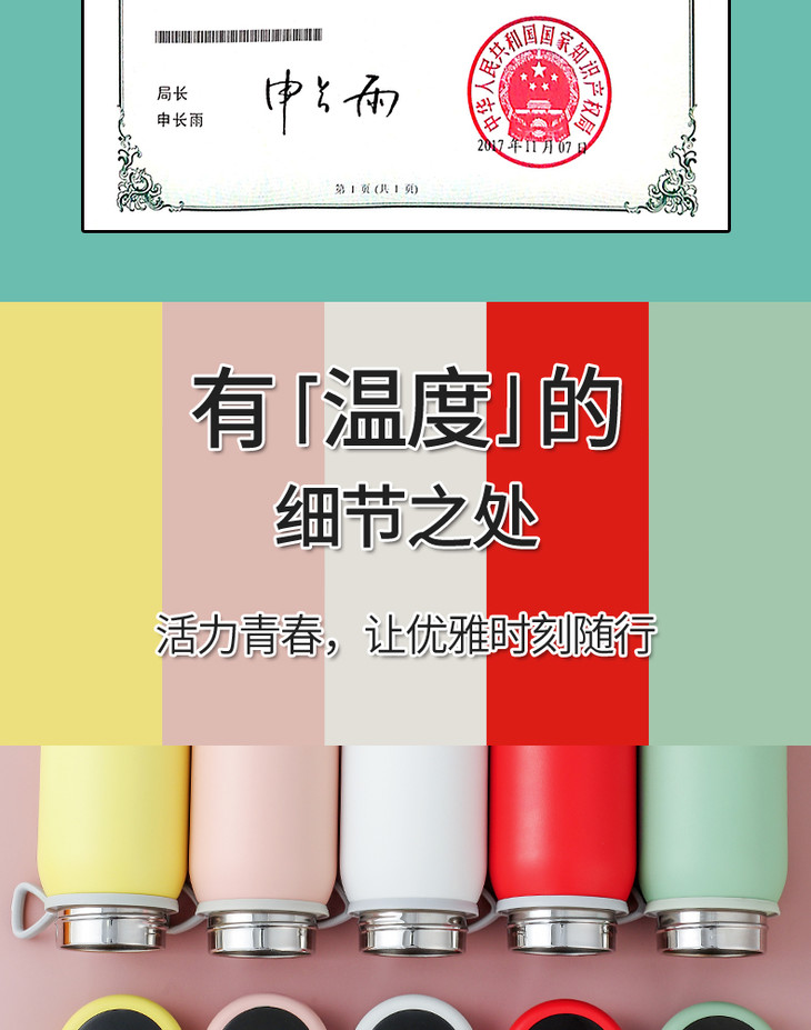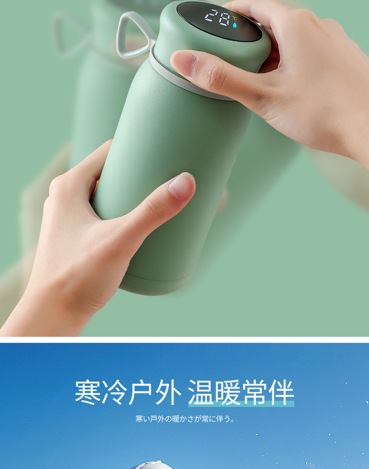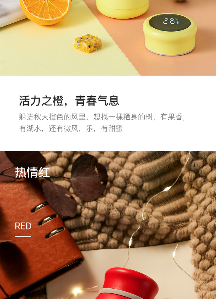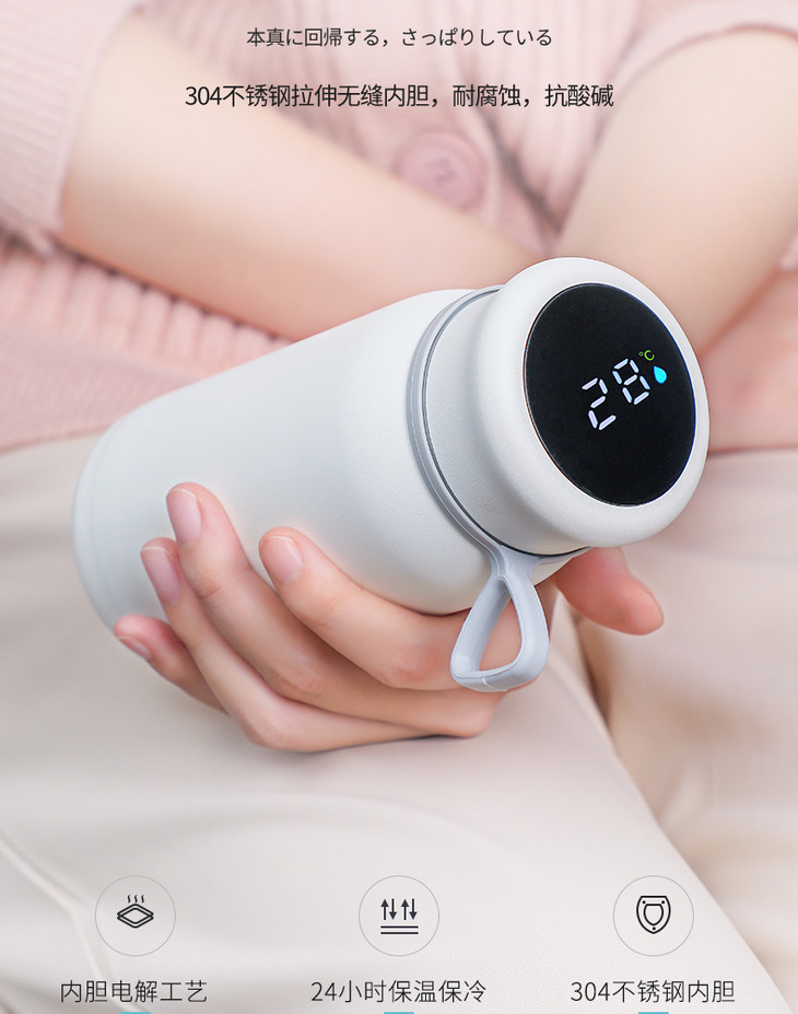 有「温度的」智能恒温保温暖手杯304不锈钢纯净无缝内胆,抗腐蚀,耐酸碱,双层保温结构24小时锁温保冷,轻松出行就现在