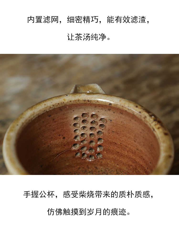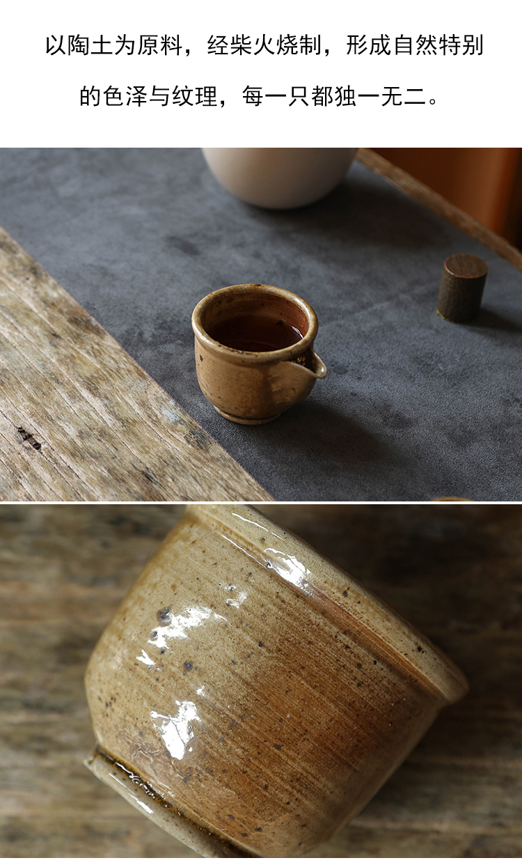 茶香记 景德镇木田手作柴烧-圆口公杯110ml陶瓷公道杯老味古拙茶道零配