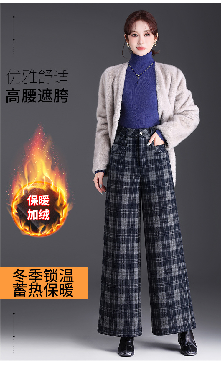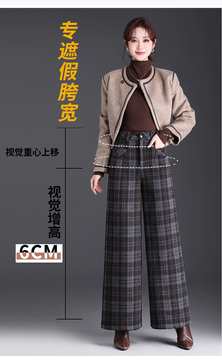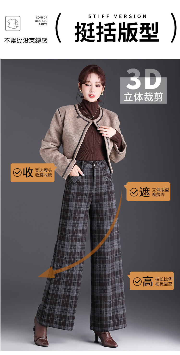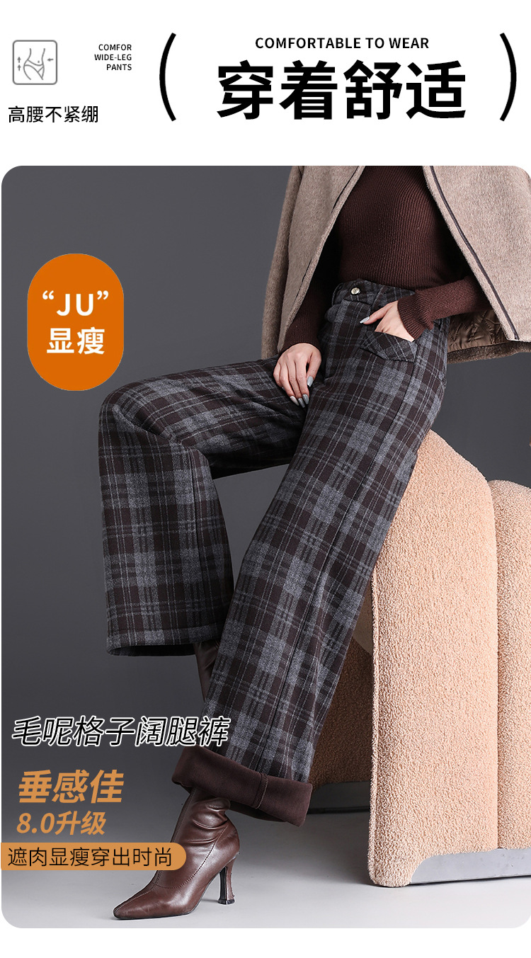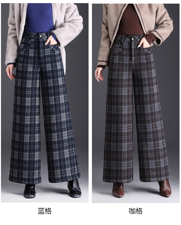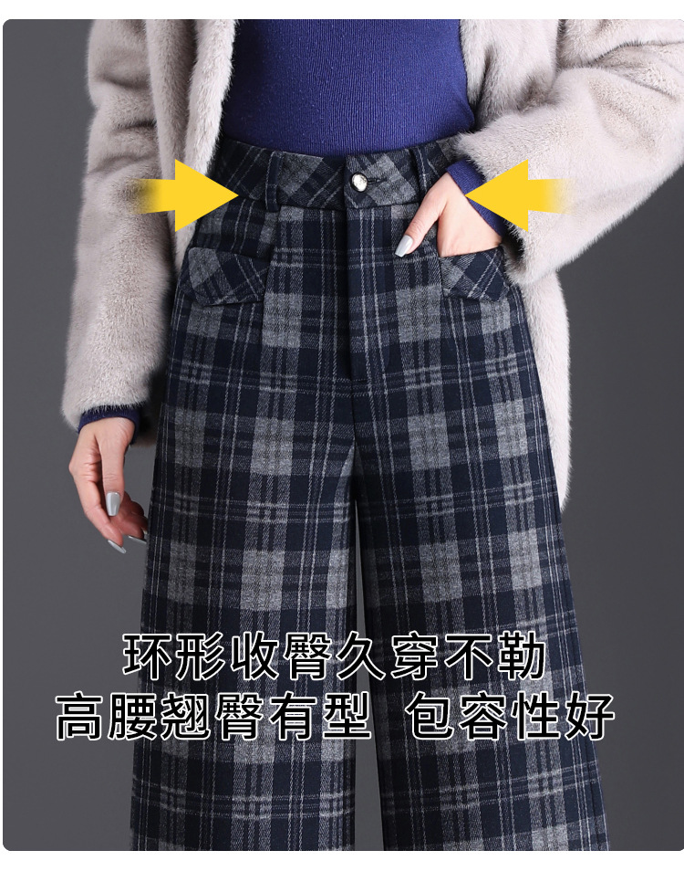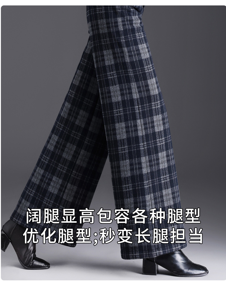QYM 3585-Y加绒加厚毛呢阔腿裤时尚格纹直筒裤宽松休闲保暖裤