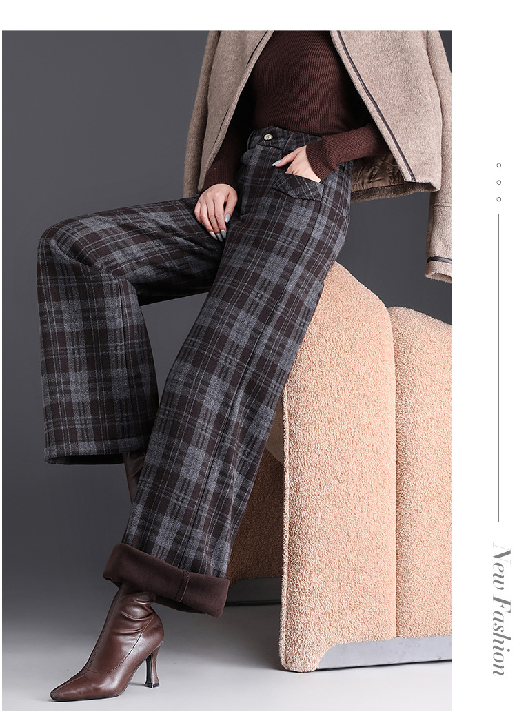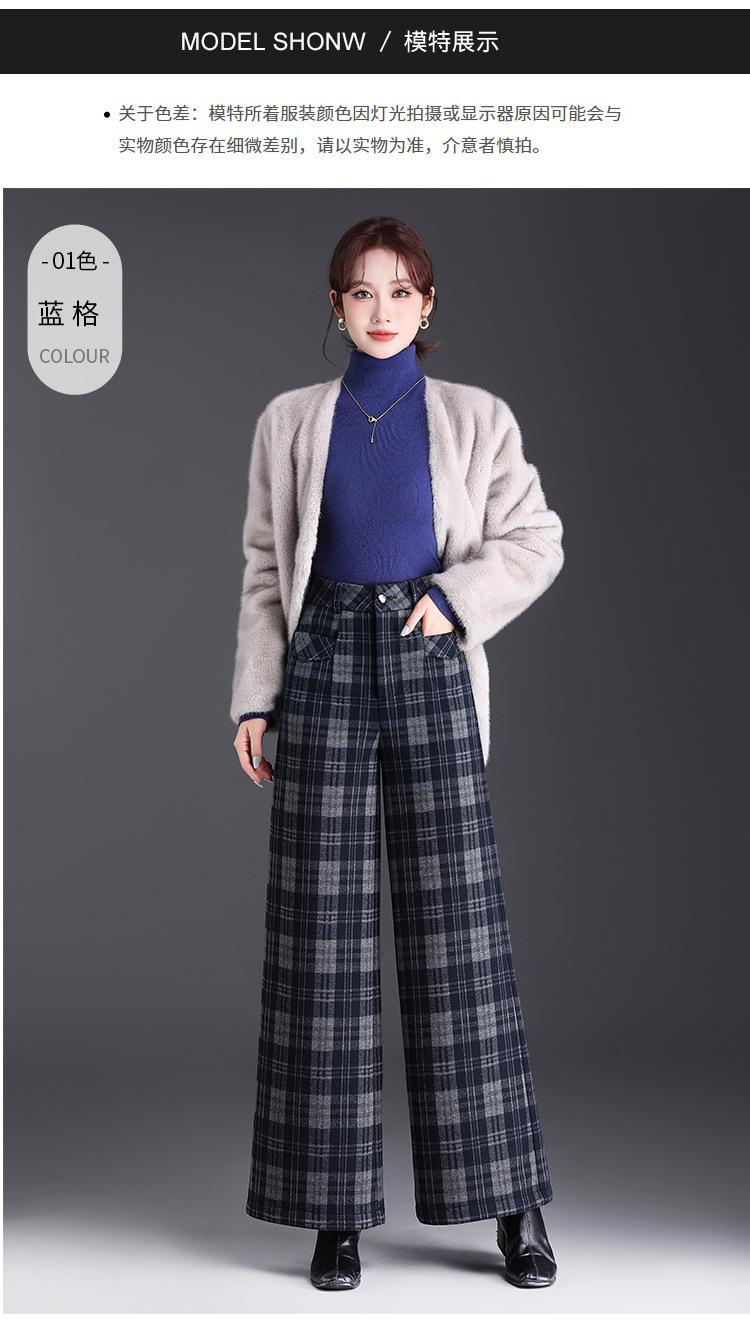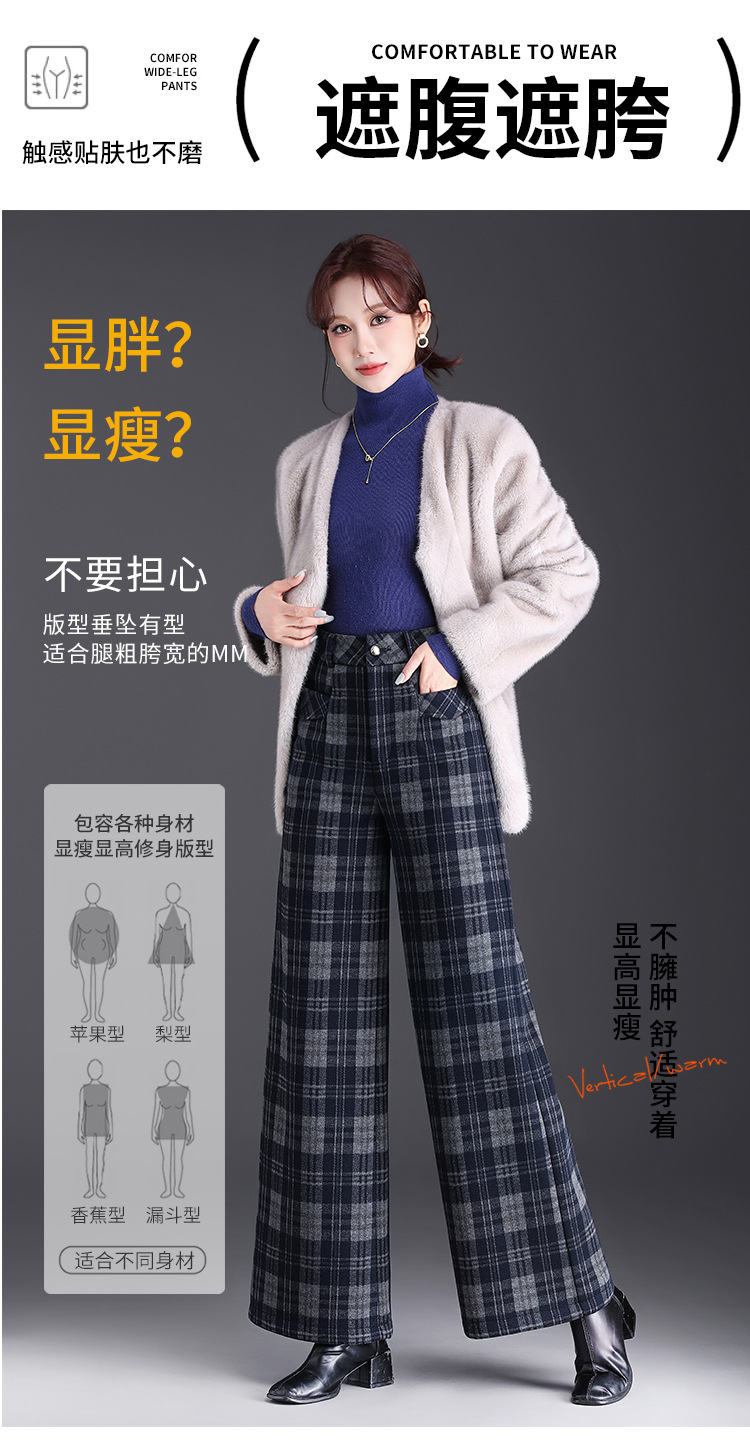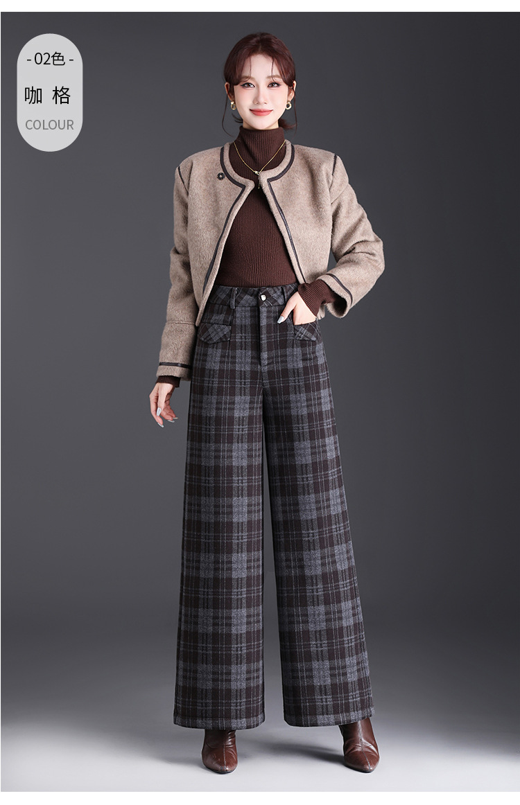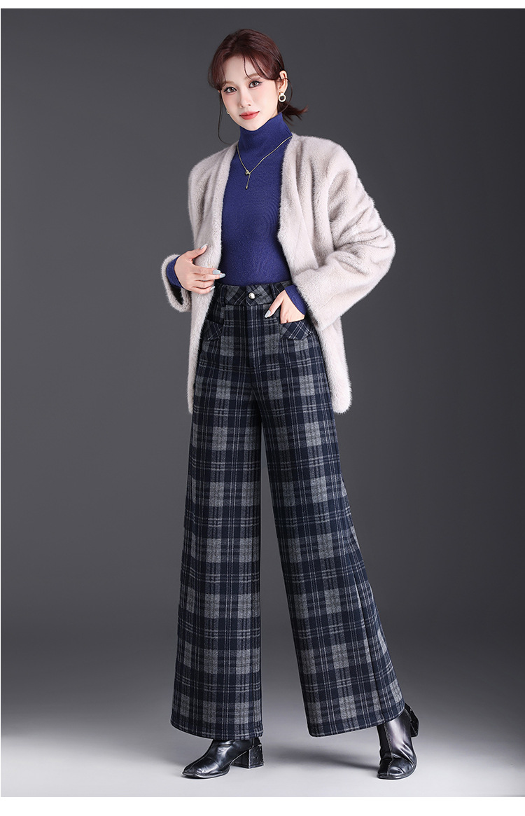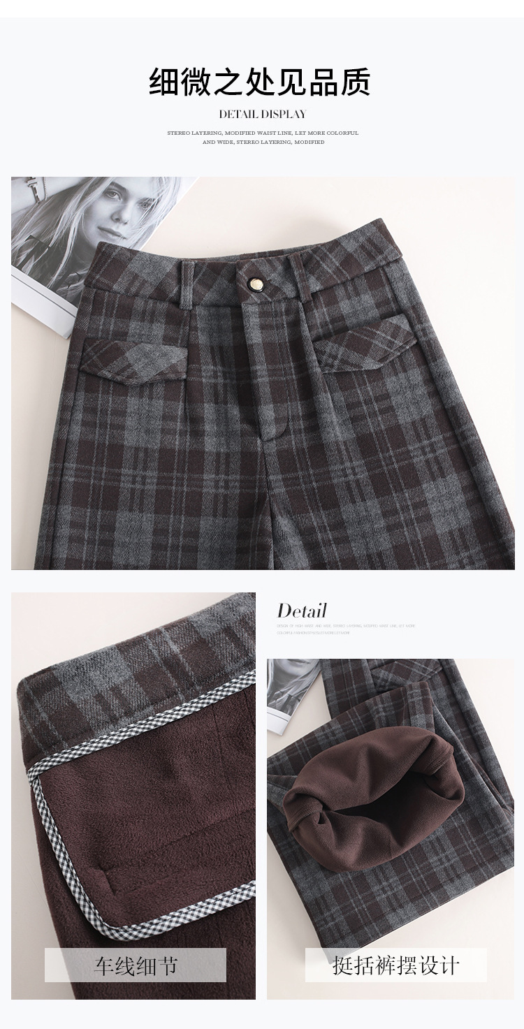 QYM 3585-Y加绒加厚毛呢阔腿裤时尚格纹直筒裤宽松休闲保暖裤