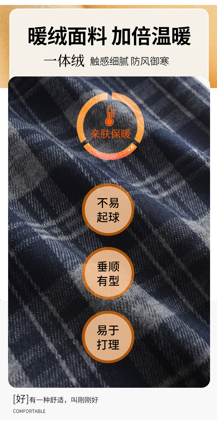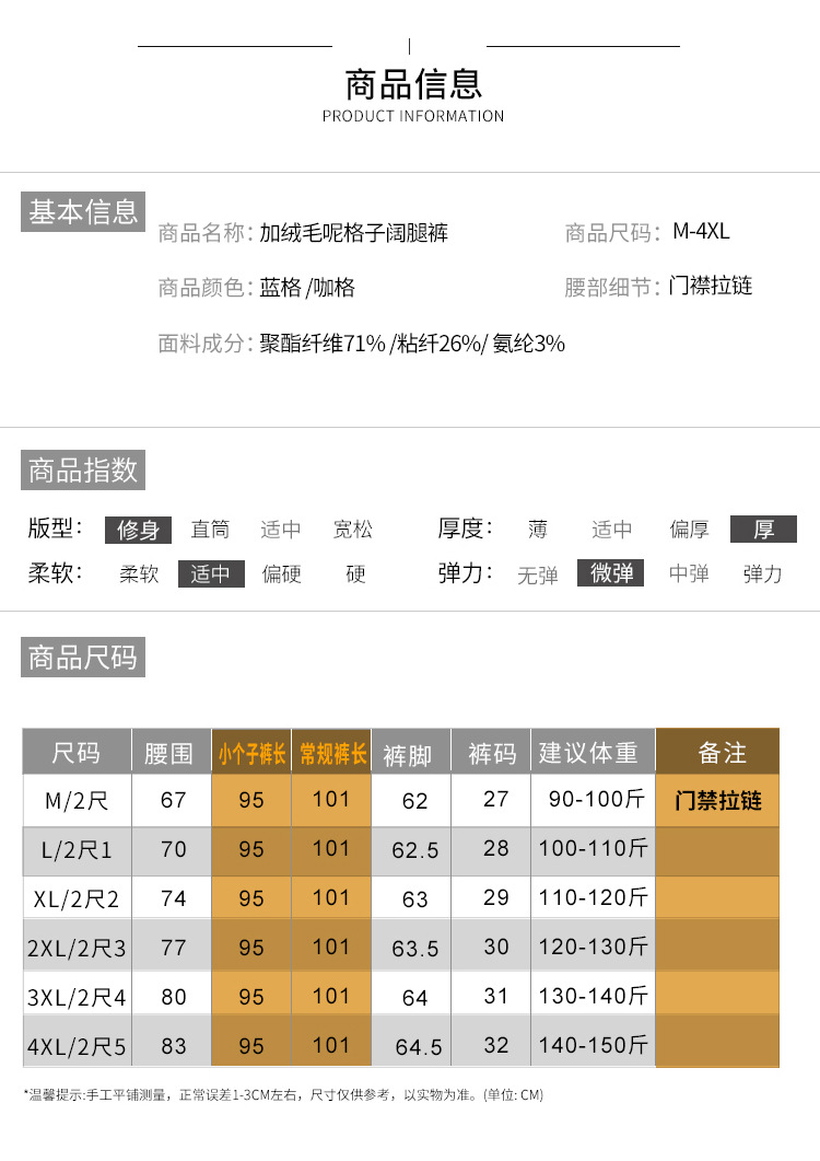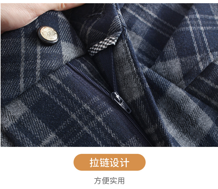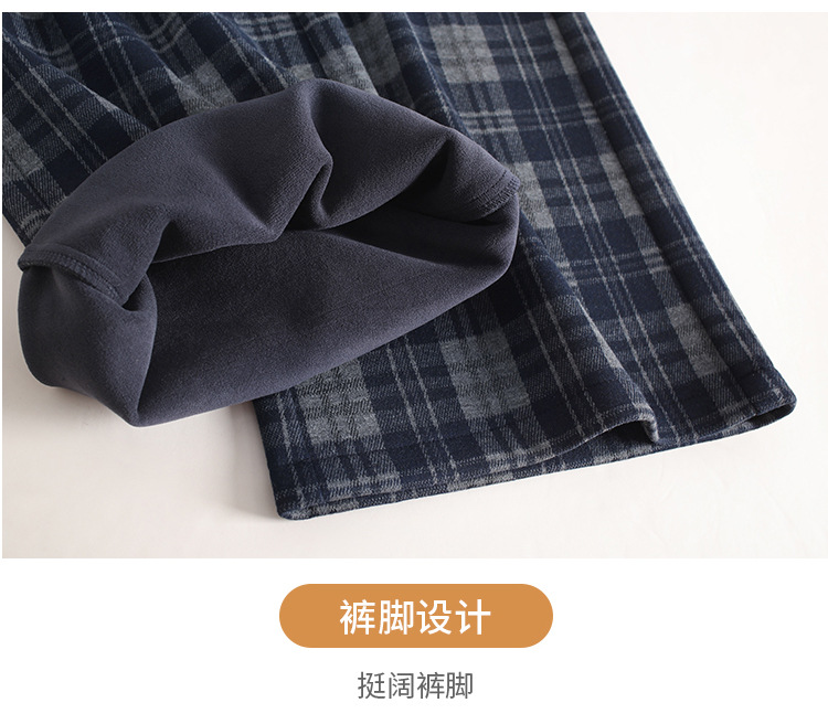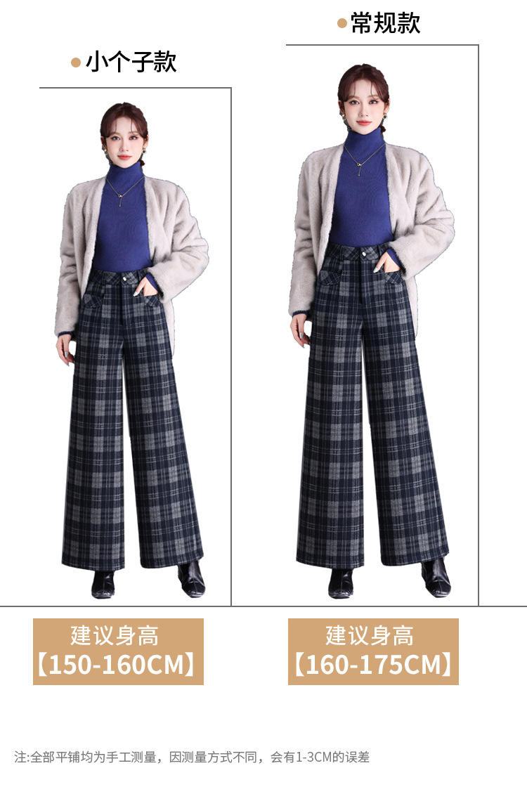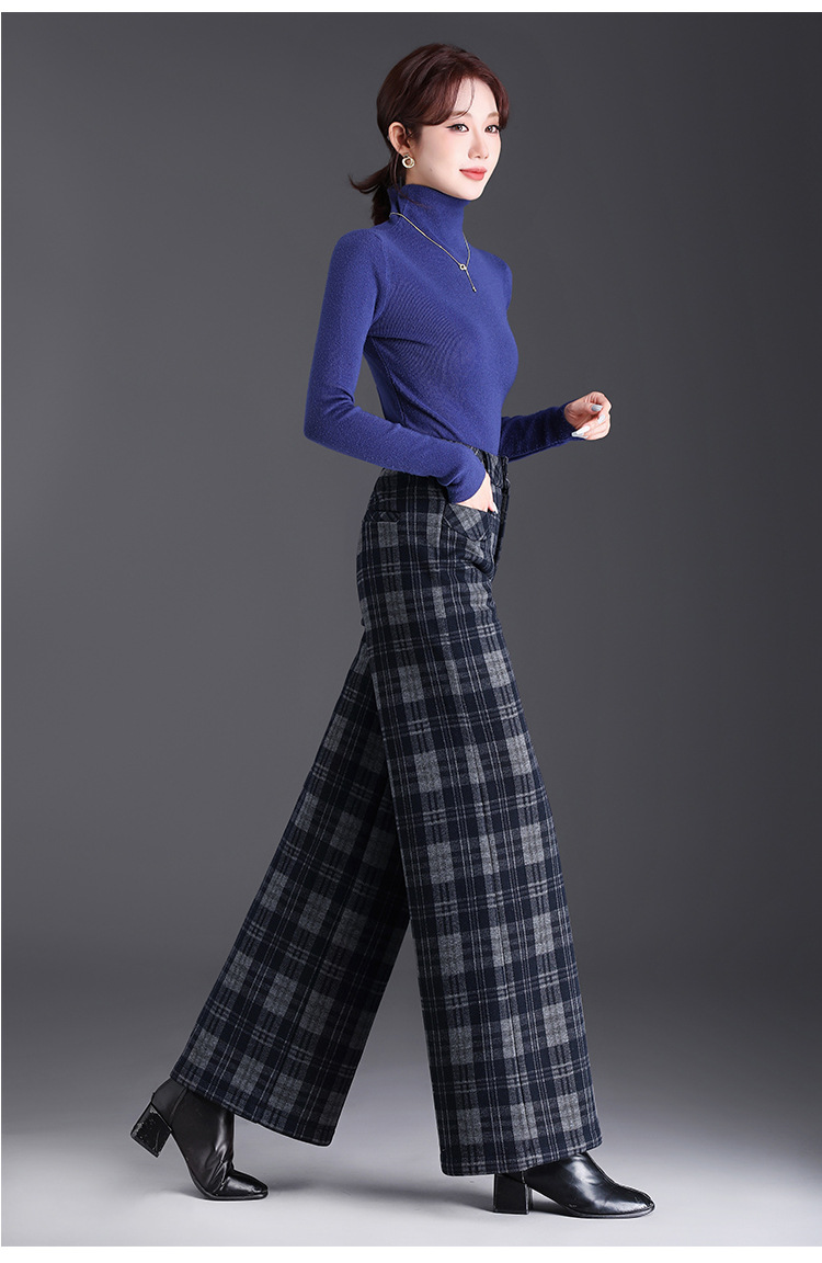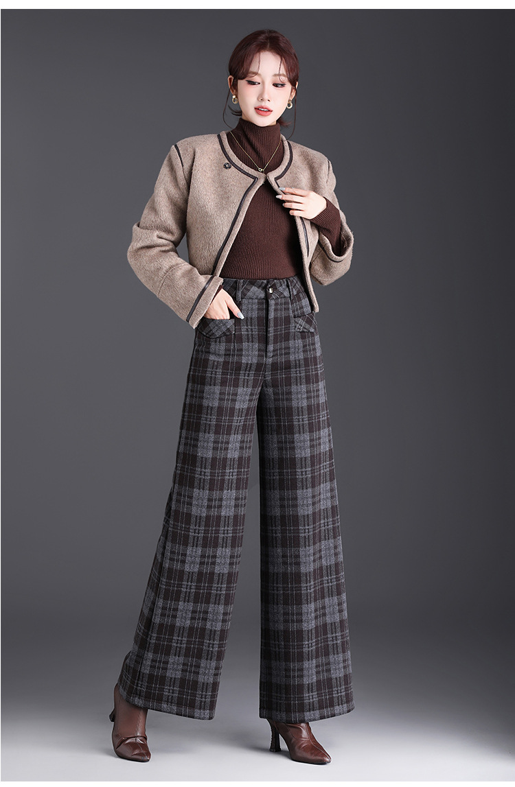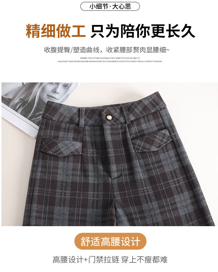 QYM 3585-Y加绒加厚毛呢阔腿裤时尚格纹直筒裤宽松休闲保暖裤