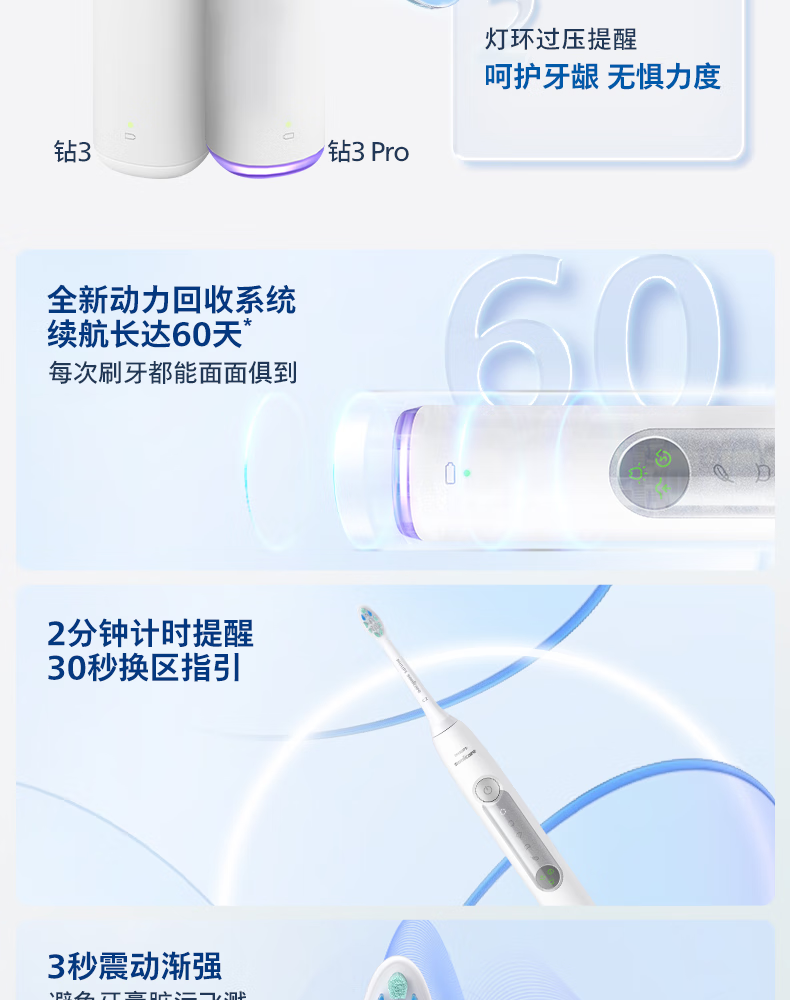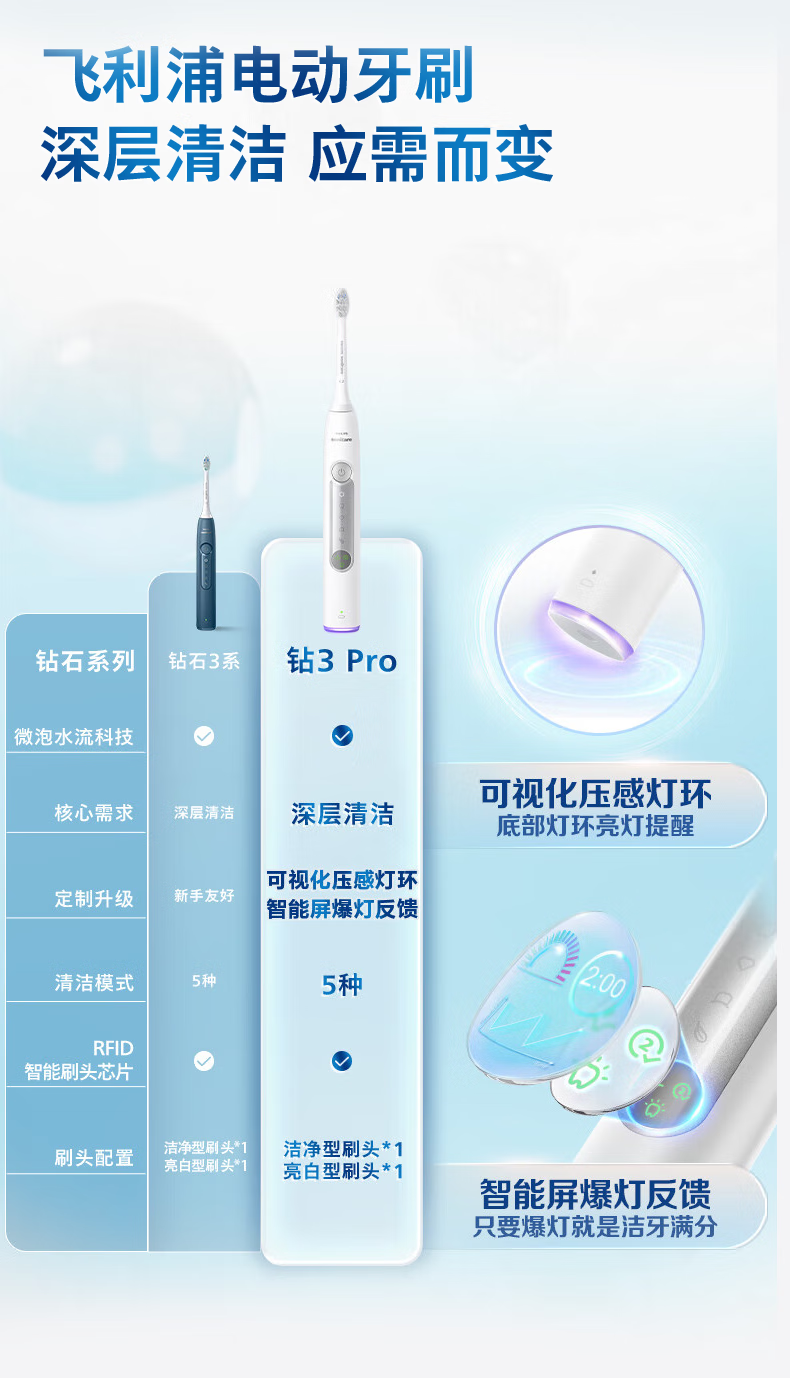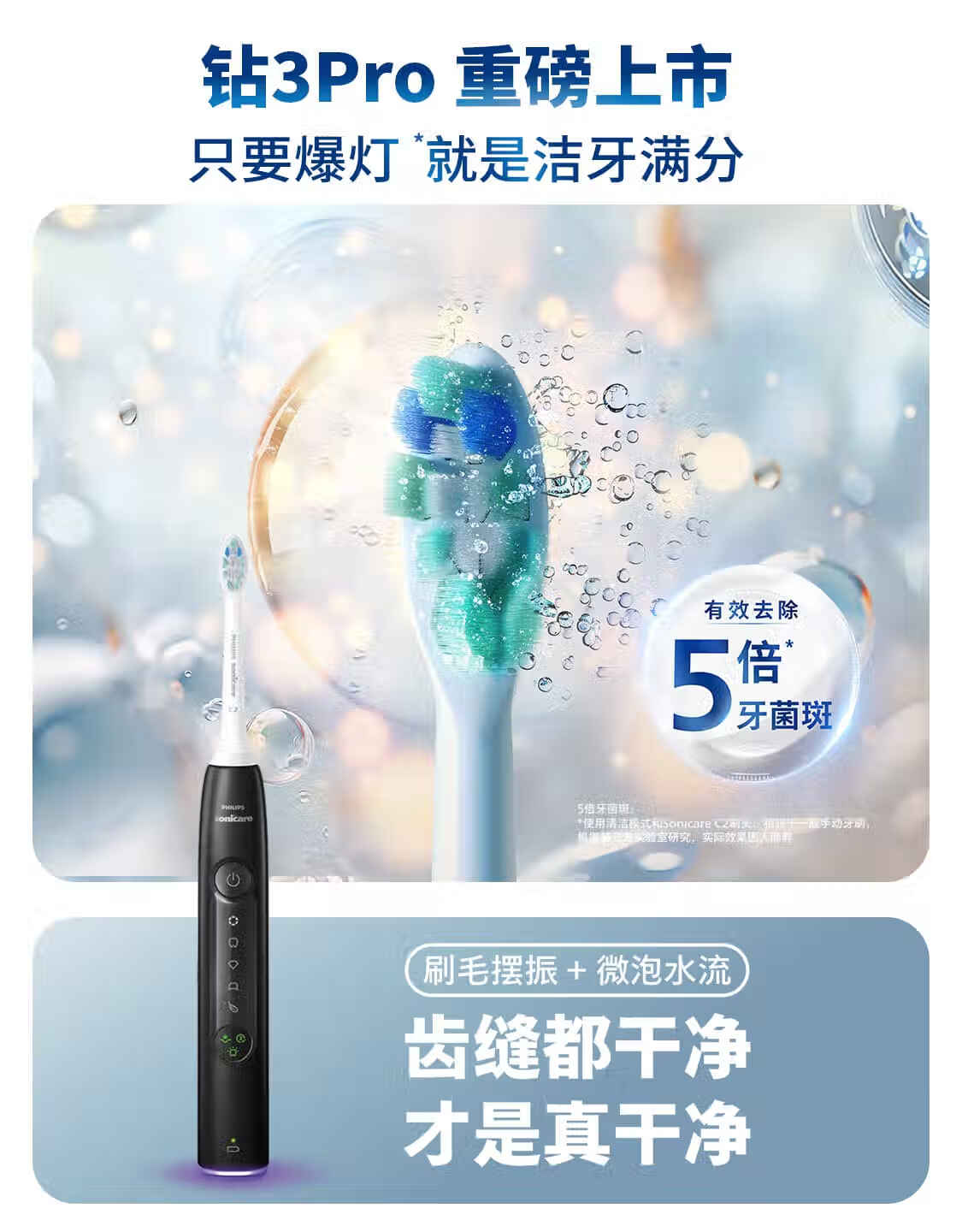 【飞利浦】电动牙刷钻石3系Pro 量子黑HX5282/01