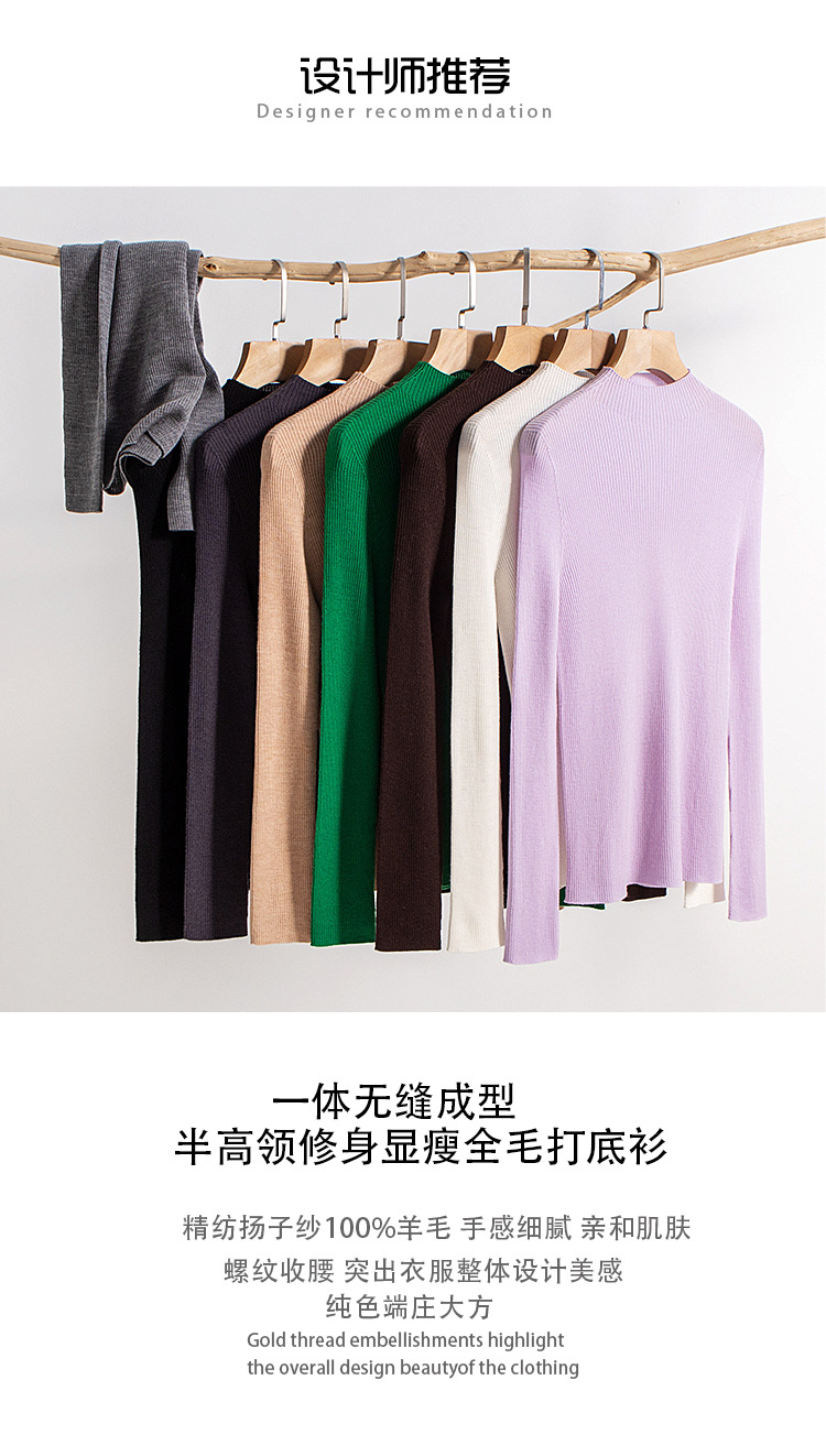 「自」全新升级【铂金会员266/天猫359/差价93】(12657)洛诗琳无缝一体针织上衣2025秋冬新款纯色百搭半高领羊毛衫