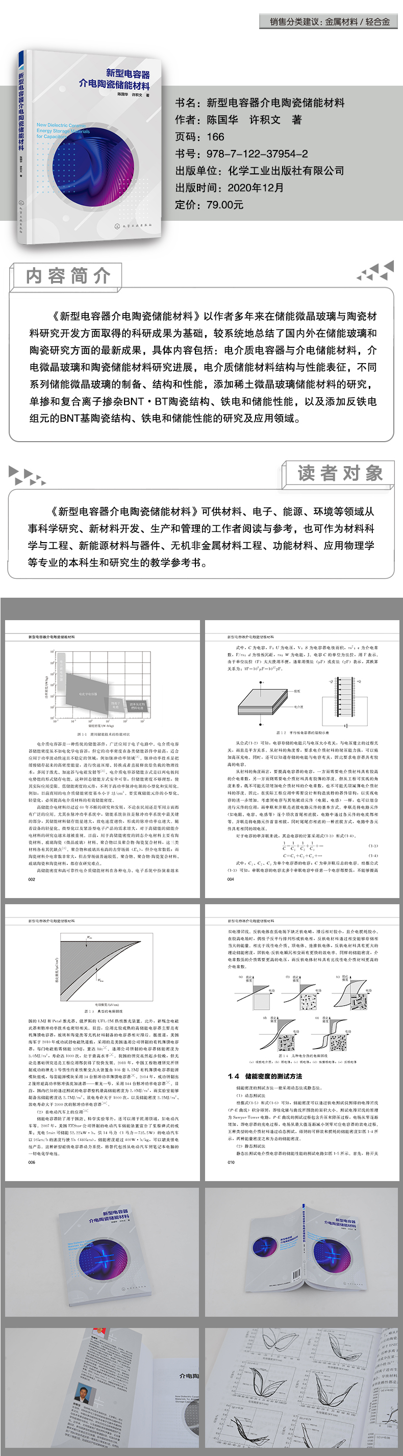 《新型电容器介电陶瓷储能材料》可供材料、电子、能源、环境等领域从事科学研究、新材料开发、生产和管理的工作者阅读与参考,也可作为材料科学与工程、新能源材料与器件、无机非金属材料工程、功能材料、应用物理学等专业的本科生和研究生的教学参考书。