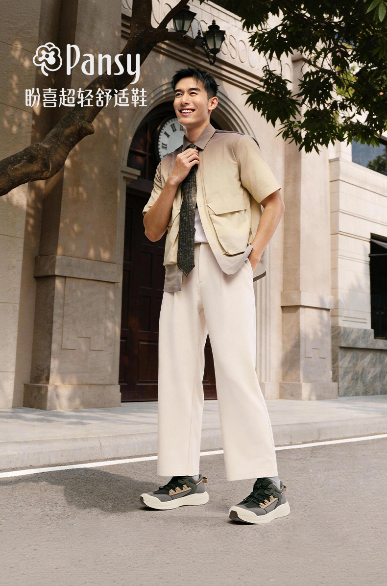 Pansy盼喜宽胖脚男透气网面运动休闲鞋厚底鞋2026年春夏新款 HDN1148