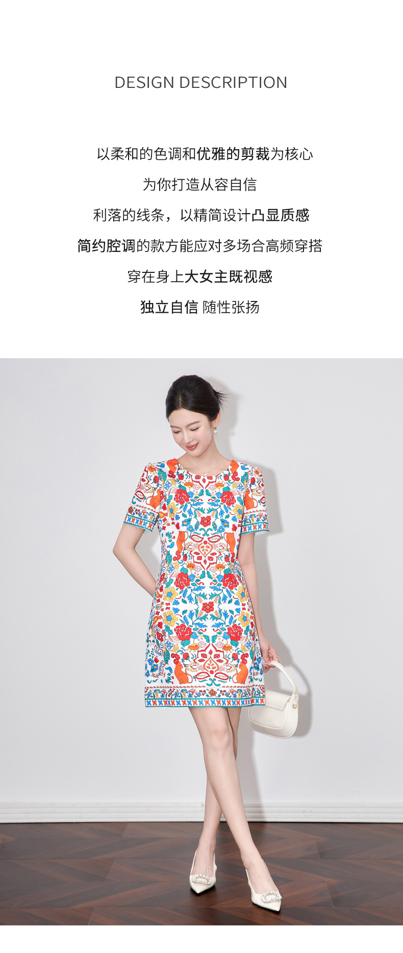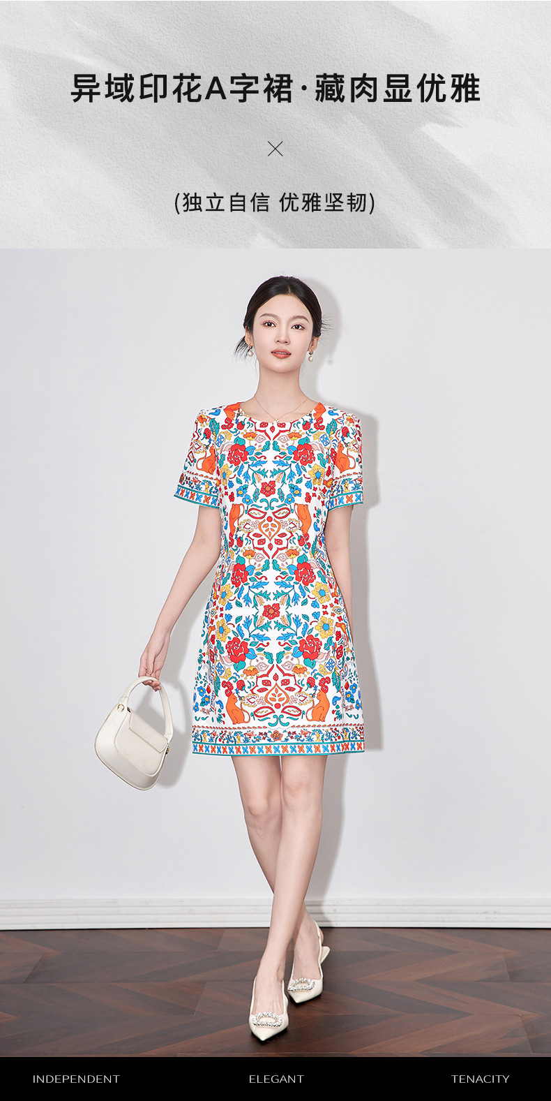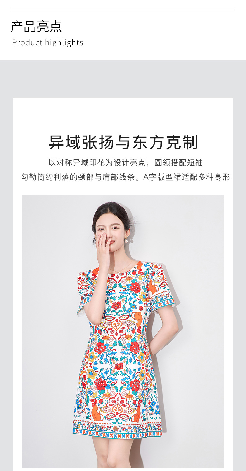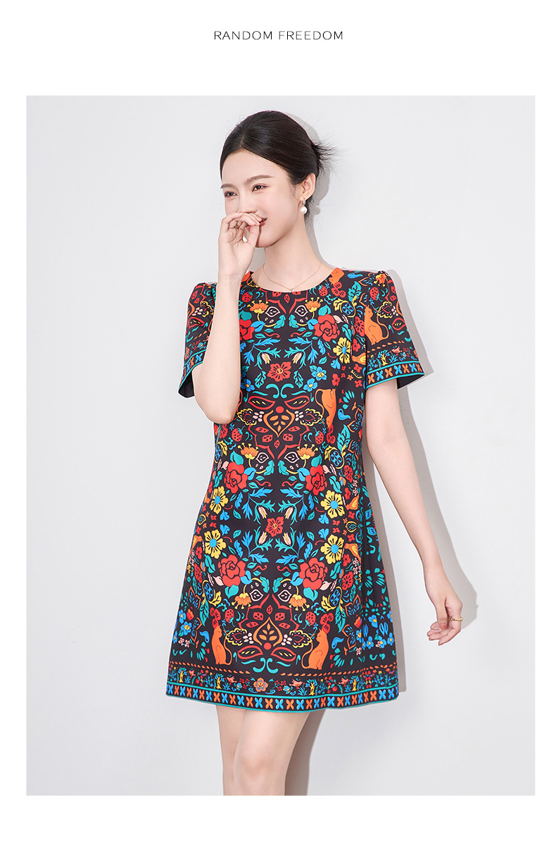 「高货wl」全新升级【铂金会员284/天猫379/差价95】(00351)洛诗琳时尚复古花色印花连衣裙2025夏季民族风气质A字裙