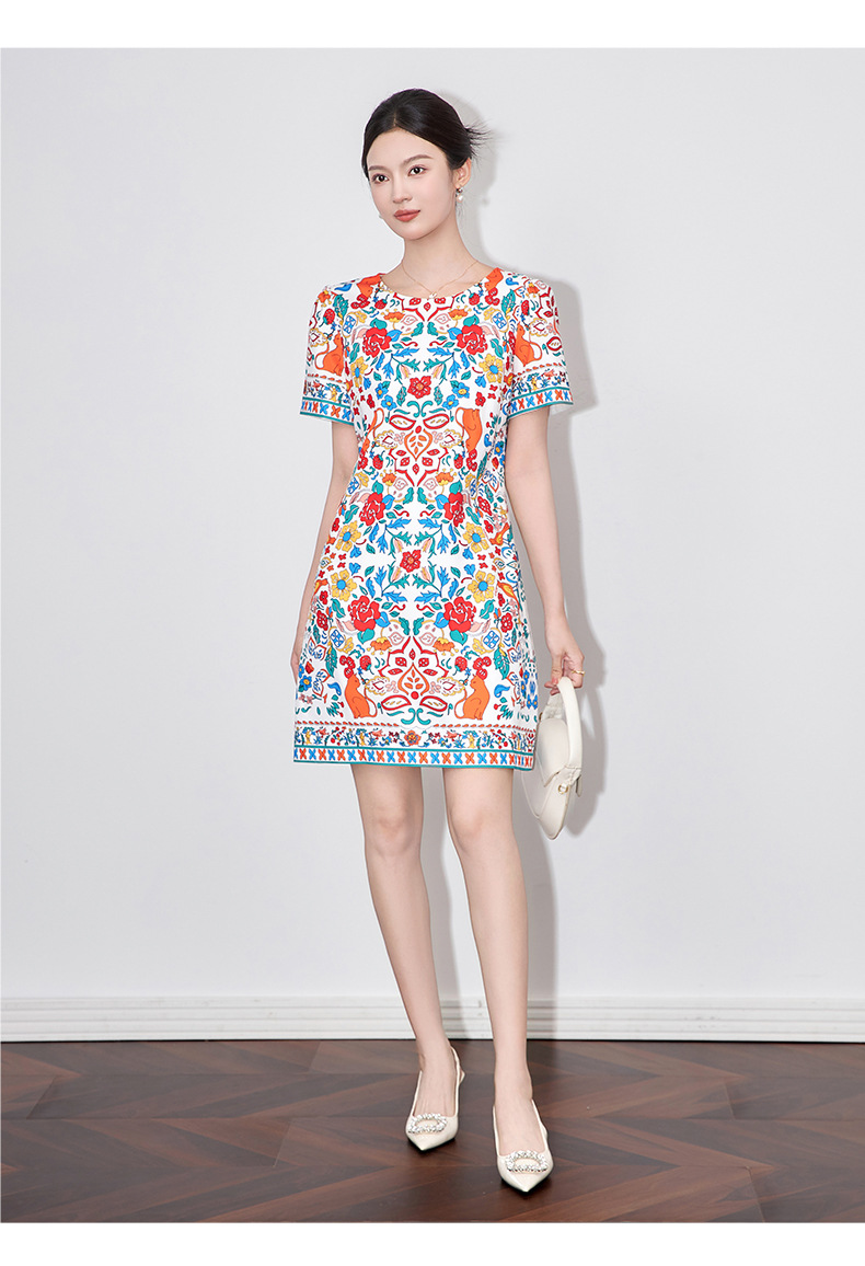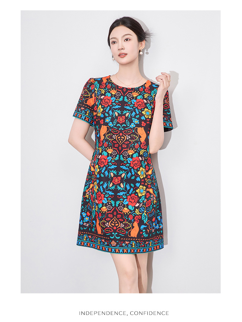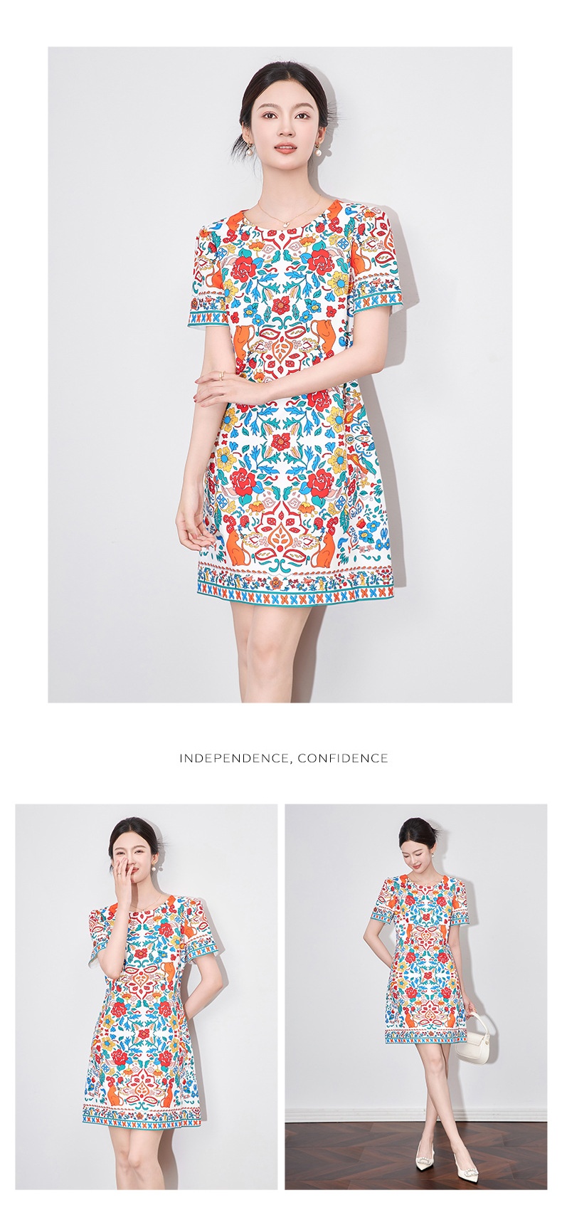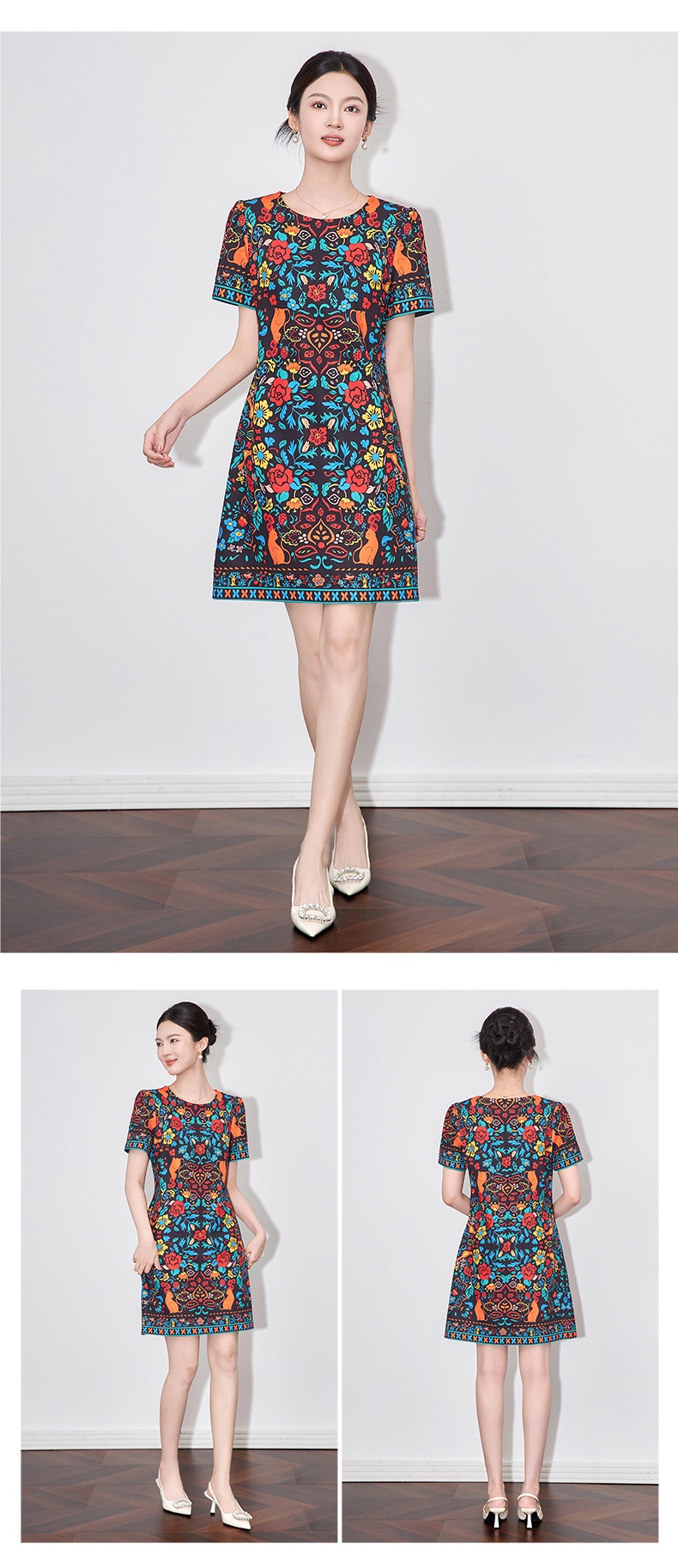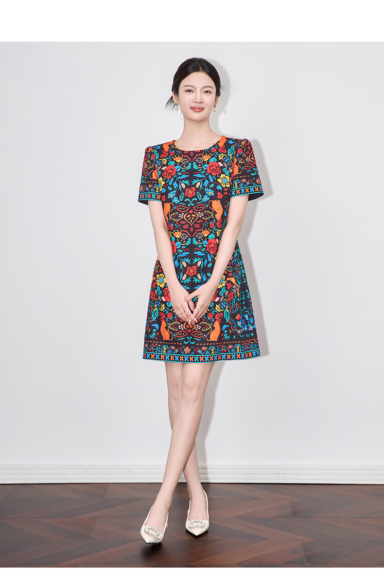 「高货wl」全新升级【铂金会员284/天猫379/差价95】(00351)洛诗琳时尚复古花色印花连衣裙2025夏季民族风气质A字裙