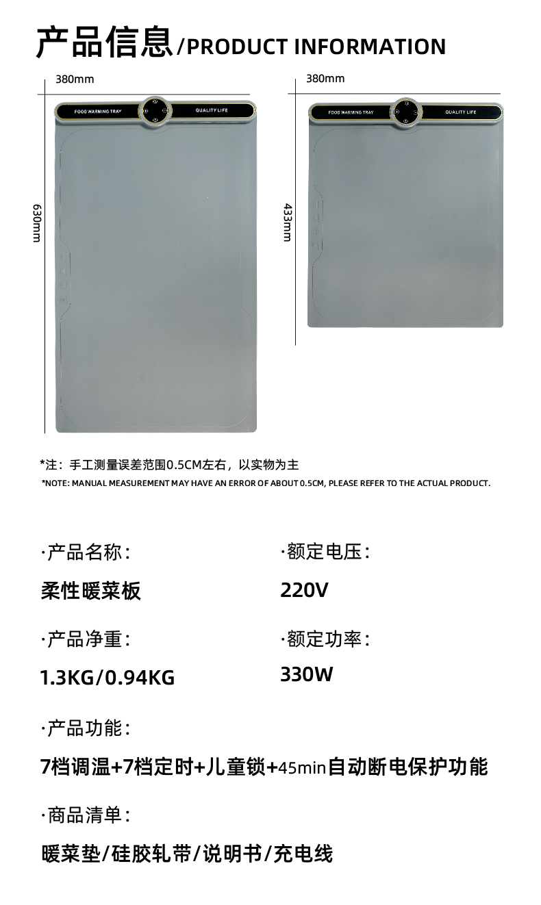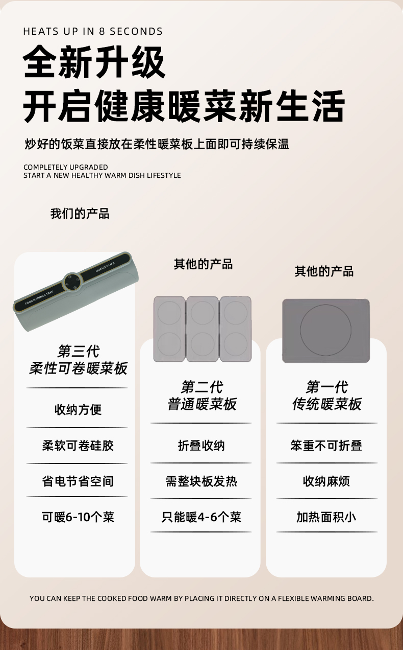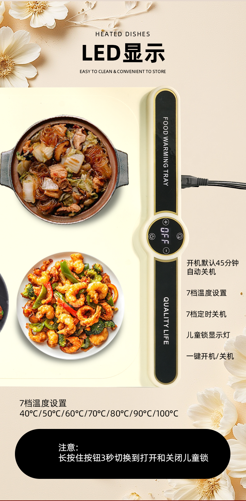 YP 暖菜保温锁鲜 敏煌 暖菜神器 恒温热菜板 速热易收纳 7档调温定时