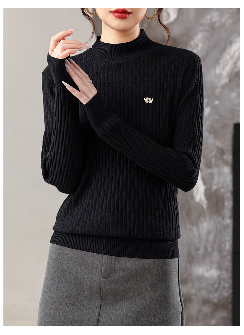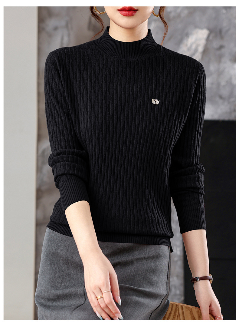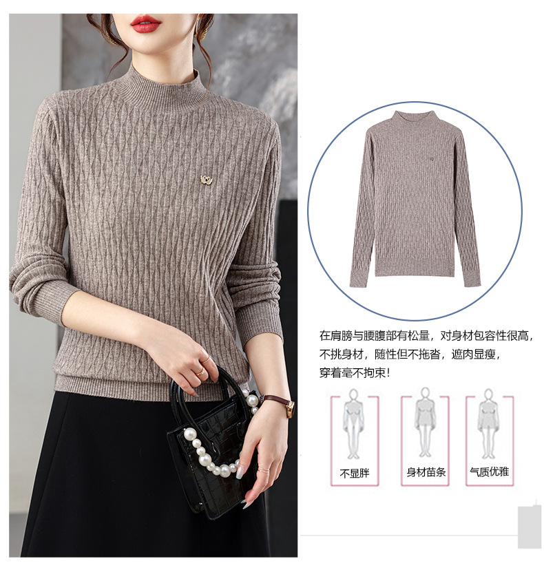 CC高级感毛衣女冬季新款洋气半高领针织衫时尚显瘦短款打底上衣百搭