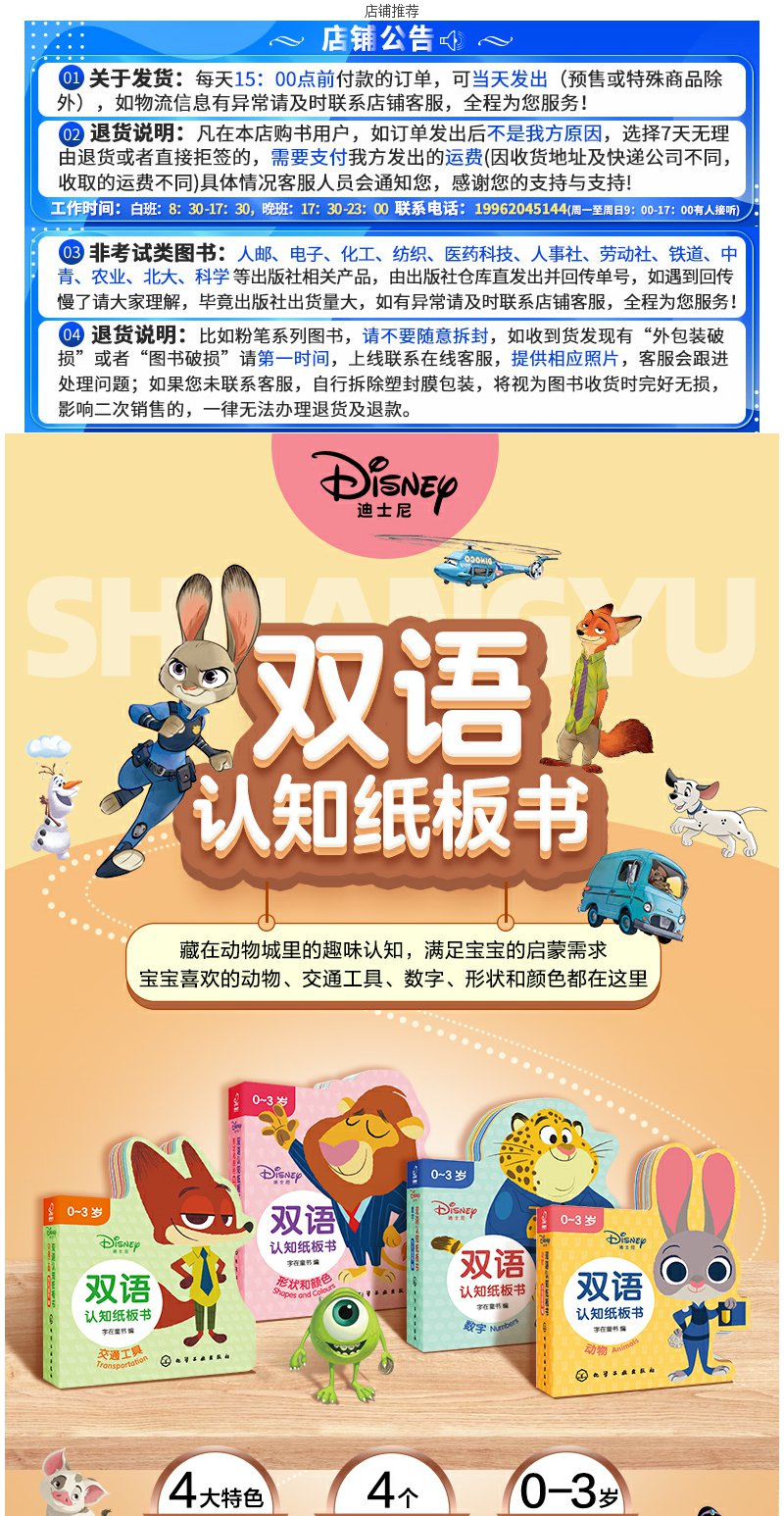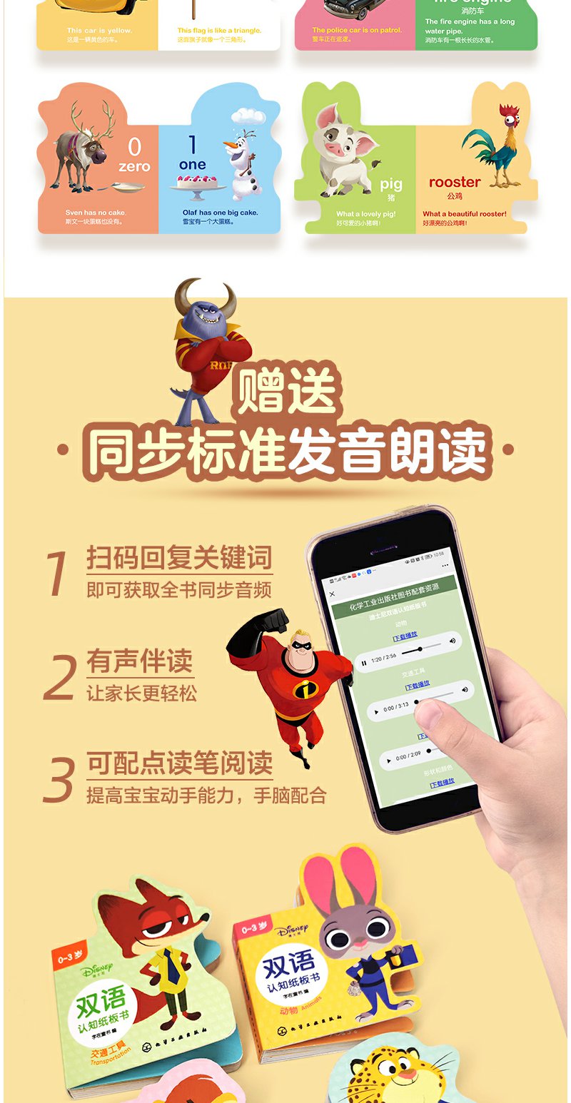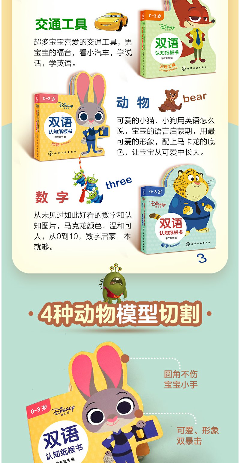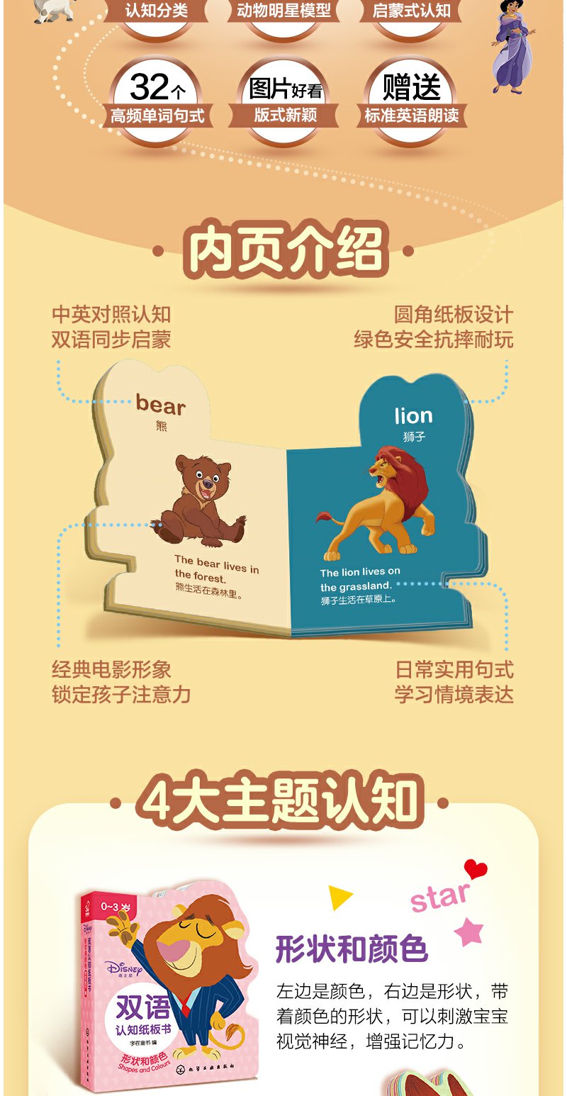 迪士尼认知纸板书 套装2册 0-3岁宝宝的迪士尼双语启蒙认知书 幼儿早教 幼儿英语启蒙 中英双语互动翻翻书 宝宝专注力提升启蒙书籍 无 化学工业出版社 9787122393531