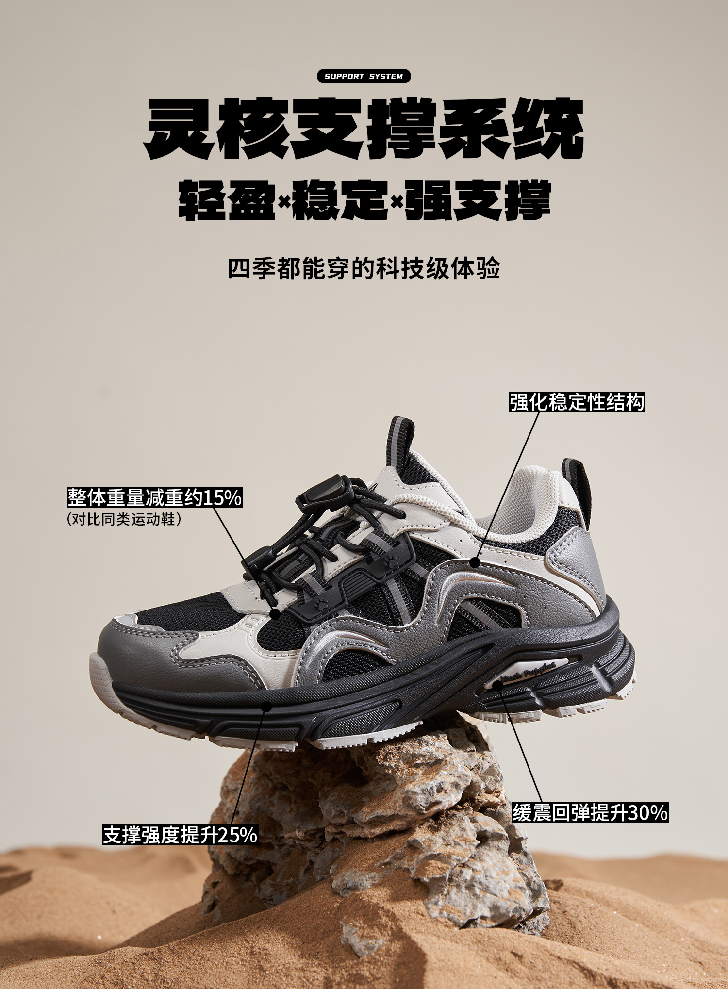 暇步士26春季中大童软底户外运动登山暴走鞋、HP6605001