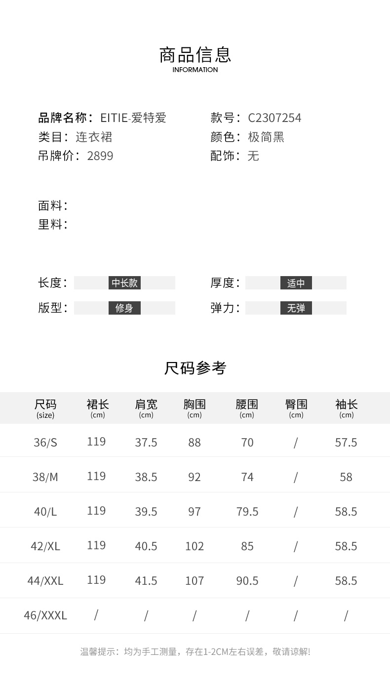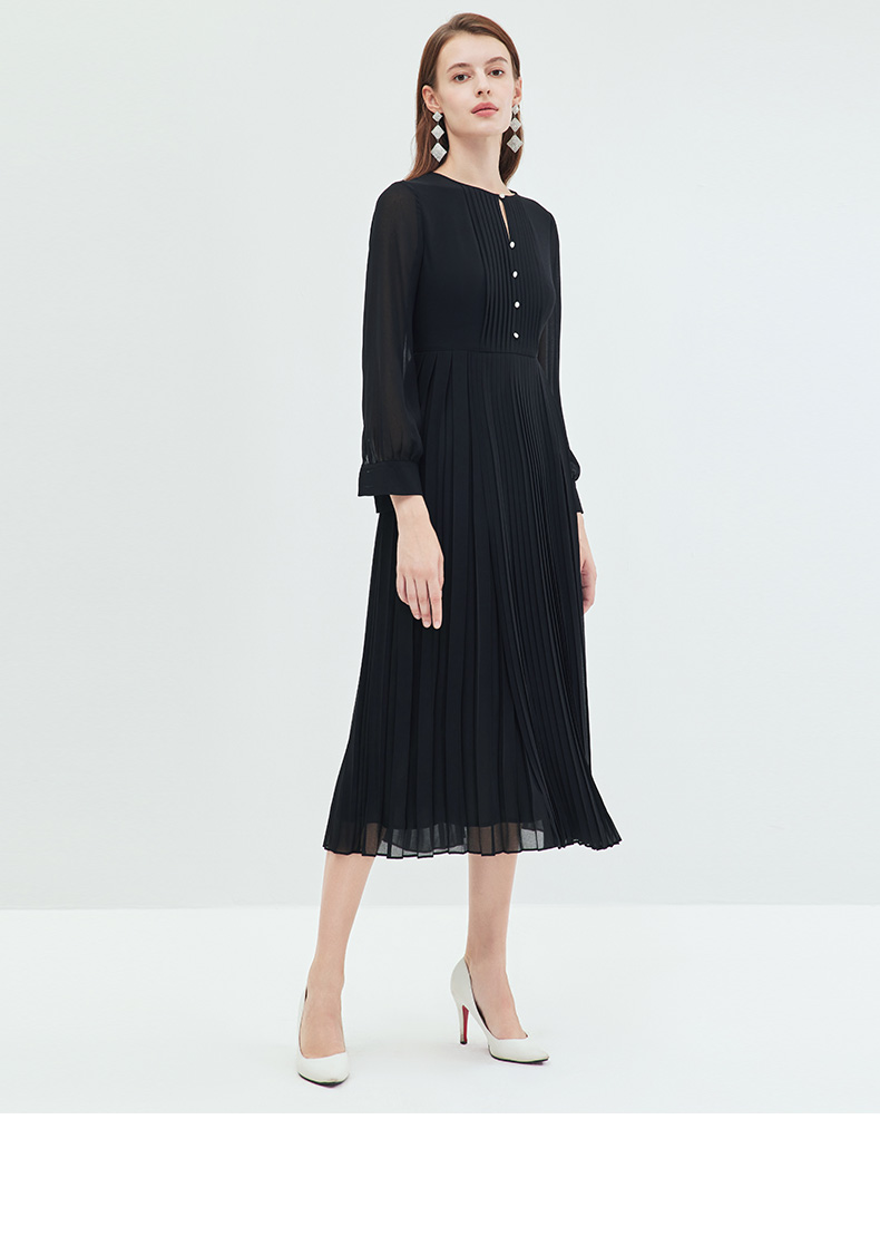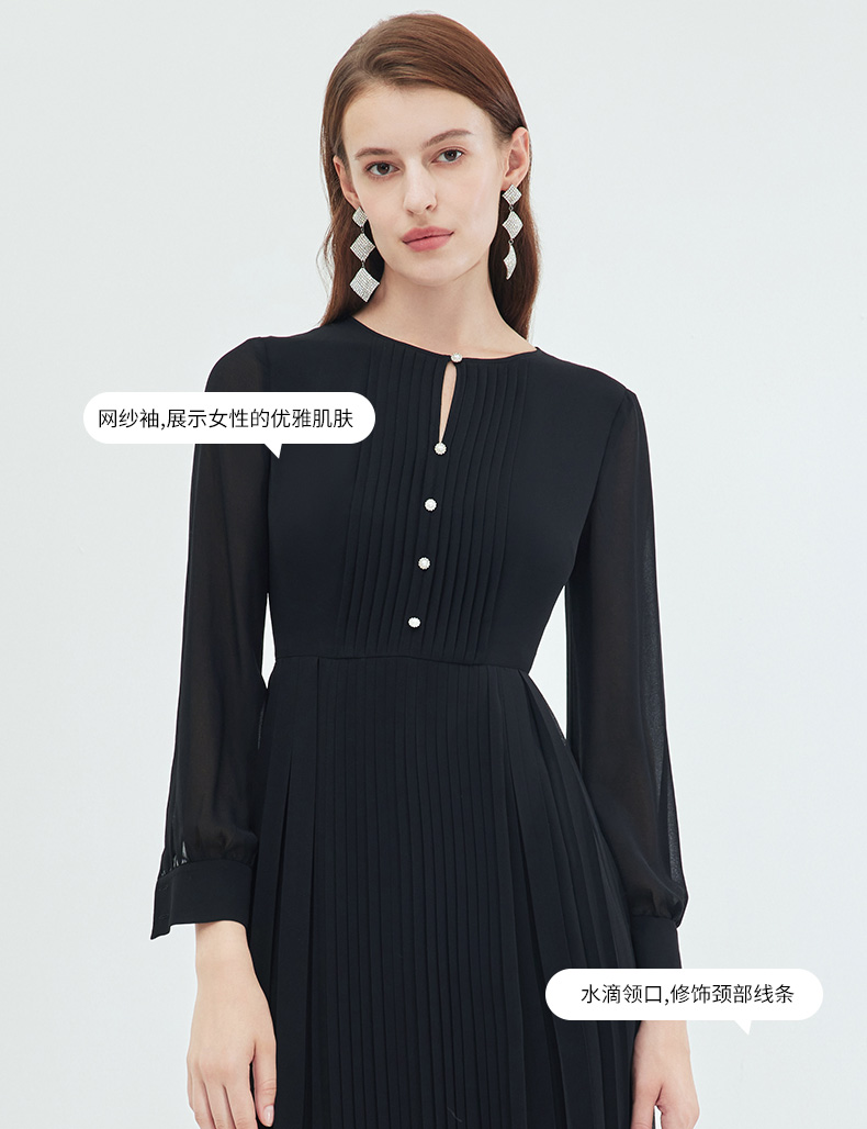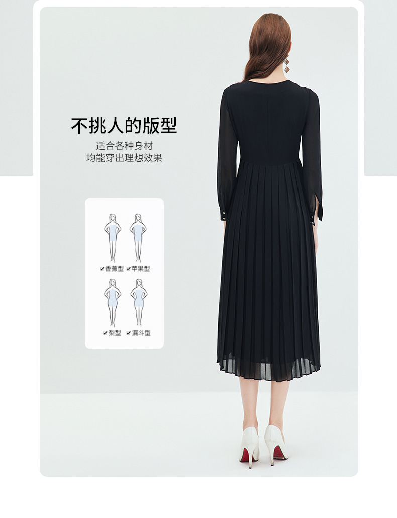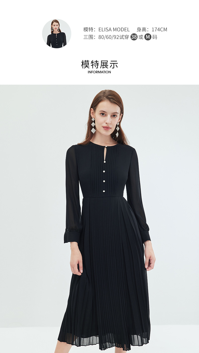 EITIE连衣裙时尚纯色气质百褶收腰连衣裙显瘦法式优雅秋季新款C07254