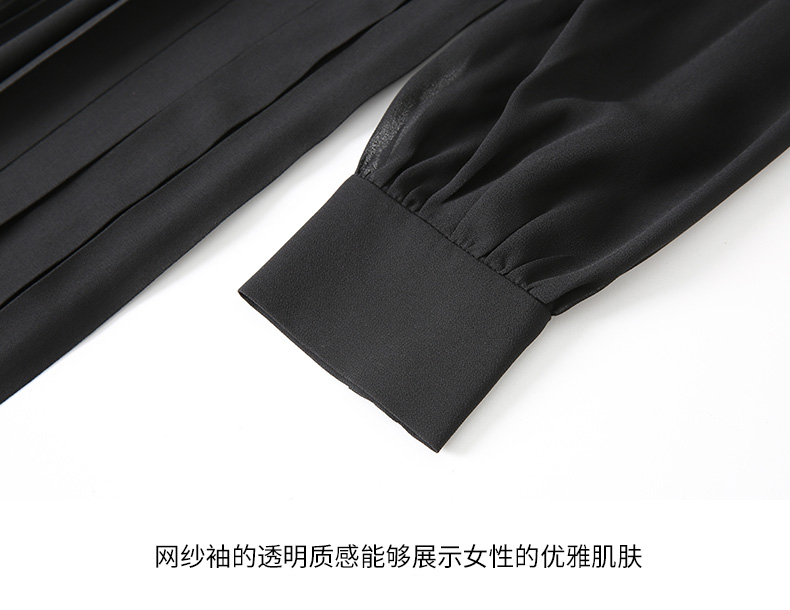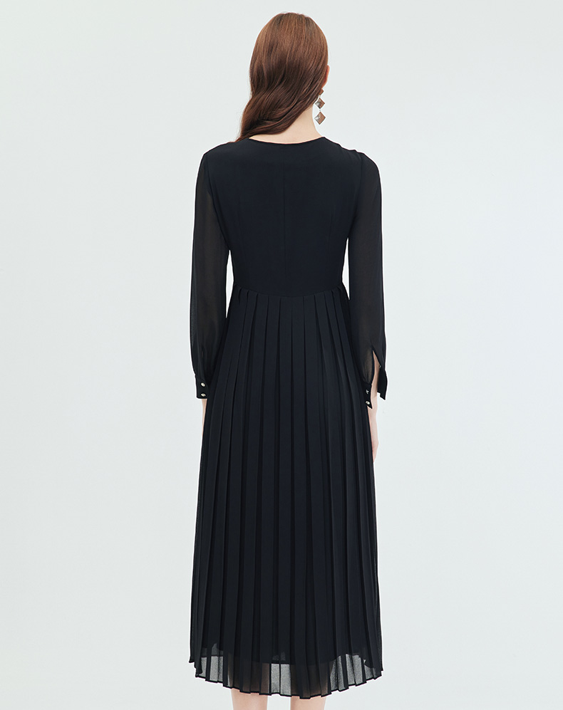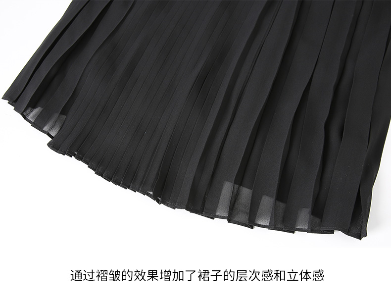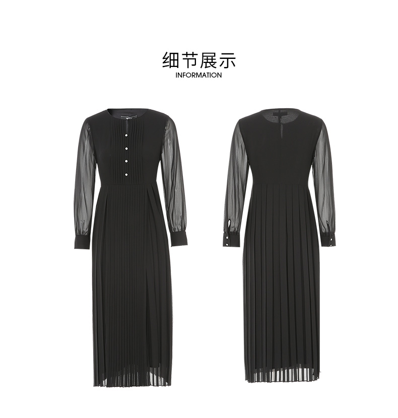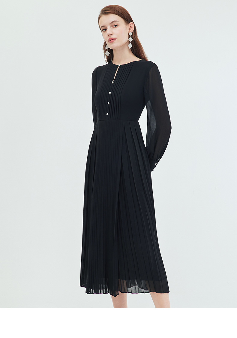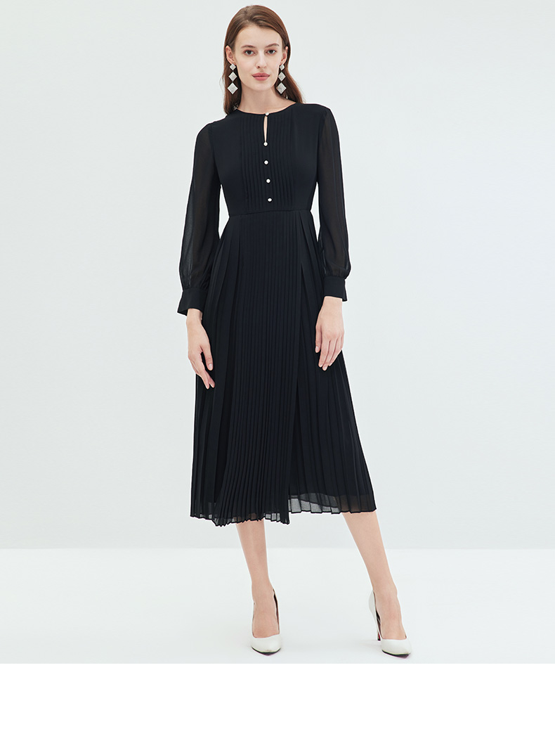 EITIE连衣裙时尚纯色气质百褶收腰连衣裙显瘦法式优雅秋季新款C07254