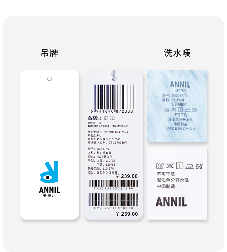 【7A级抗菌/棉秋衣裤】男女童秋衣裤套装秋季新款安奈儿童装JM537591