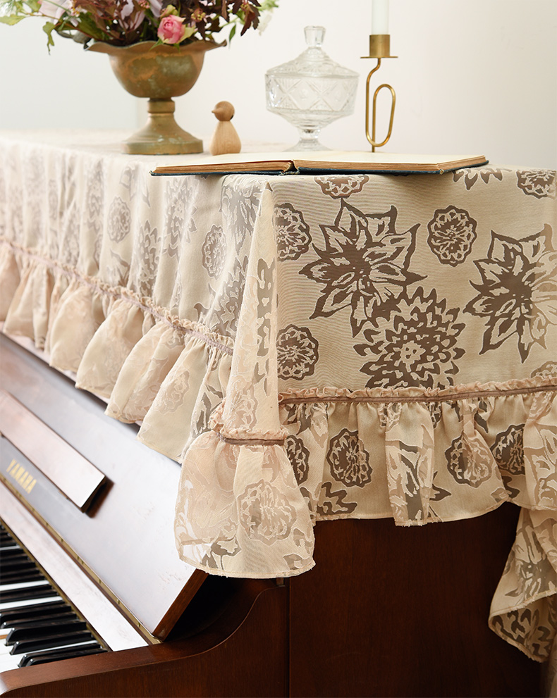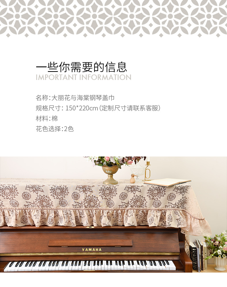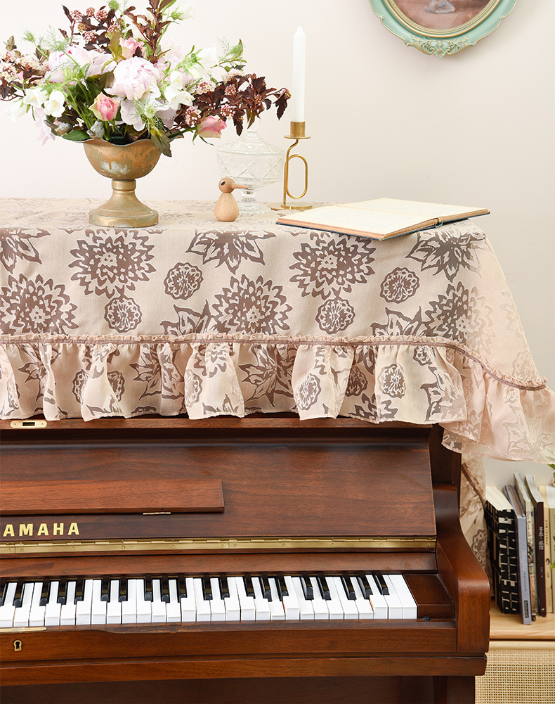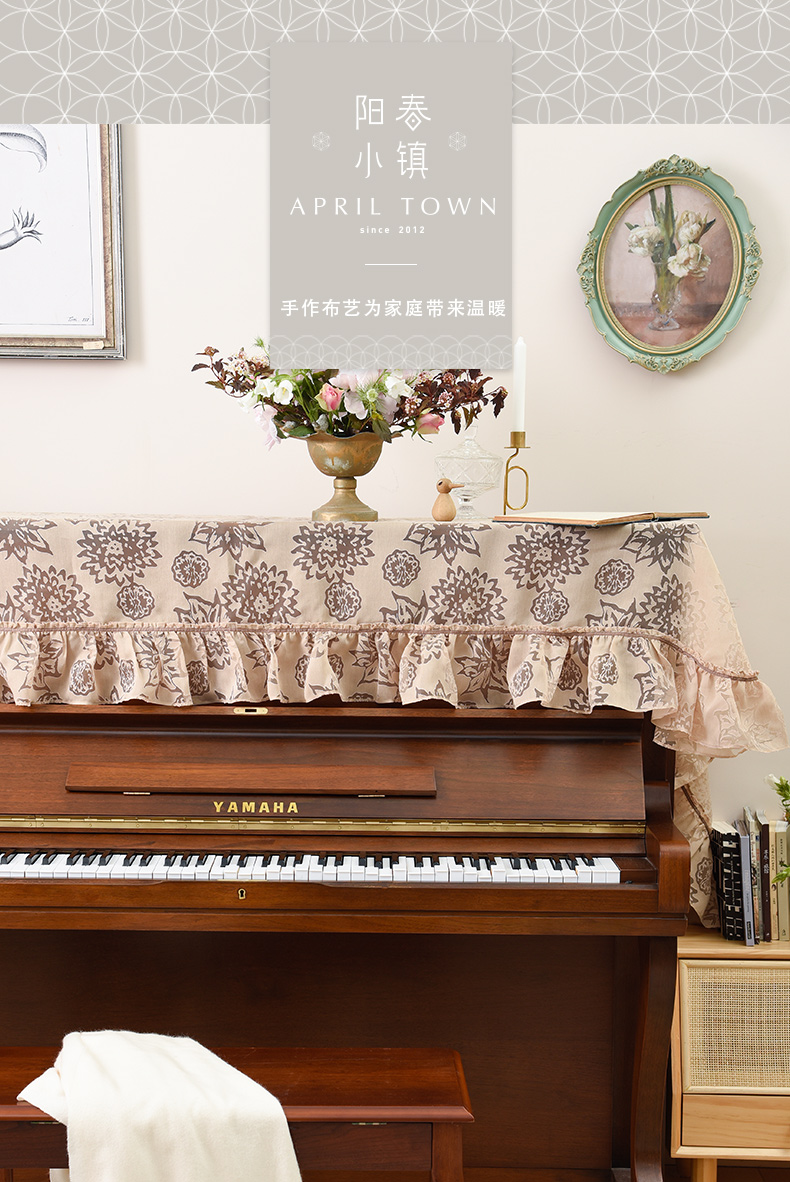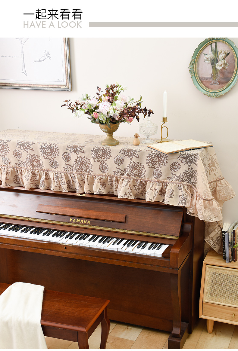 大丽花与海棠钢琴巾现代简约防尘钢琴罩