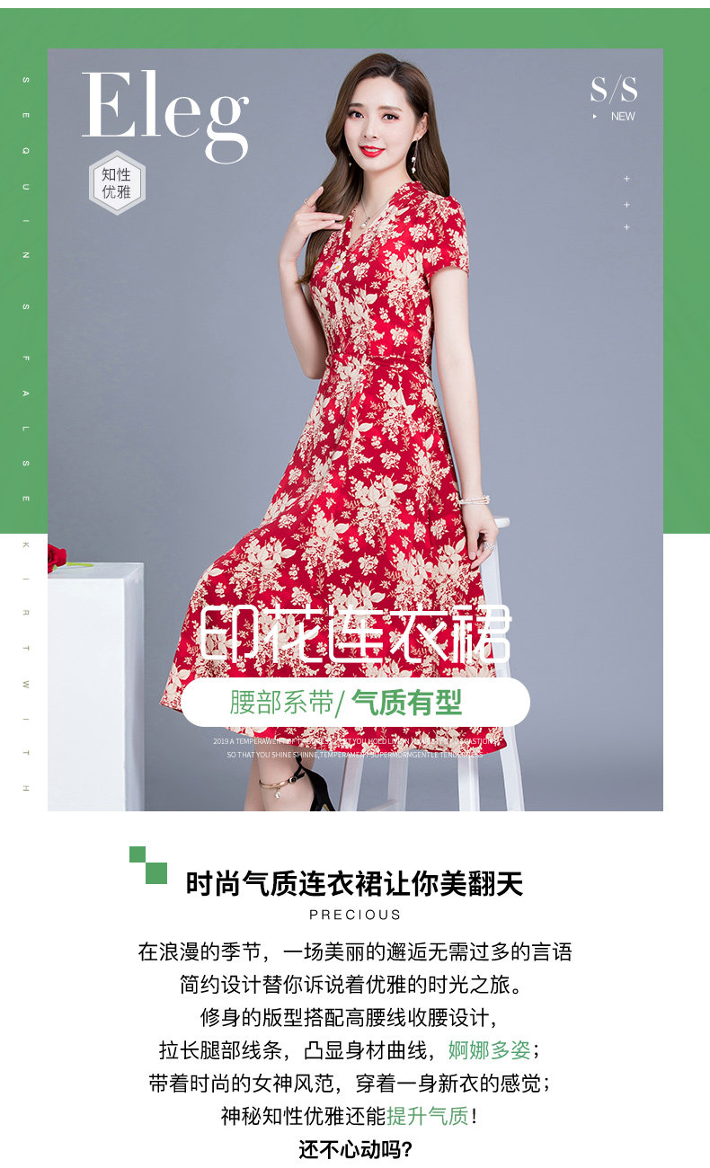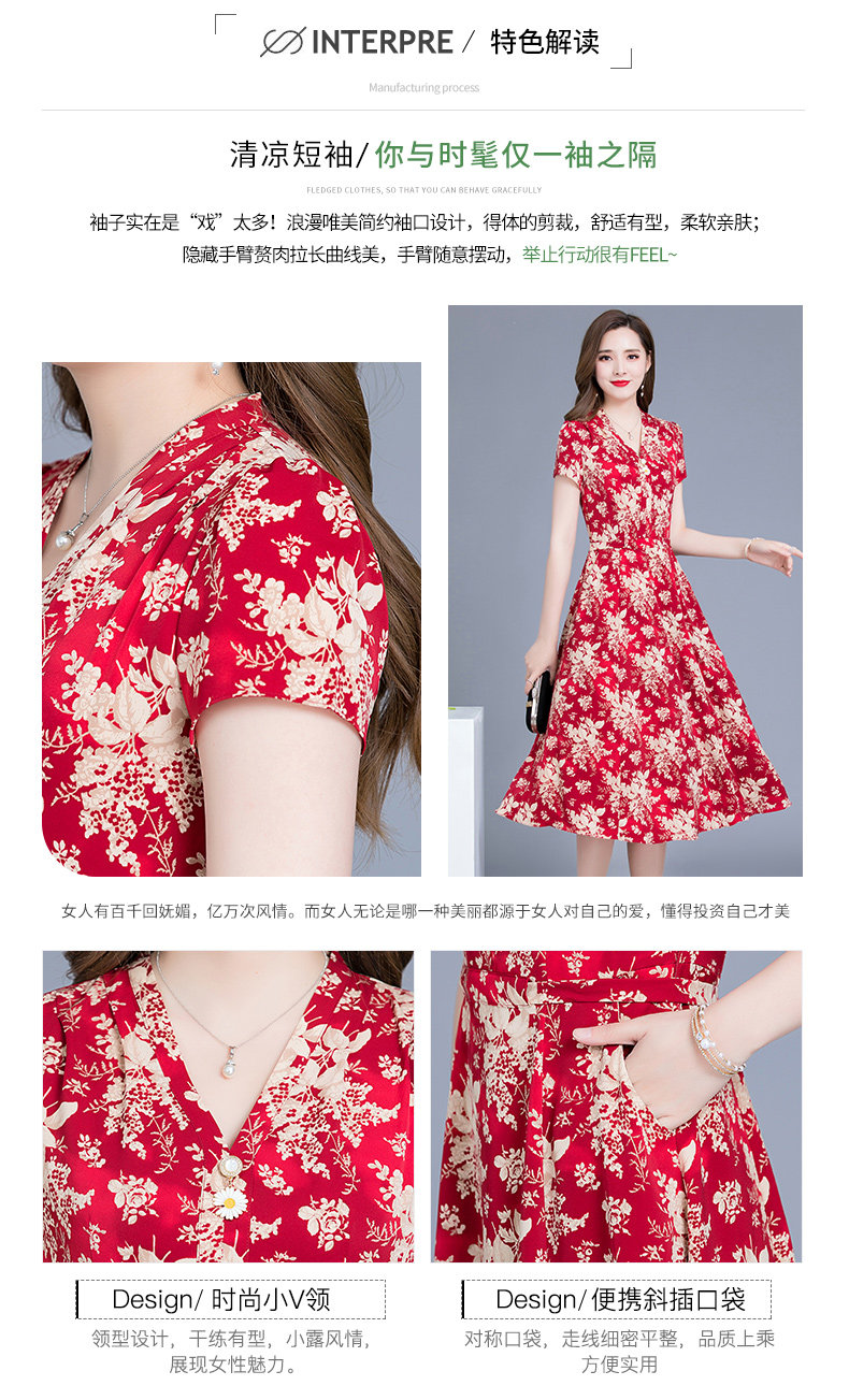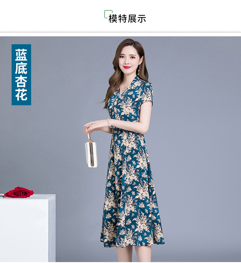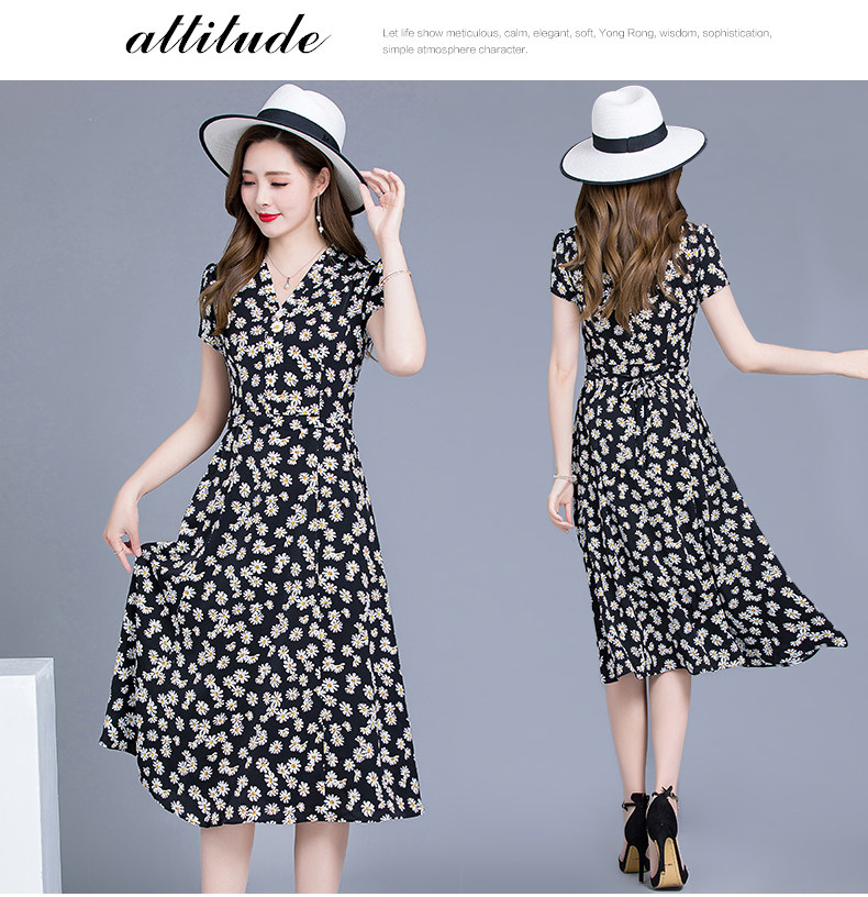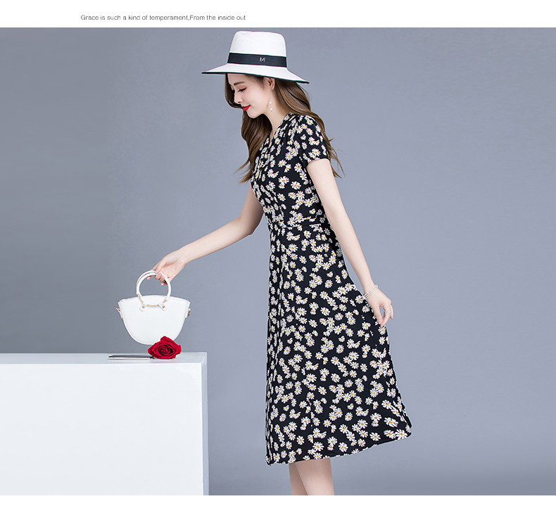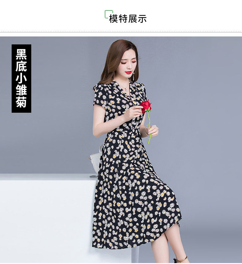 MQ-SLQ2082夏新款短袖优雅气质显瘦中长碎花雪纺连衣裙YY