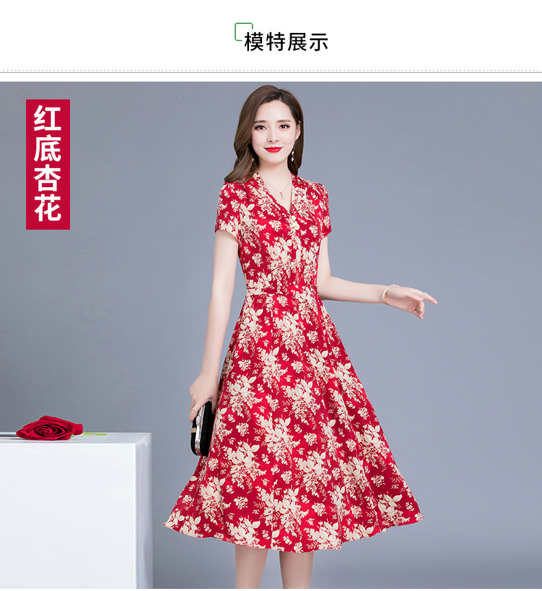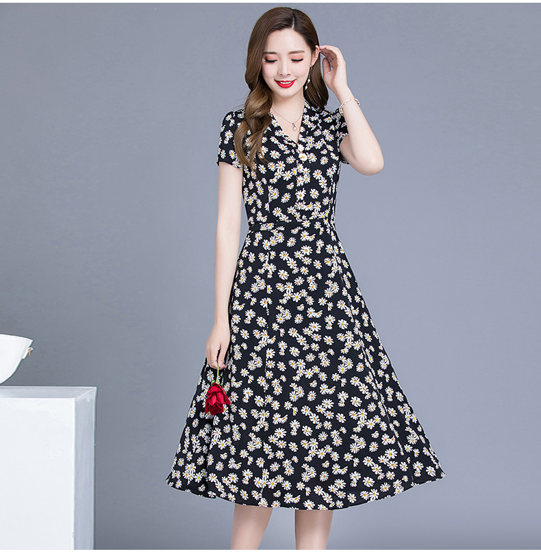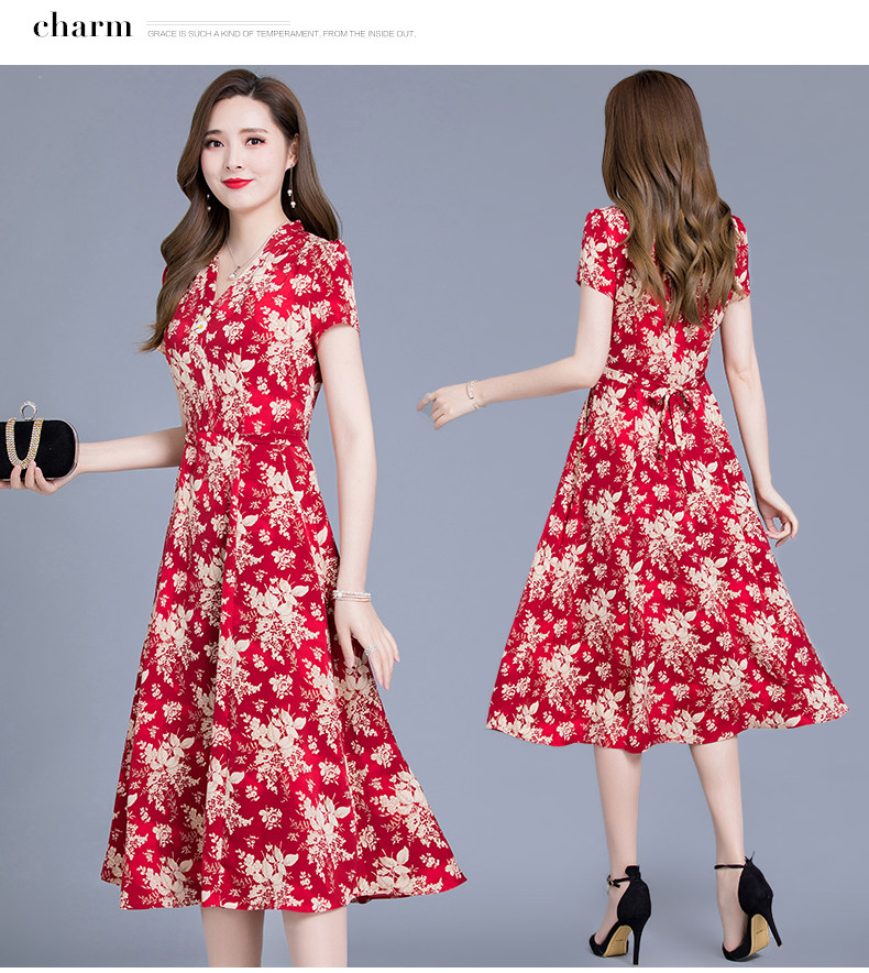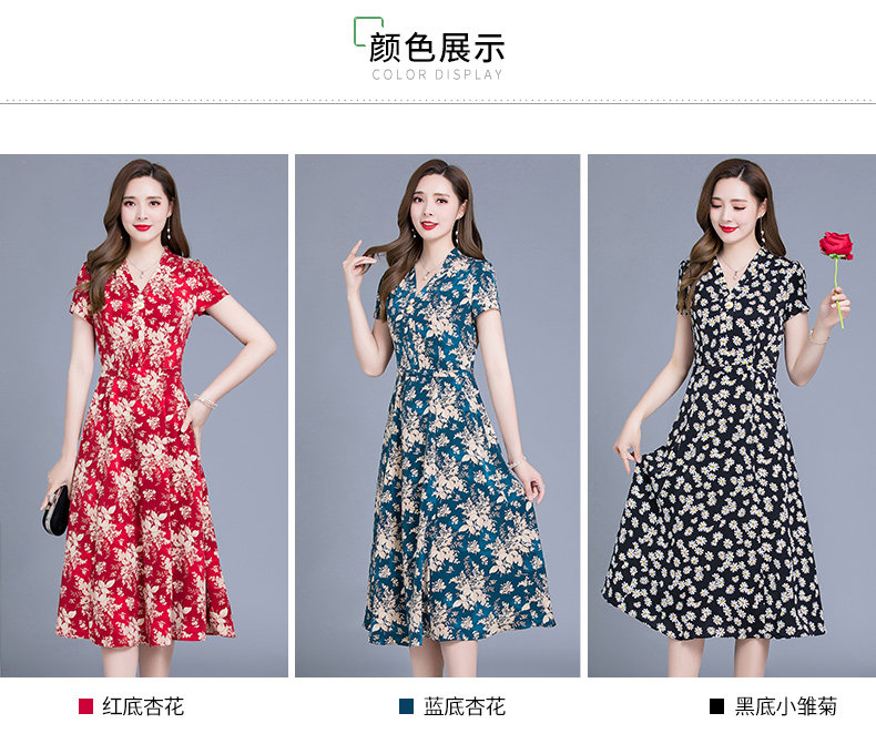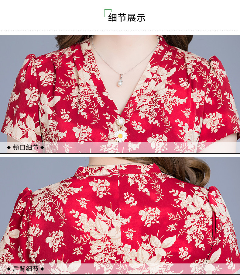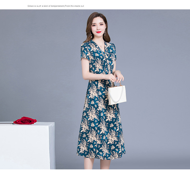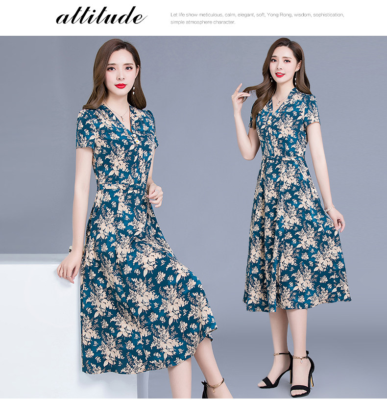 MQ-SLQ2082夏新款短袖优雅气质显瘦中长碎花雪纺连衣裙YY