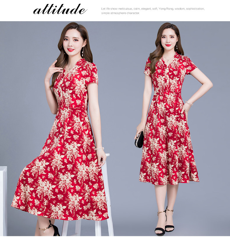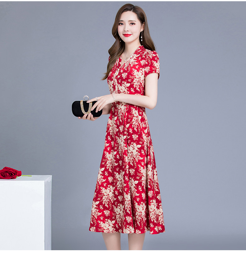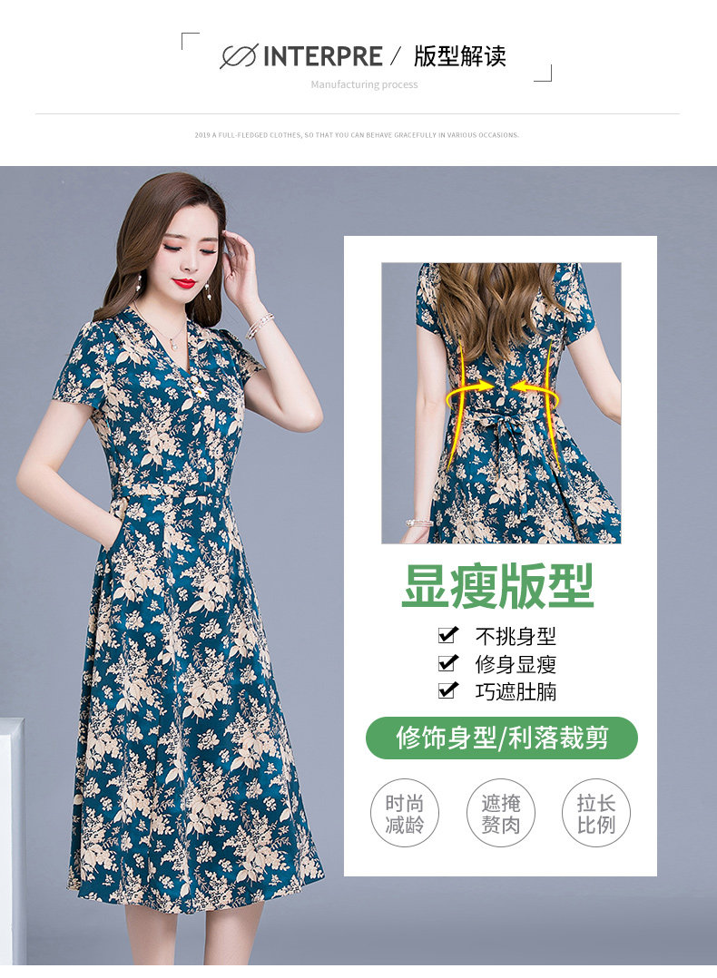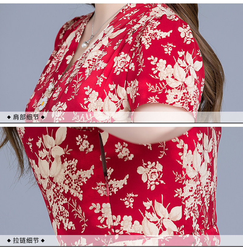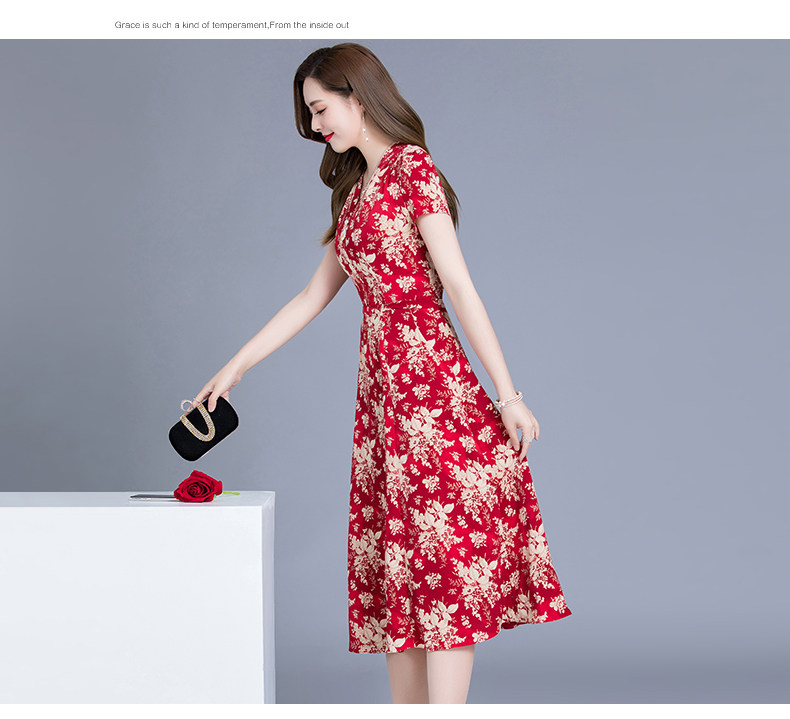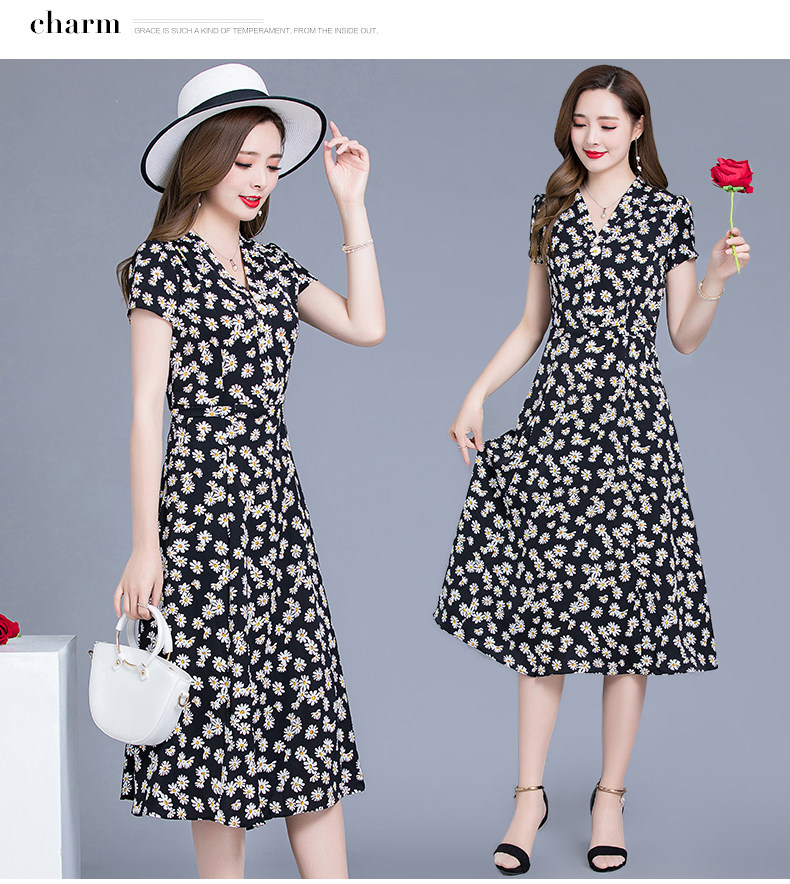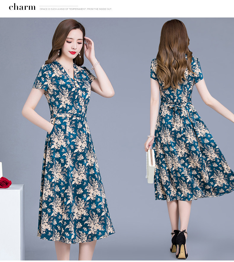 MQ-SLQ2082夏新款短袖优雅气质显瘦中长碎花雪纺连衣裙YY