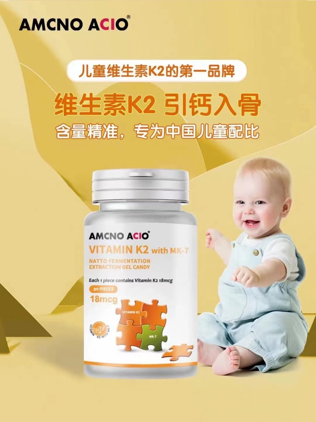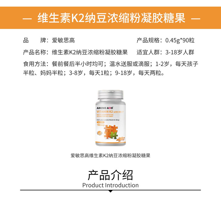 爱敏思高维生素K2 MK-7天然纳豆提取助力成长90粒