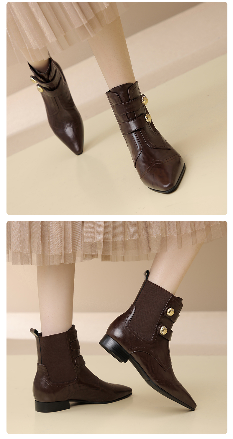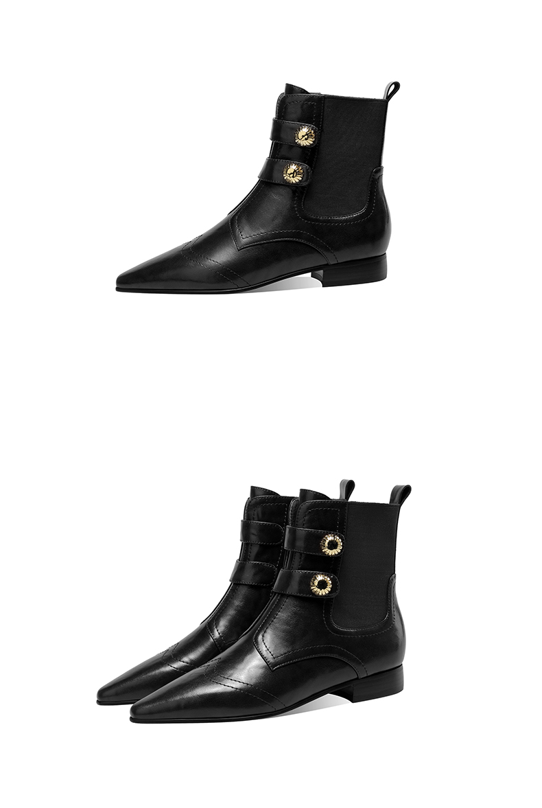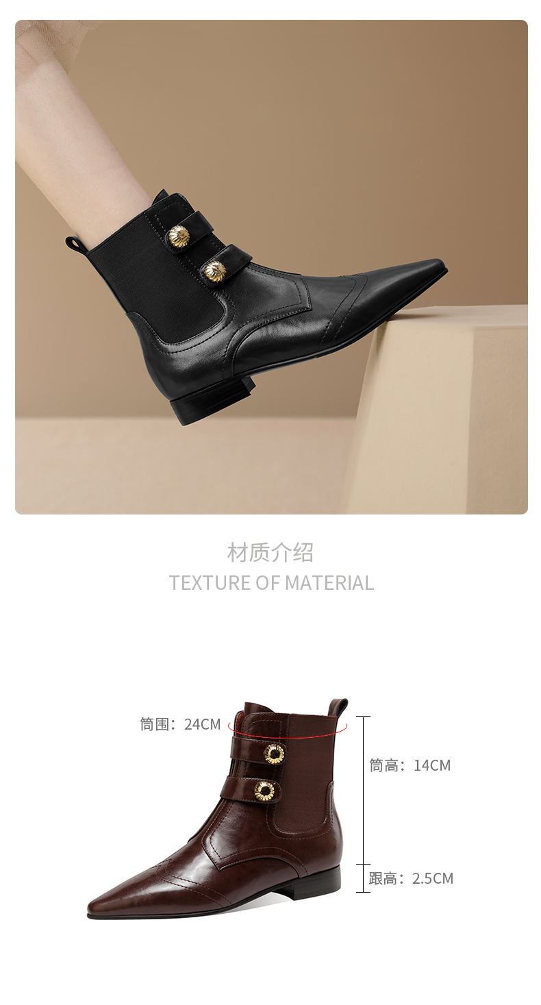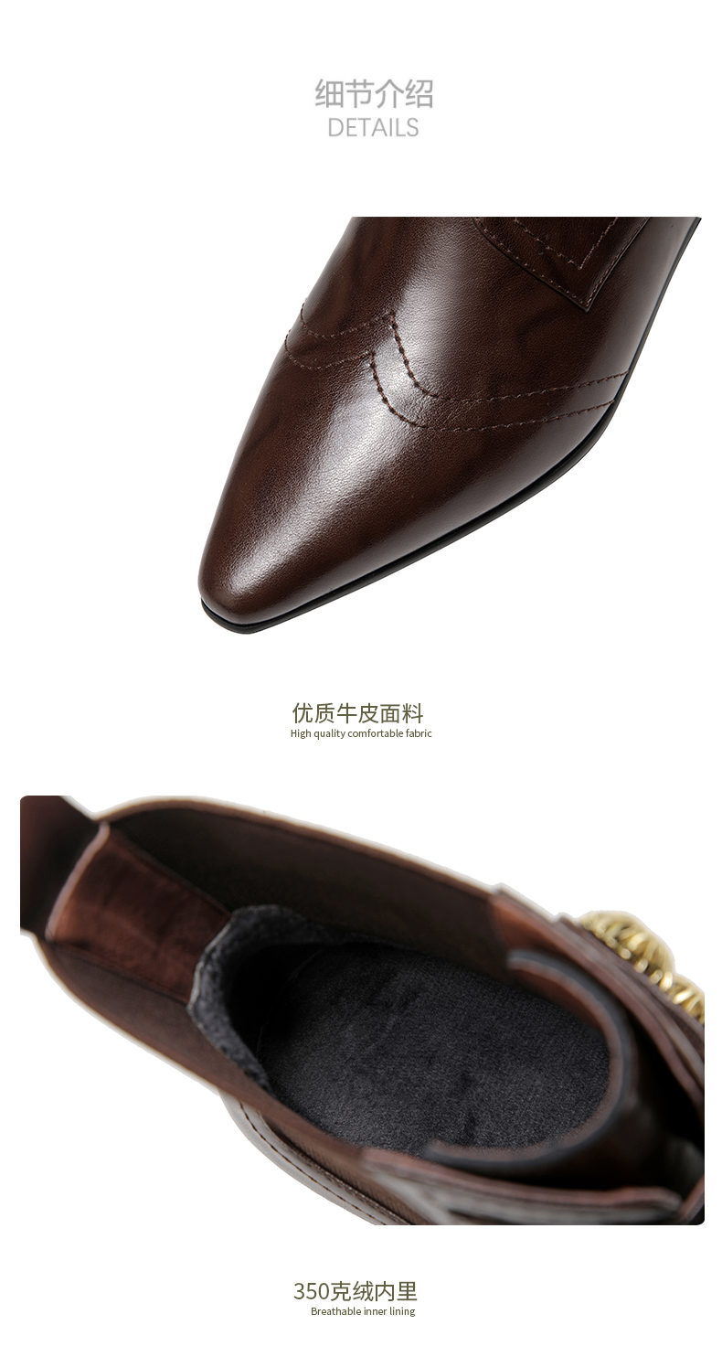 时尚个性,加绒保暖尖头真皮拼接低跟短靴XL794