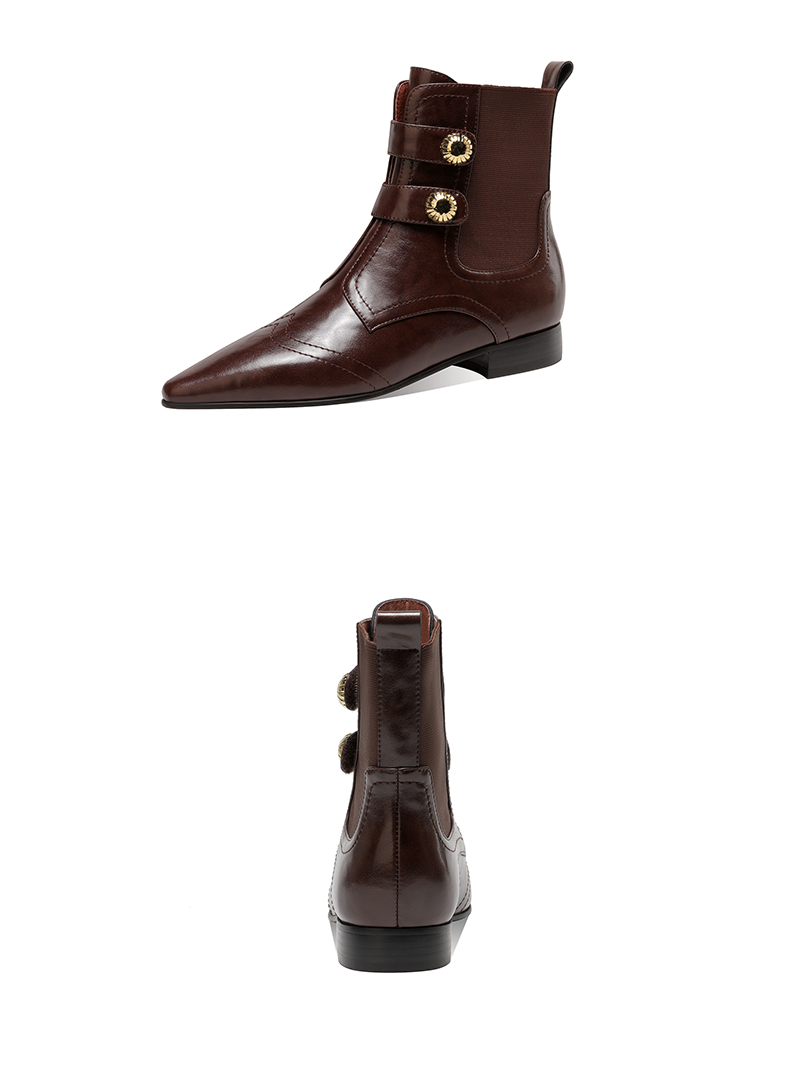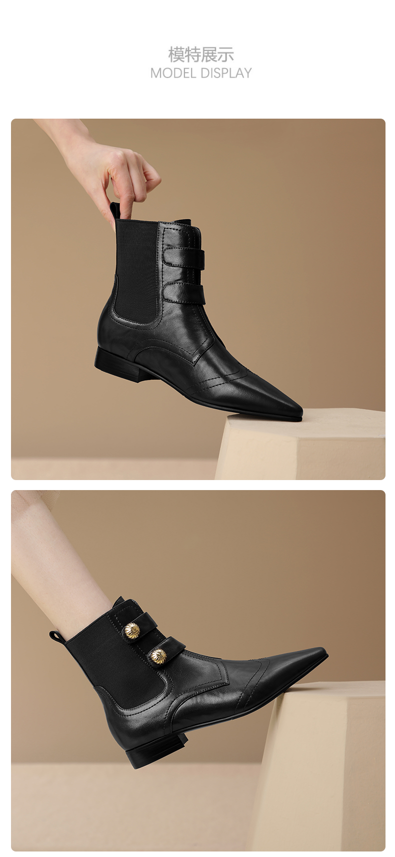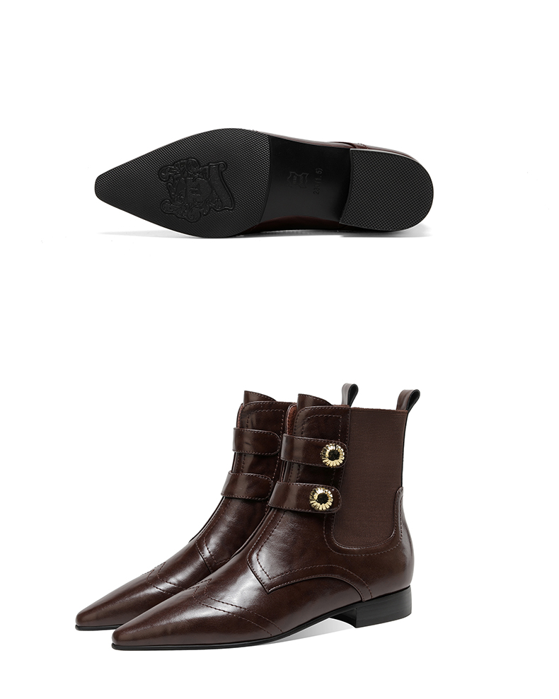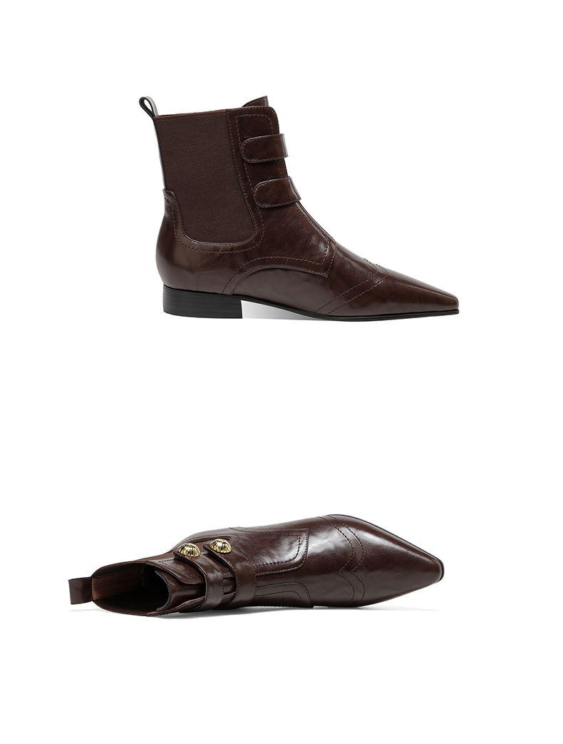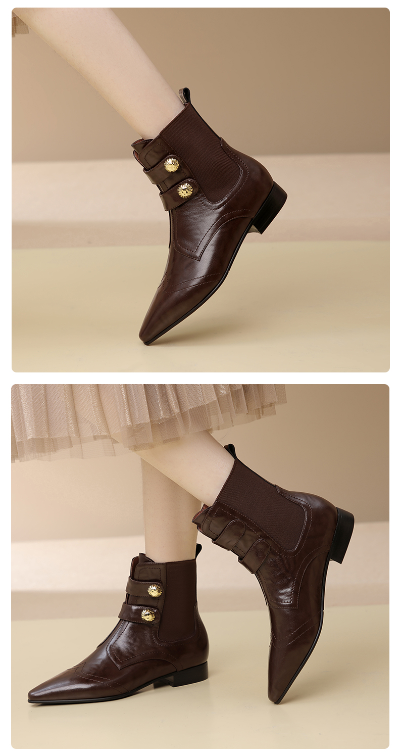 时尚个性,加绒保暖尖头真皮拼接低跟短靴XL794