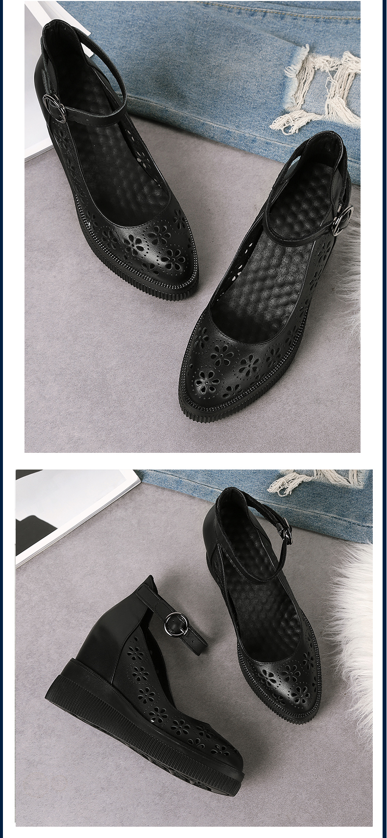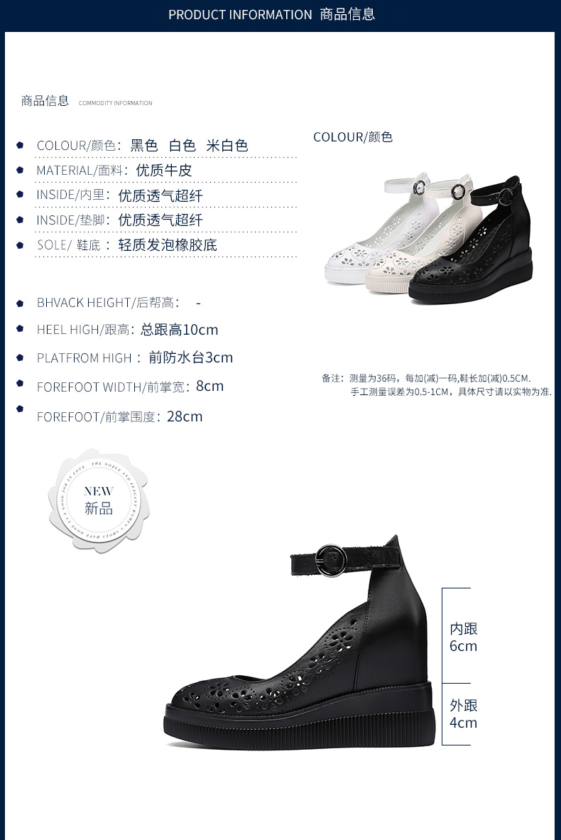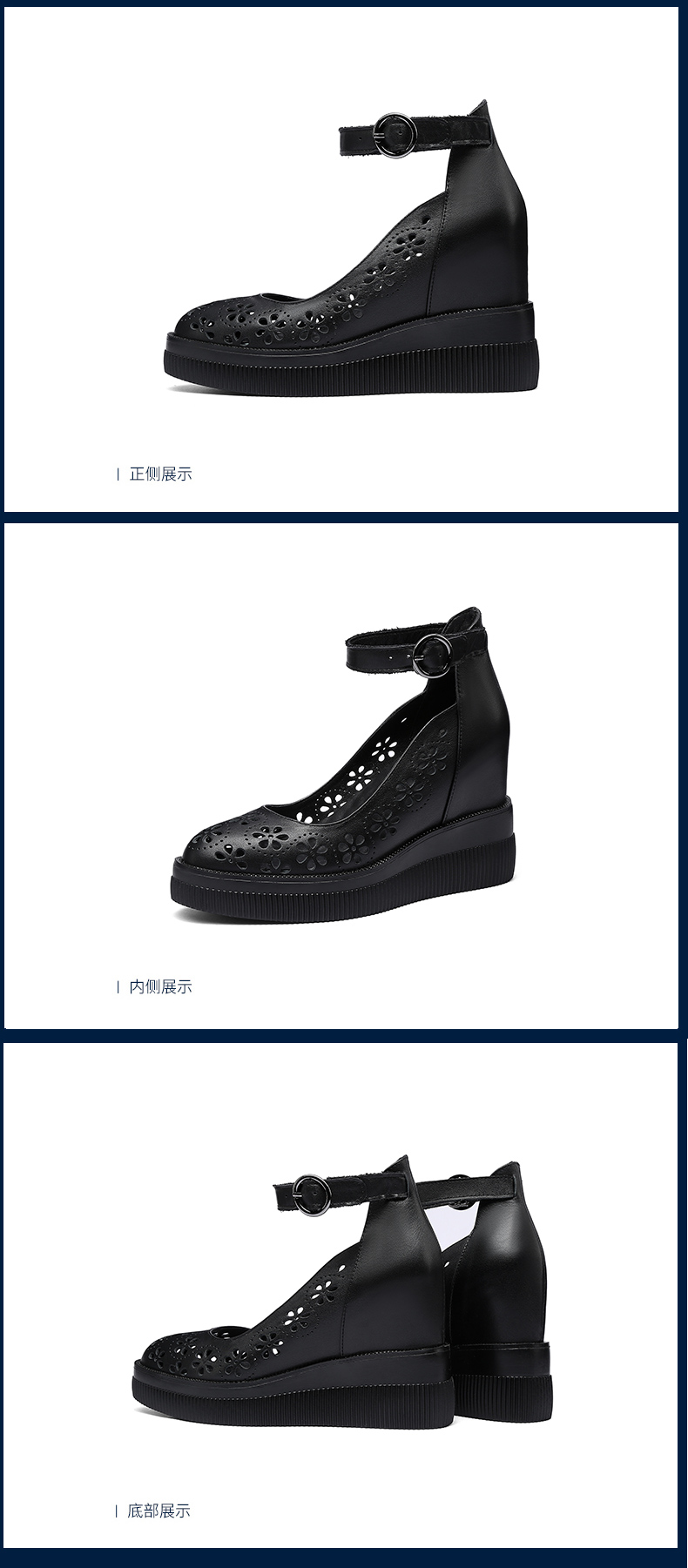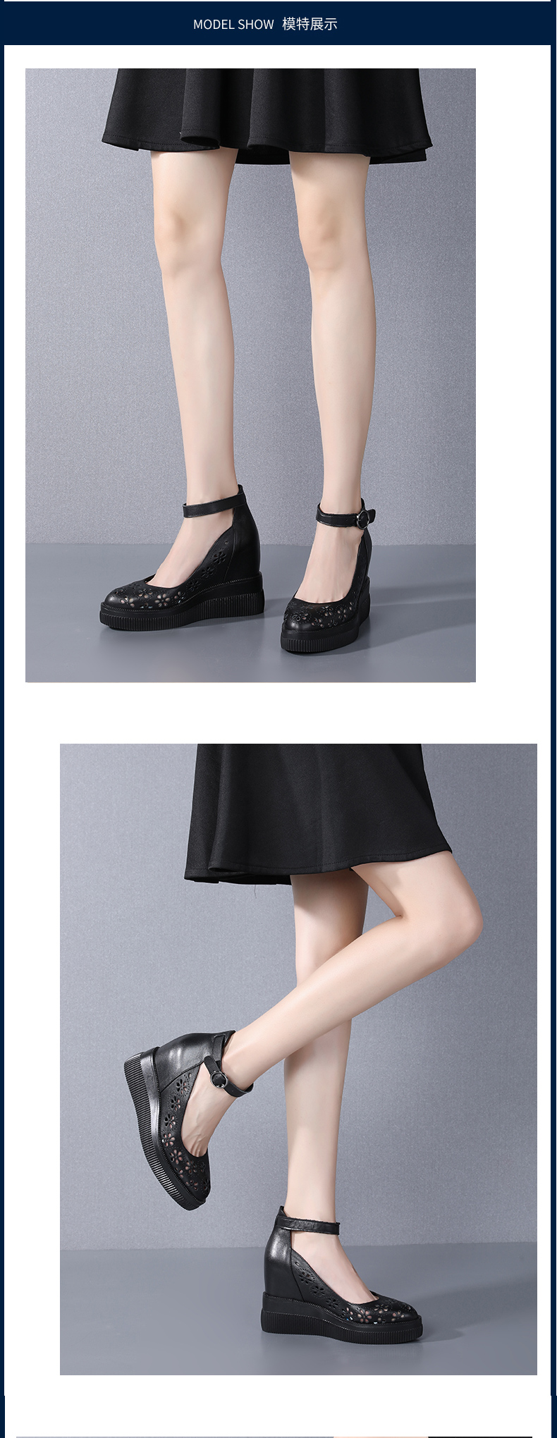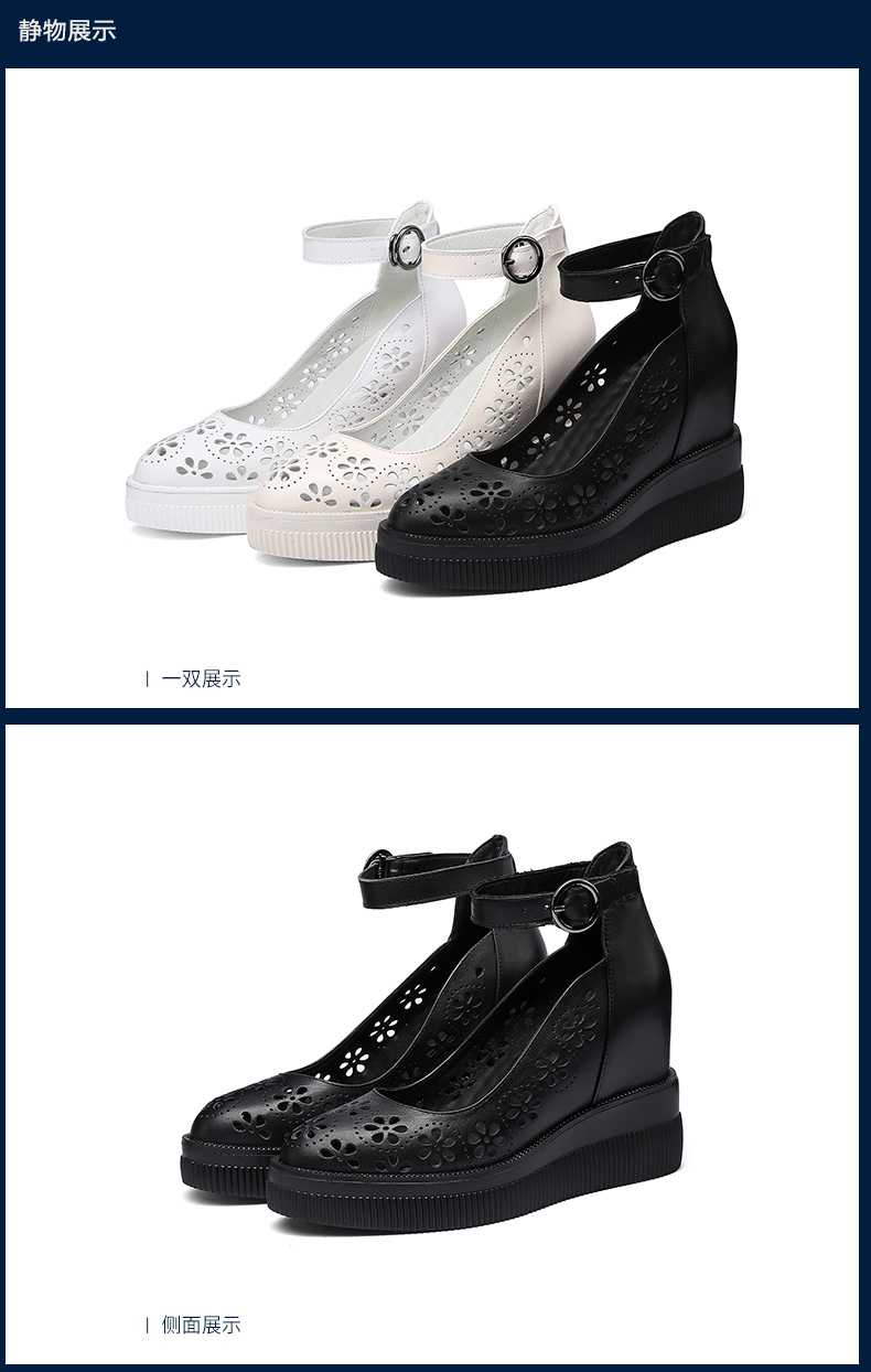 【预售5天】英伦风花朵镂空,坡跟内增高浅口高跟凉鞋HX-5561
