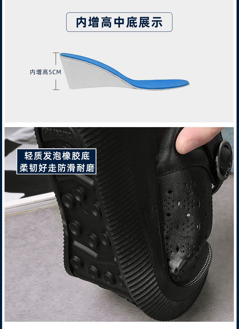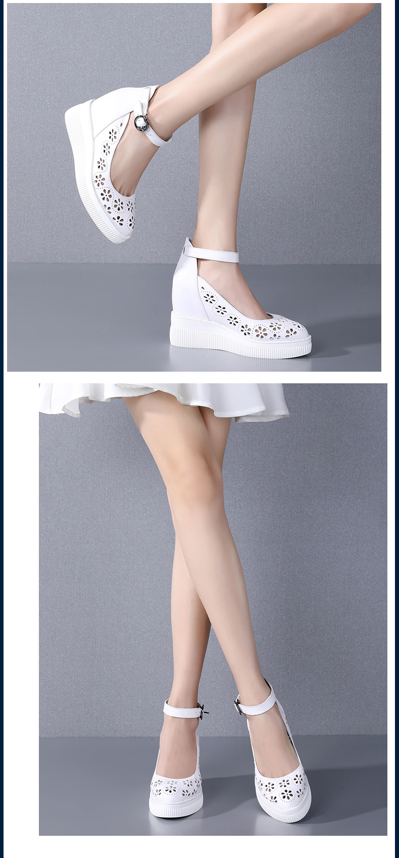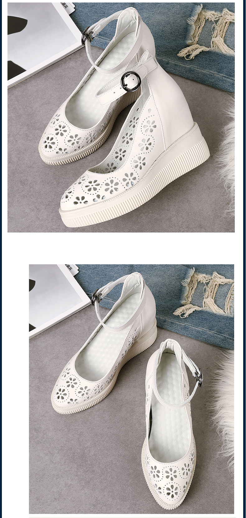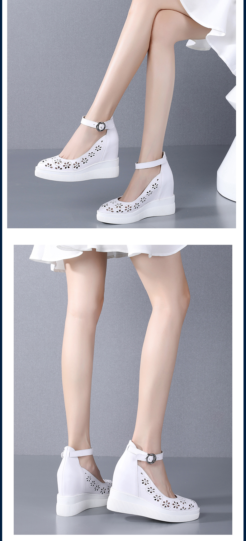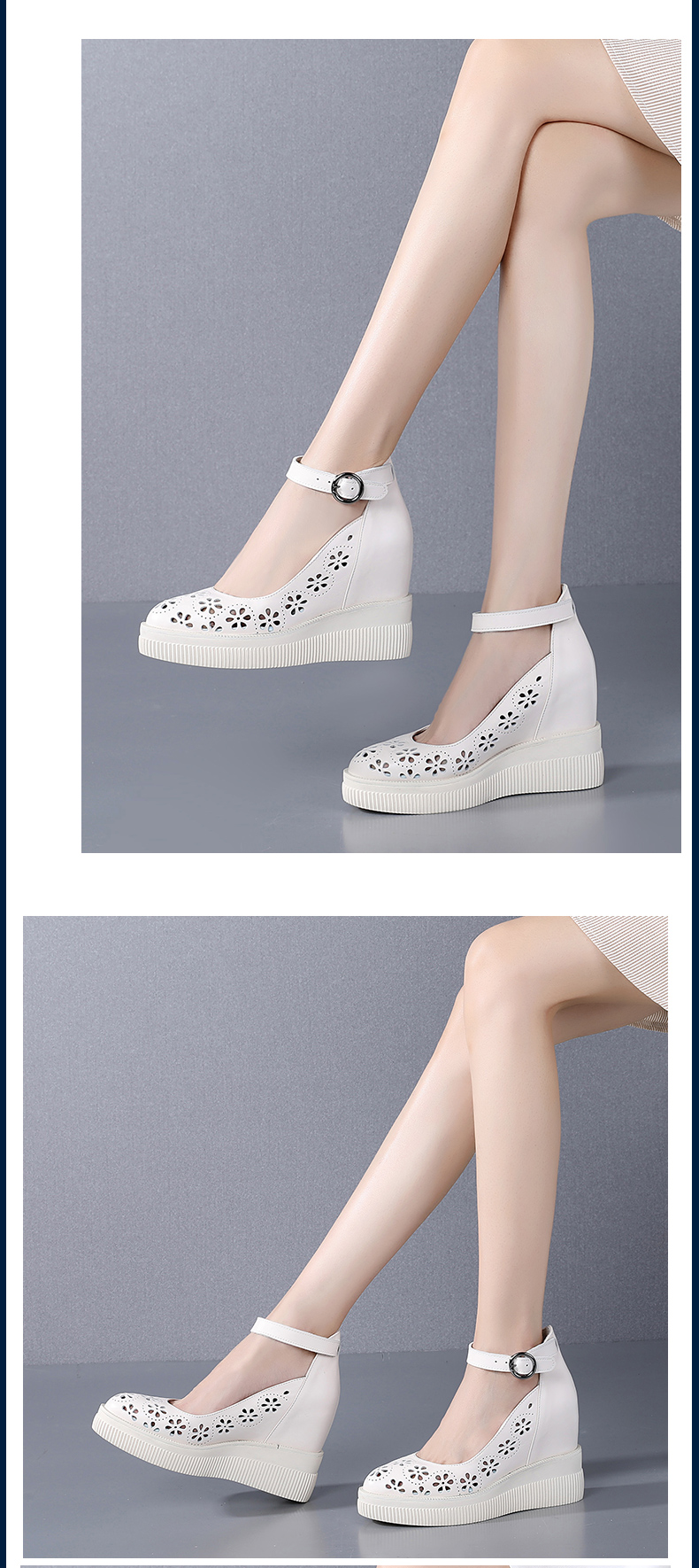 【预售5天】英伦风花朵镂空,坡跟内增高浅口高跟凉鞋HX-5561