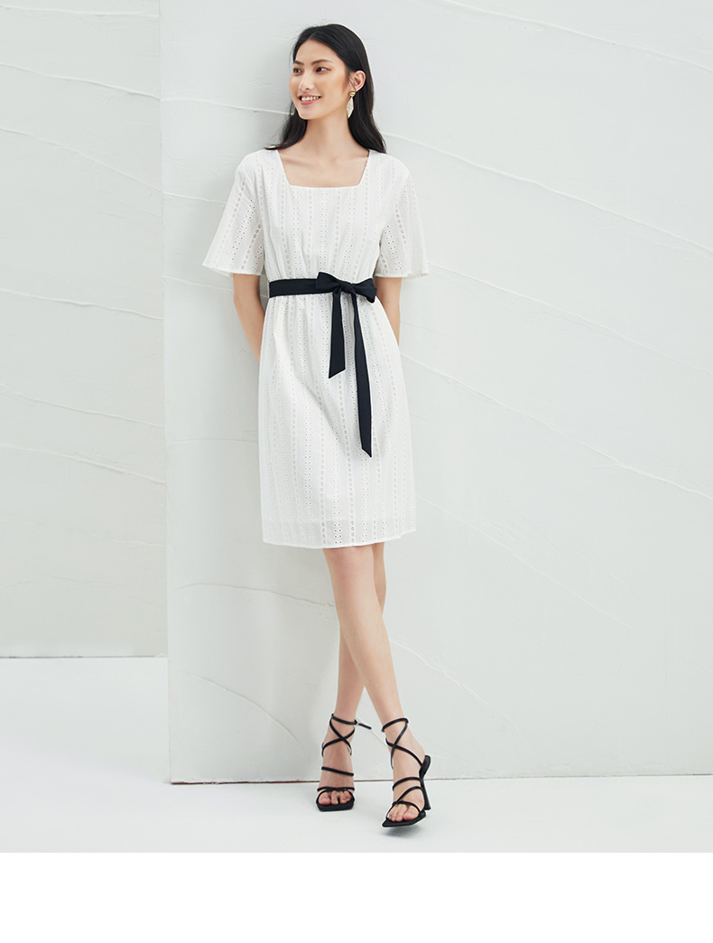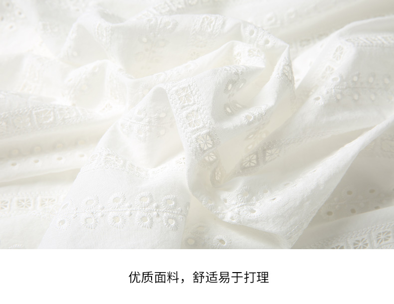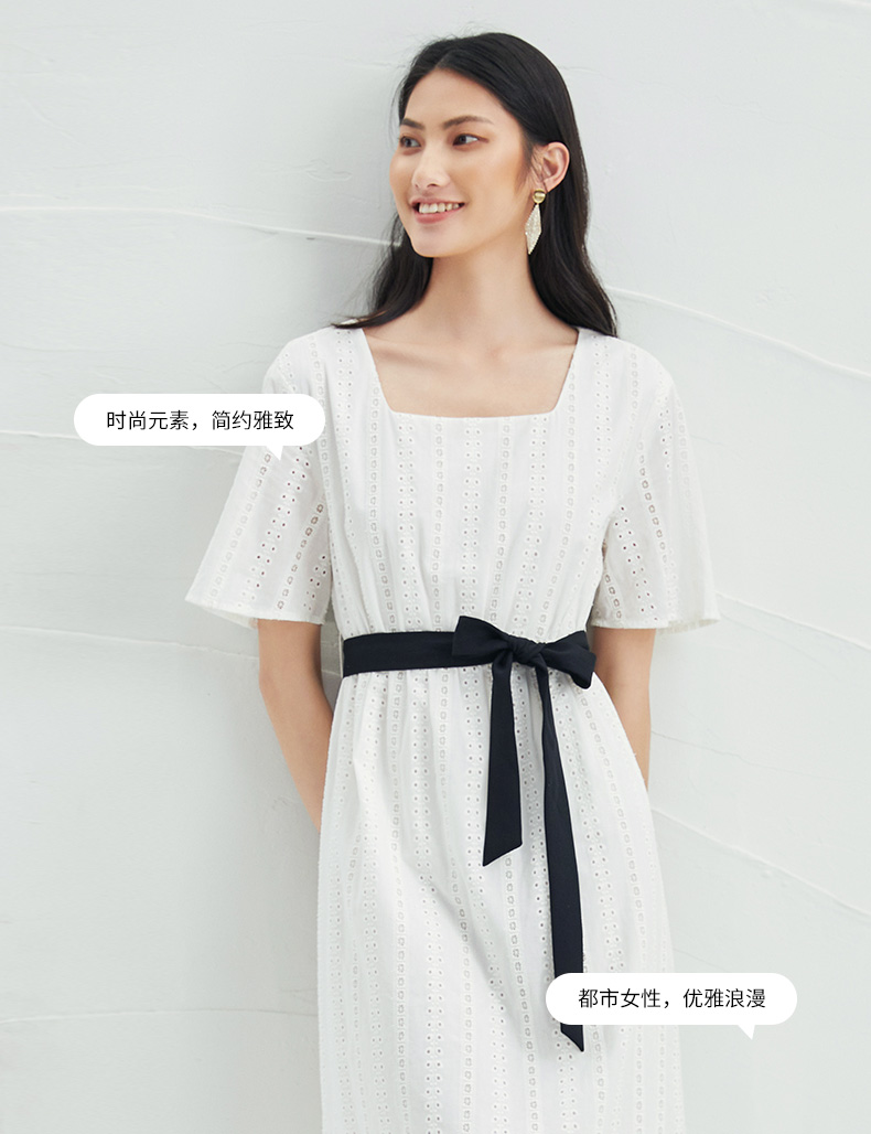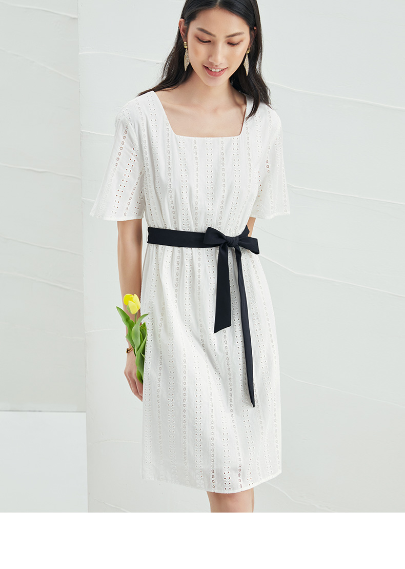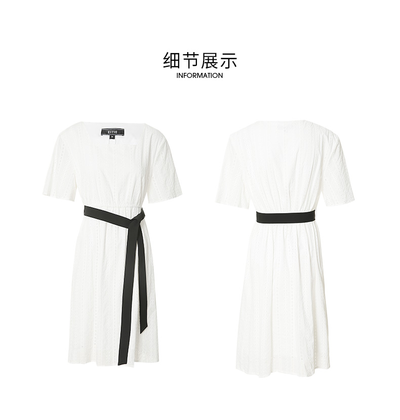 EITIE爱特爱夏季新款舒适白色镂空显瘦宽松直筒纯棉连衣裙B2207948