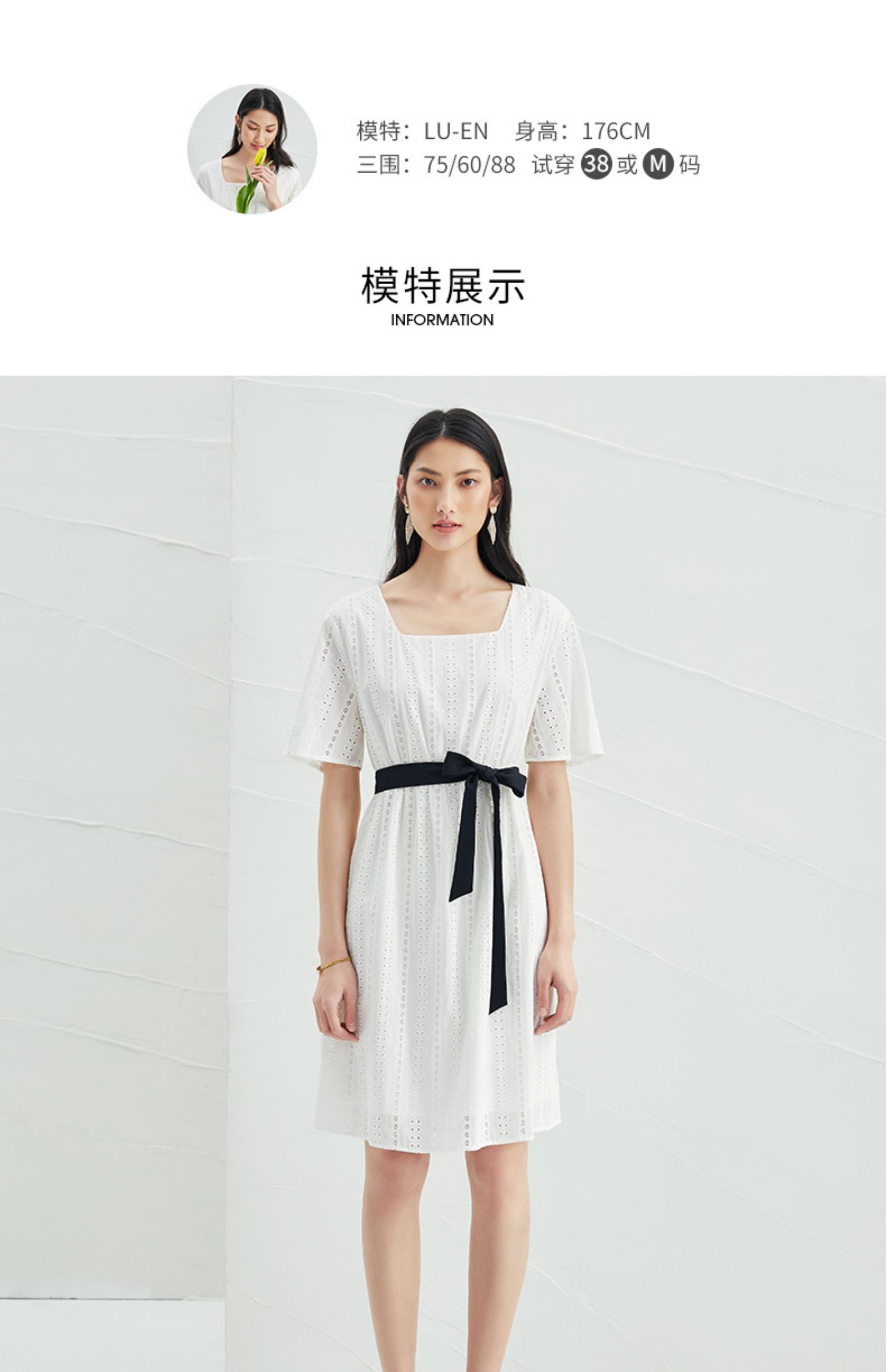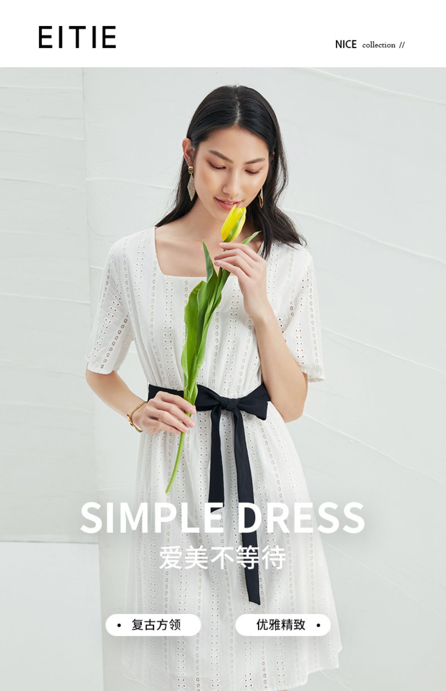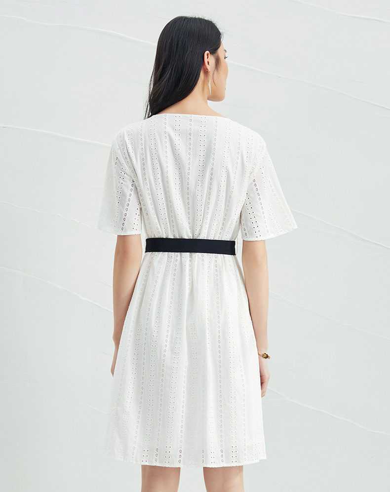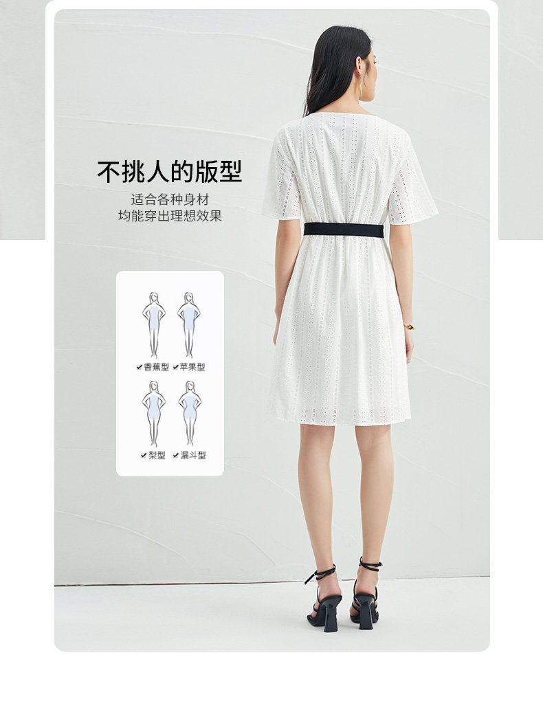 EITIE爱特爱夏季新款舒适白色镂空显瘦宽松直筒纯棉连衣裙B2207948