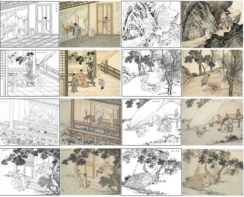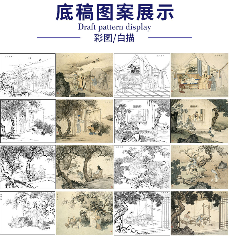 陈少梅工笔人物画白描底稿二十四孝图一套24幅册页尺寸42*33厘米CT00