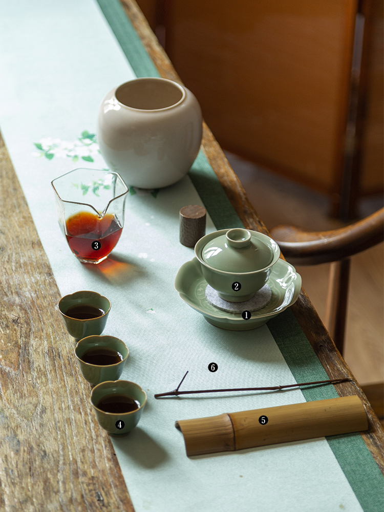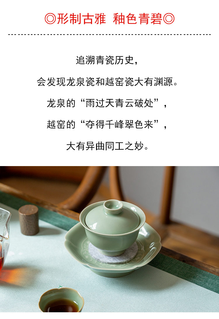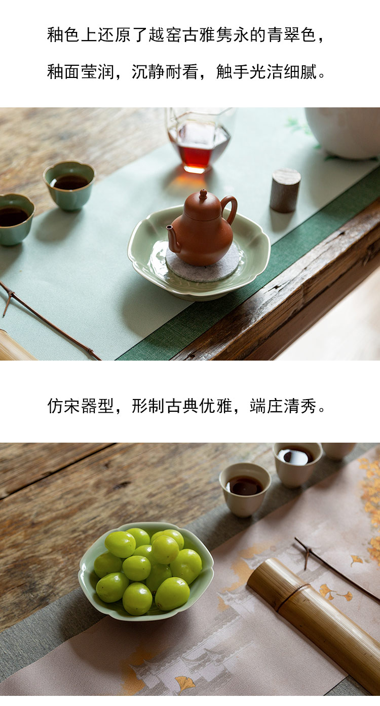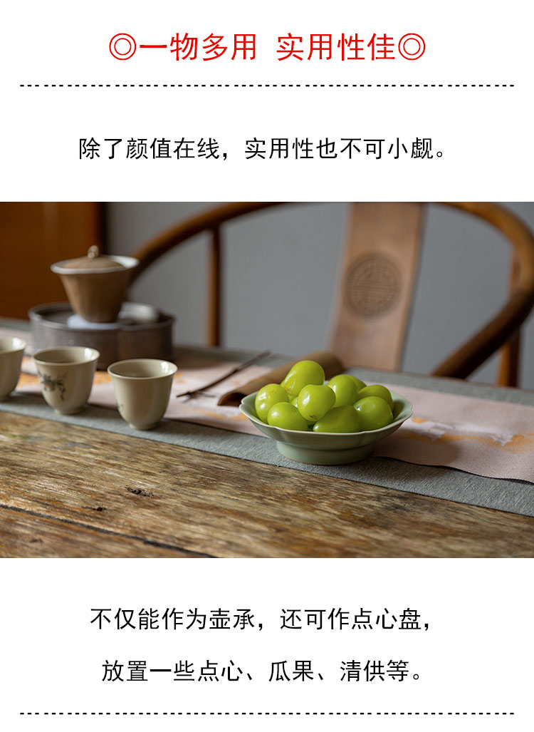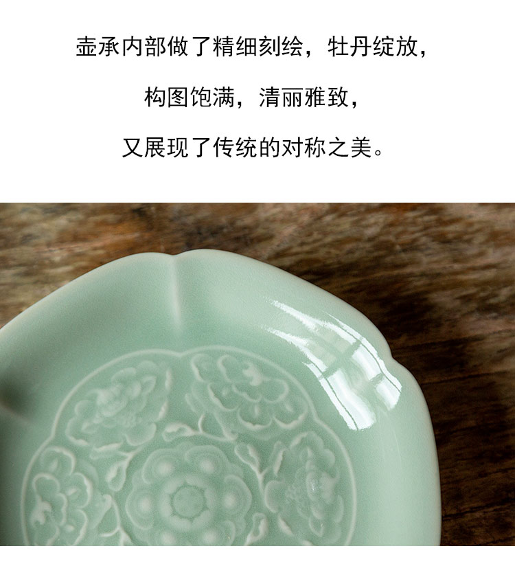 茶香记 葵口刻花高脚壶承龙泉青瓷干泡盘茶盘刻绘牡丹茶桌零配