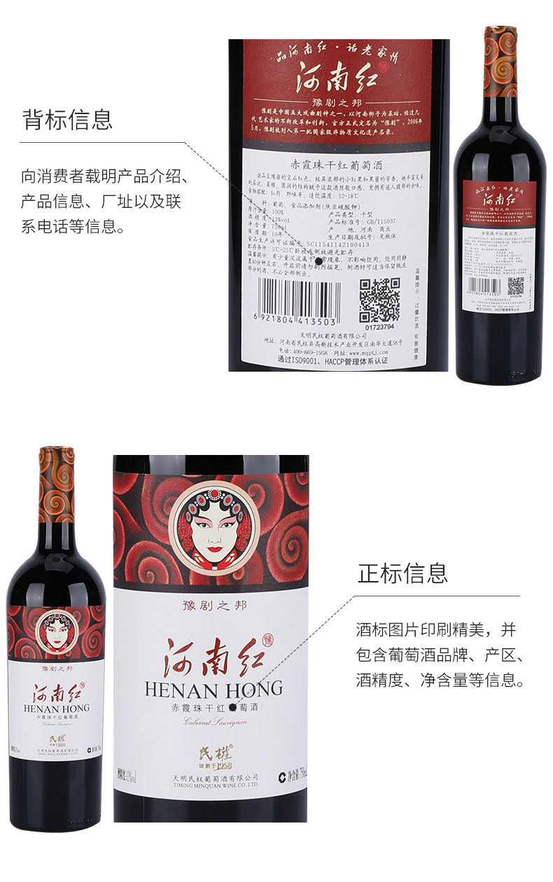 民权河南红豫剧之邦干红葡萄酒750ml/瓶