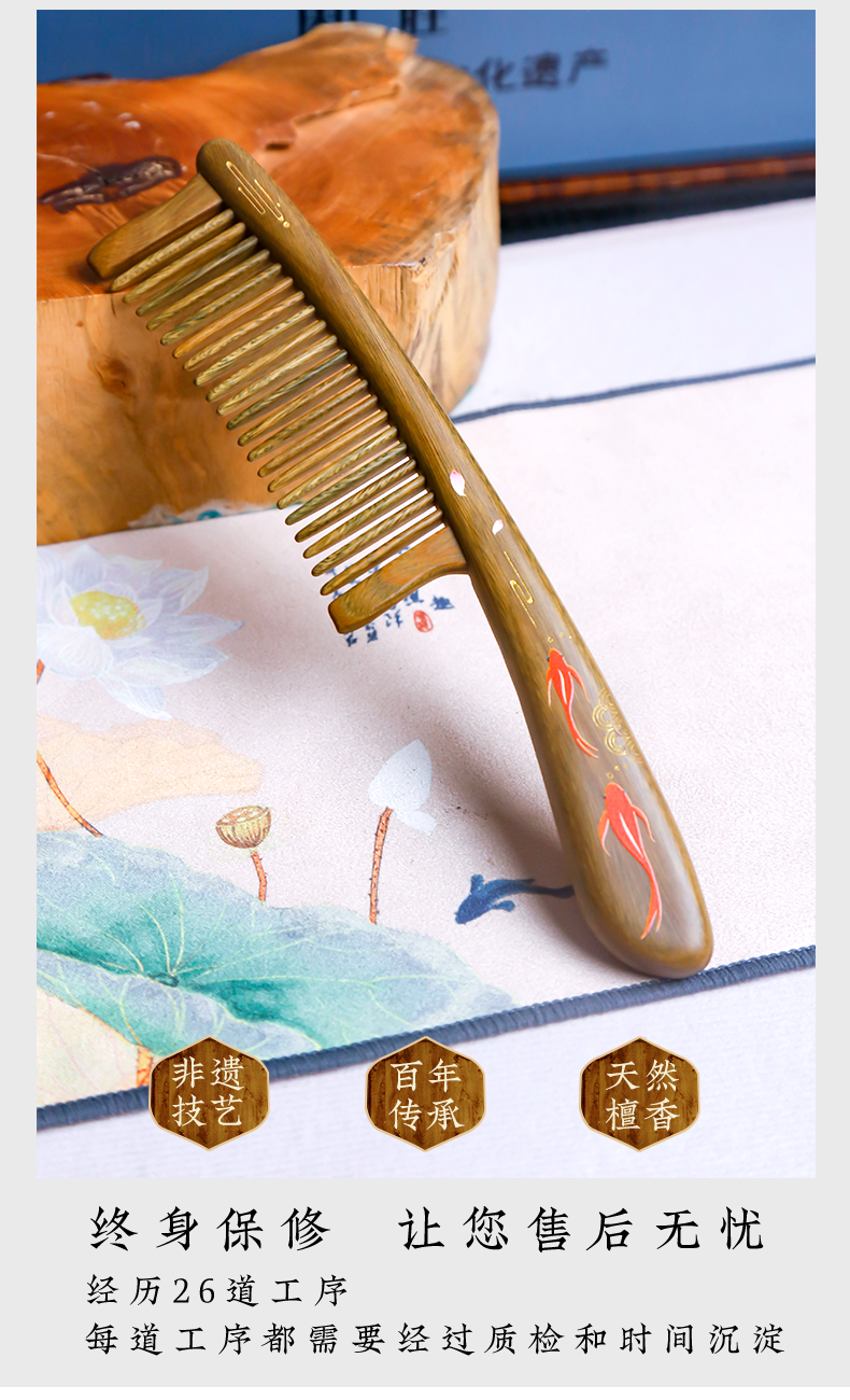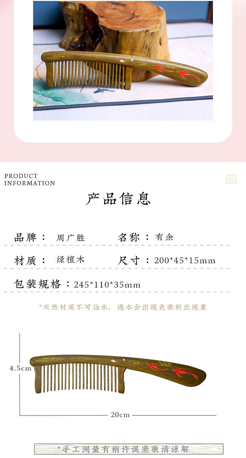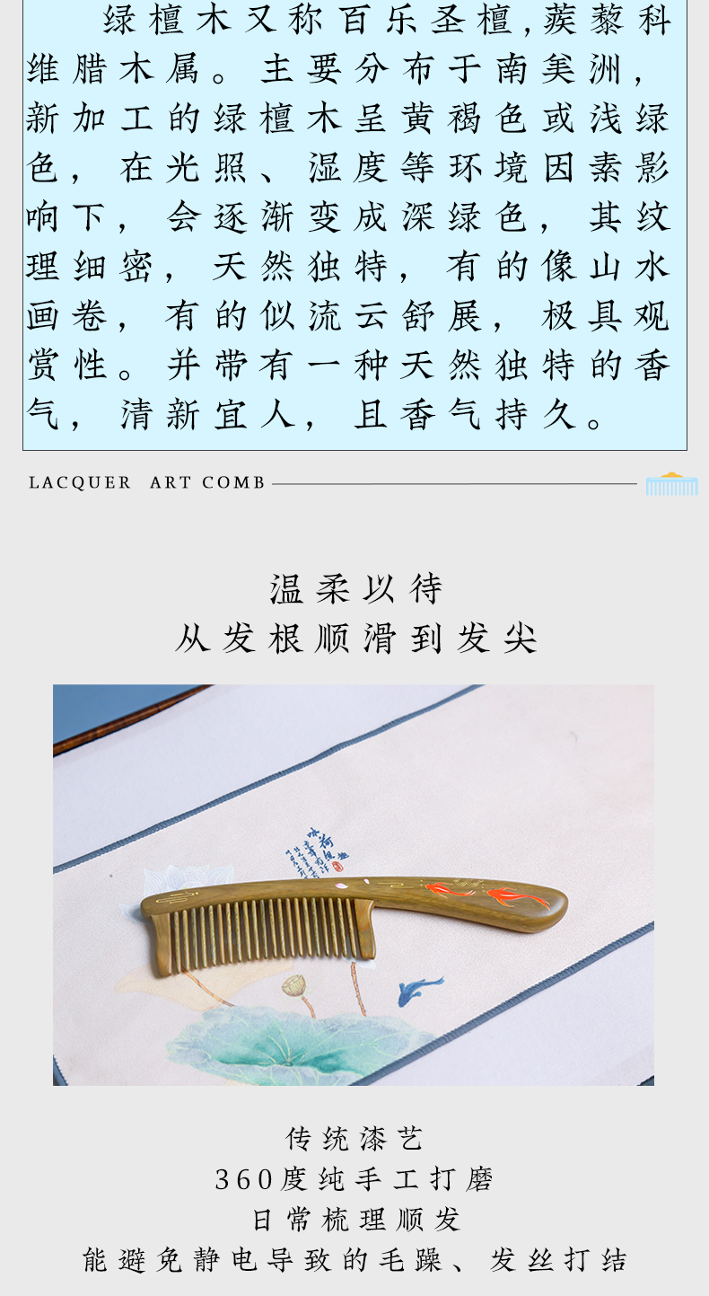 周广胜天然绿檀镶齿梳礼盒漆艺有余木梳子按摩护发蓬松梳
