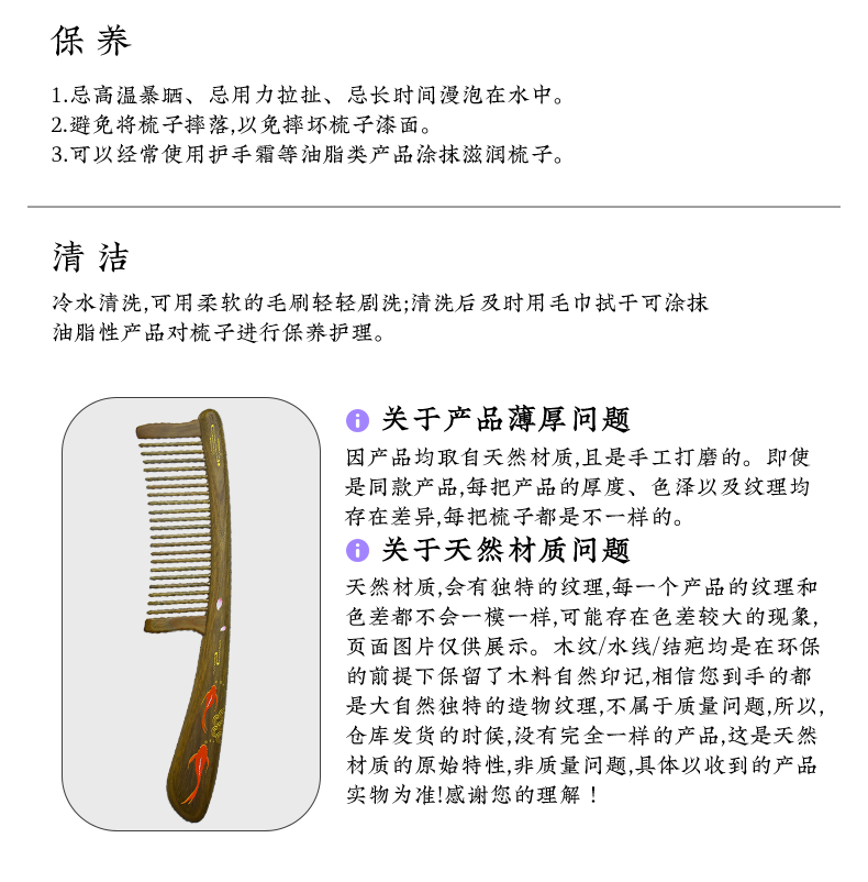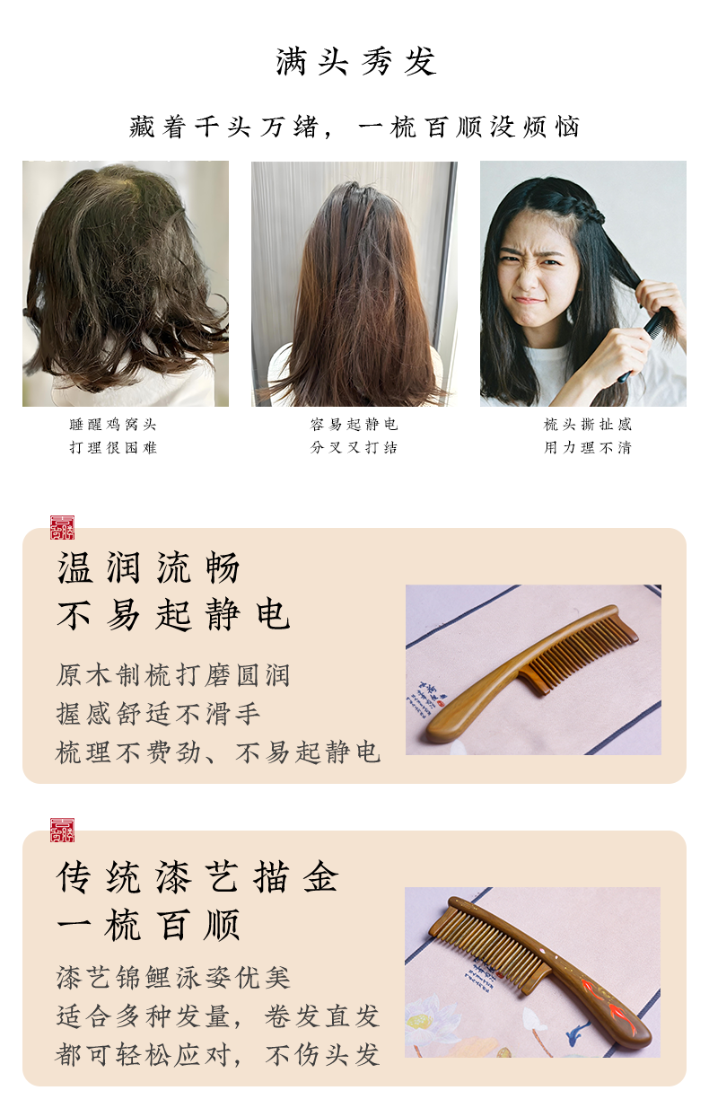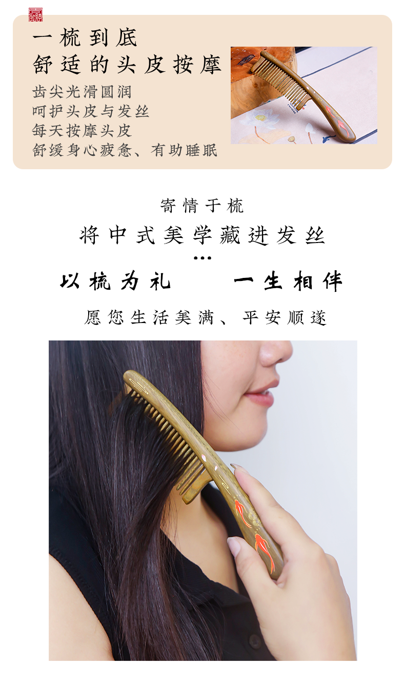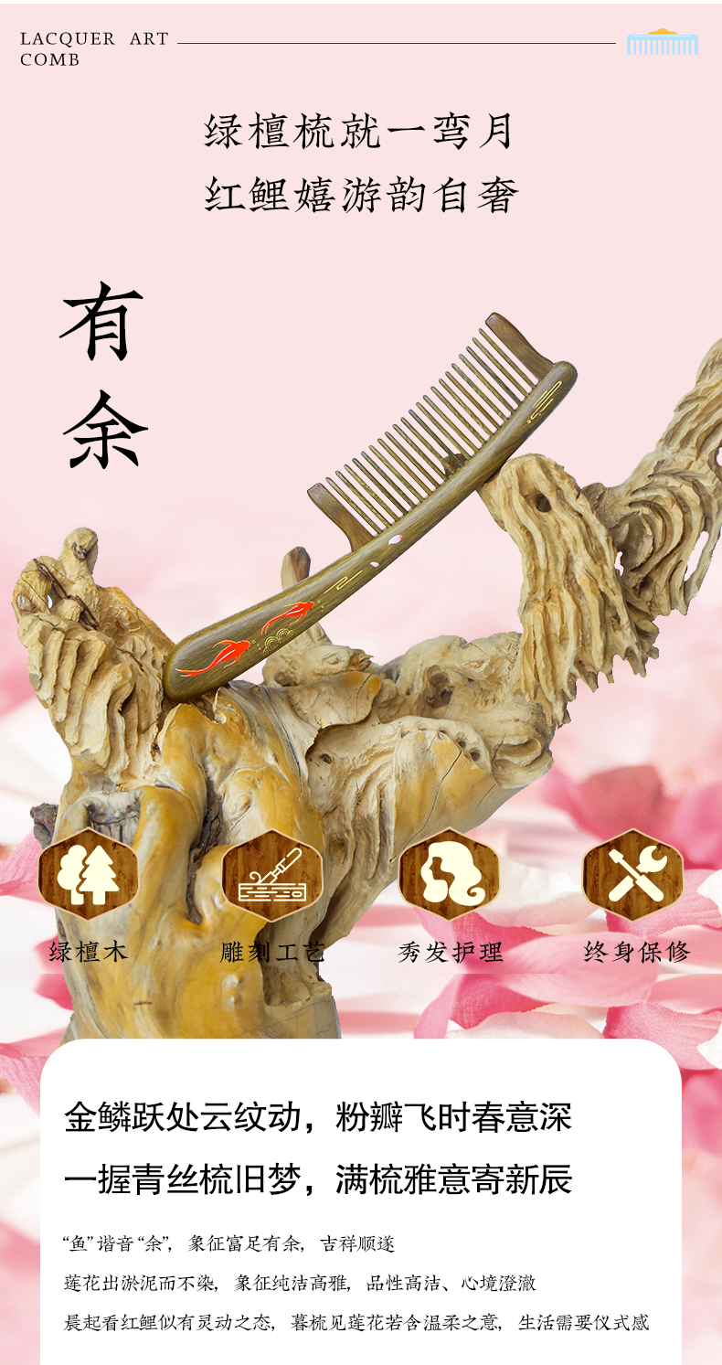 周广胜天然绿檀镶齿梳礼盒漆艺有余木梳子按摩护发蓬松梳