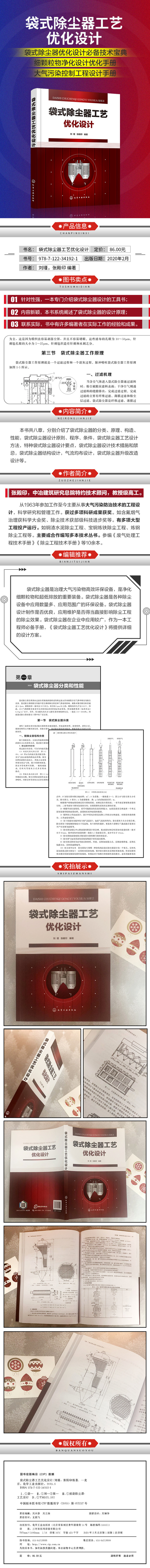 为了满足除尘设备设计与开发的需要,笔者结合多年科研成果及一线工作的经验,参考国内外新技术的发展方向,编著了《袋式除尘器工艺优化设计》一书,系统阐述了袋式除尘器的设计原理及优化工艺。本书共八章,分别介绍了袋式除尘器的分类、结构、工作原理、性能,袋式除尘器设计原则、程序和内容,袋式除尘器工艺设计,特种袋式除尘器工艺设计,袋式除尘器设计技术措施与禁忌,袋式除尘器结构设计,除尘器气流组织均布和设计,袋式除尘器升级改造设计等内容。