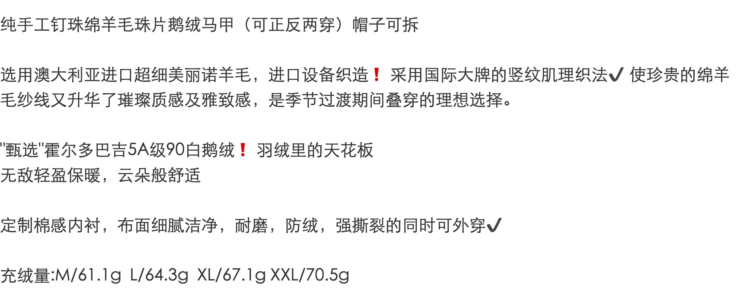 顺丰包邮35535正反两穿纯手工钉珠绵羊毛珠片鹅绒羽绒马甲3573